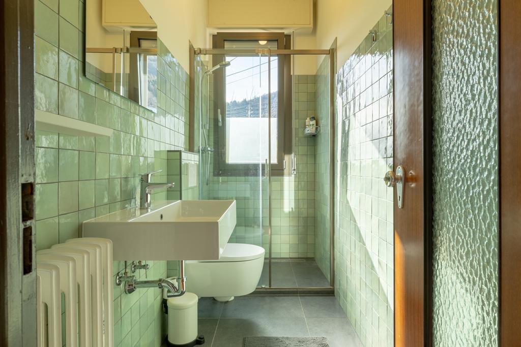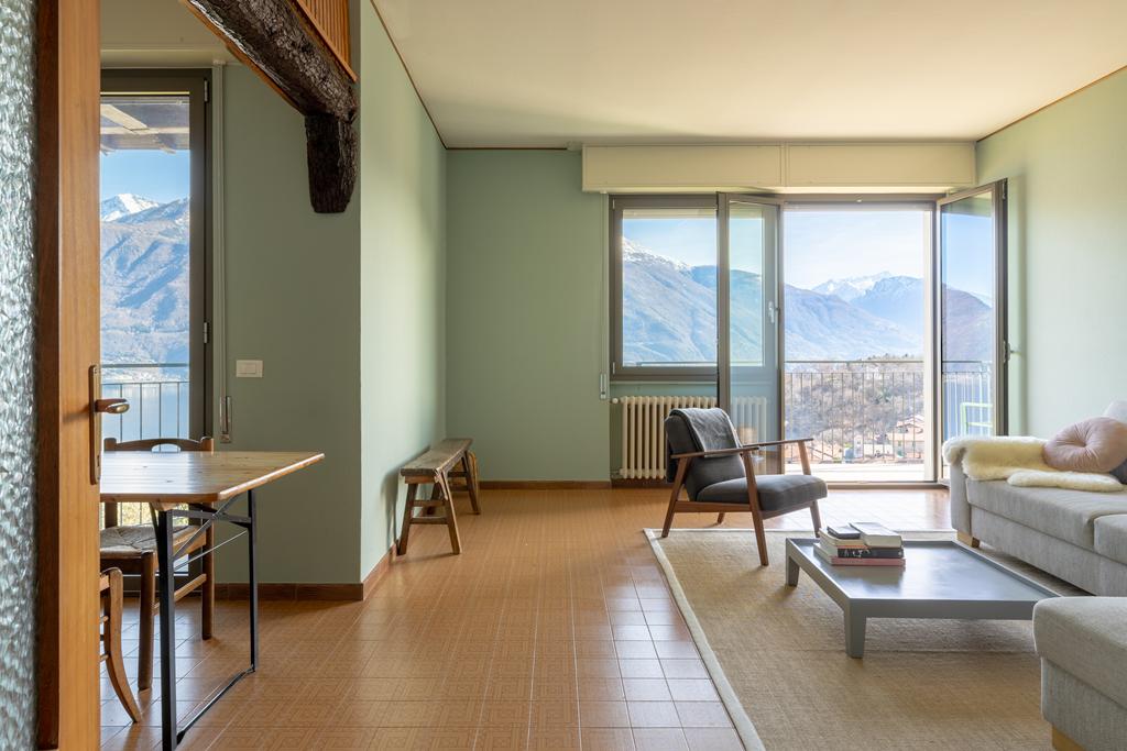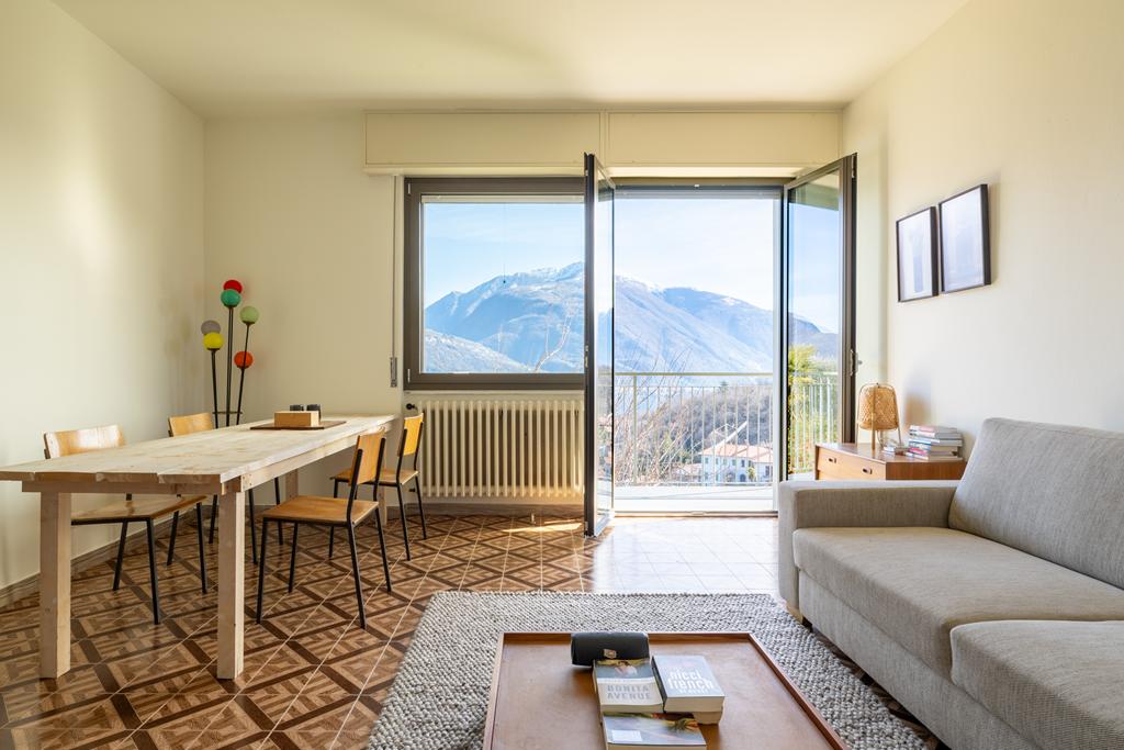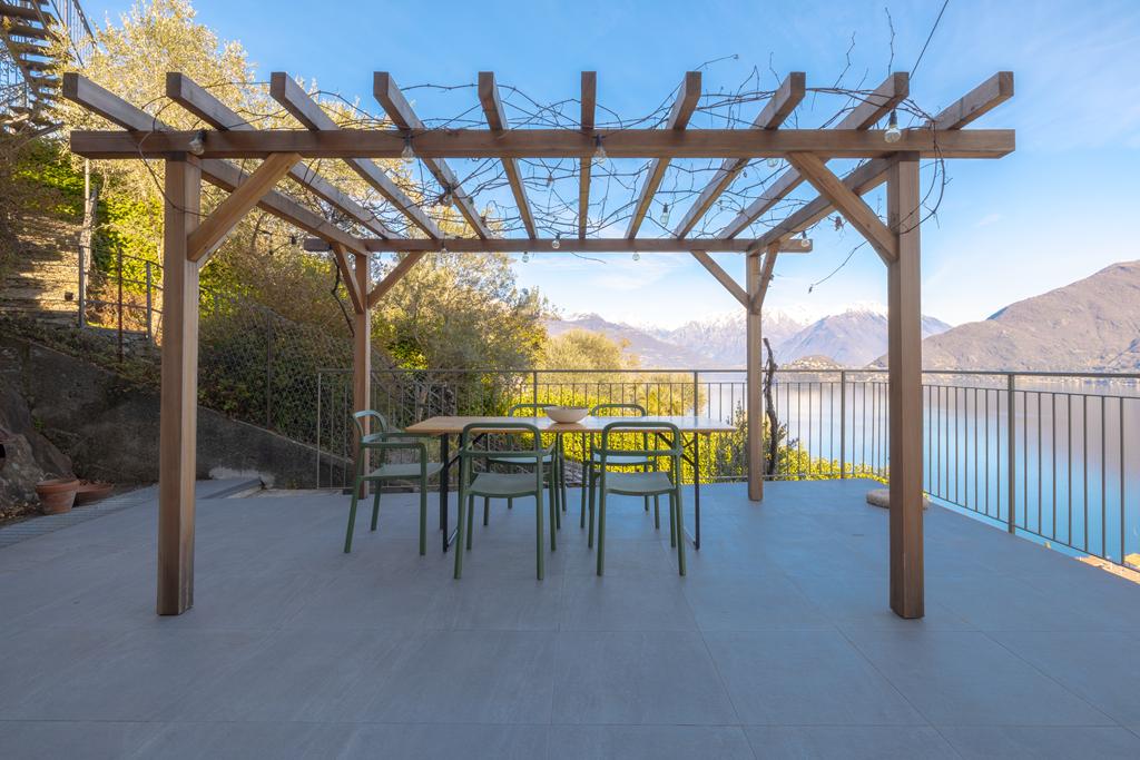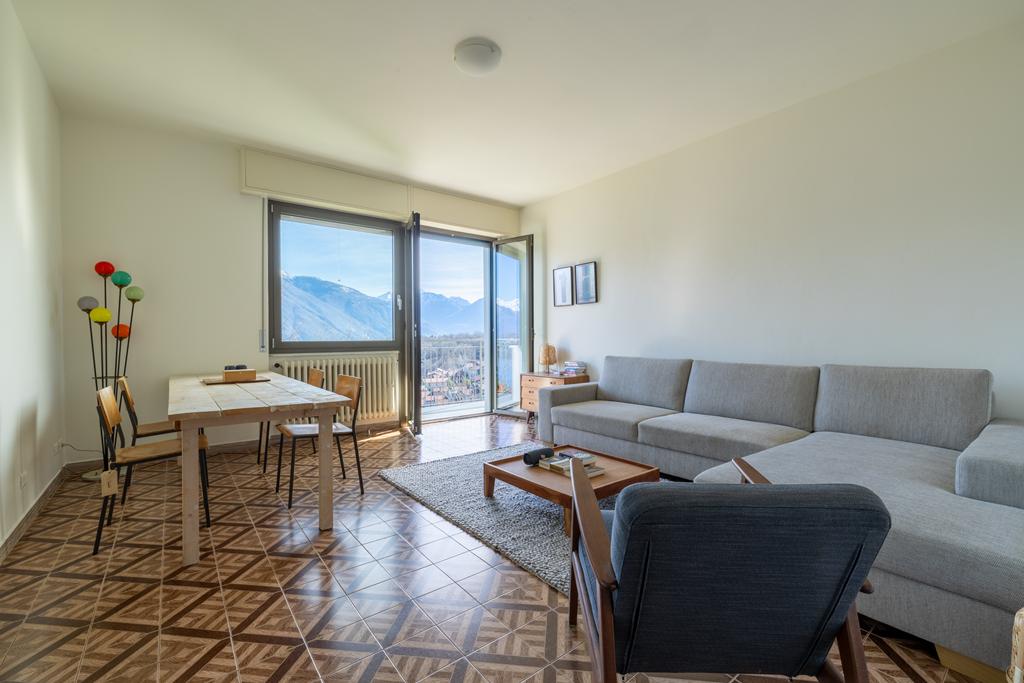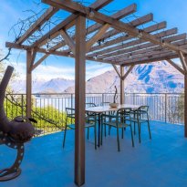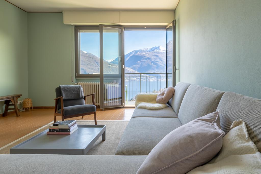 entrée, une cuisine, un spacieux salon lumineux avec accès au grand balcon donnant sur le lac, 2 chambres, 2 salles de bains et des pièces de rangement. A côté de l'appartement se trouve une grande terrasse avec pergola, un endroit calme et privé, pour profiter des douces soirées d'été autour d'une longue table avec la famille et les amis et de la vue imprenable sur le lac et les sommets montagneux.