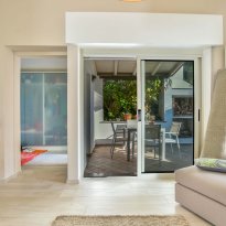 La salle à manger donne sur une terrasse couverte, équipée d'un barbecue en briques et d'un accès direct au jardin ; le salon, quant à lui, jouit d'une vue magnifique sur le lac et donne accès, par de grandes baies vitrées coulissantes, à un balcon doté d'un espace de détente et d'un auvent.