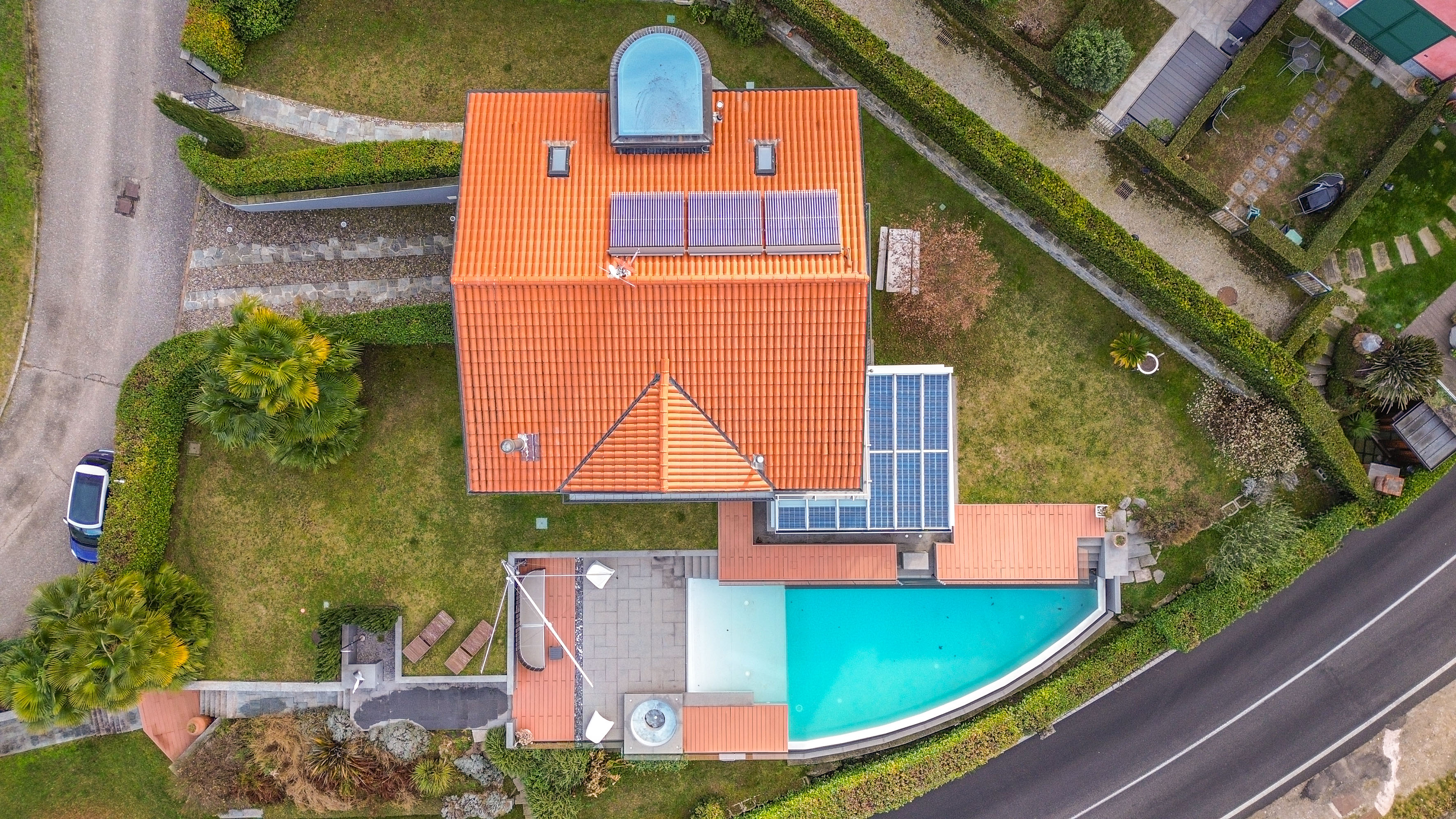 D'un point de vue technique, la villa est équipée de fenêtres et de portes en bois avec double vitrage et volets en aluminium, d'un chauffage par le sol, de l'air conditionné à chaque étage et de parquet. Les systèmes comprennent une pompe à chaleur, une chaudière à condensation, des panneaux solaires et photovoltaïques, du solaire thermique et une aspiration centralisée.