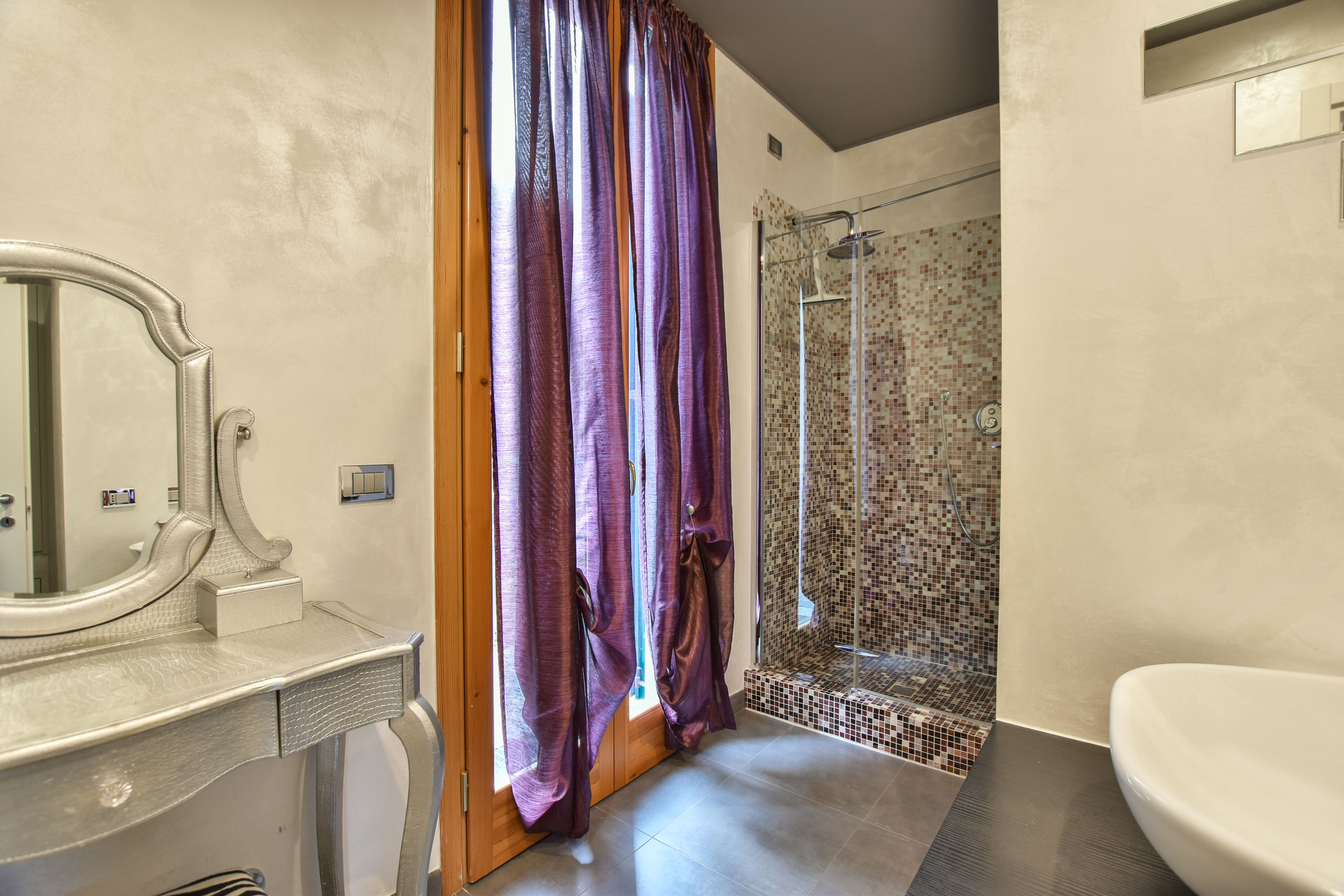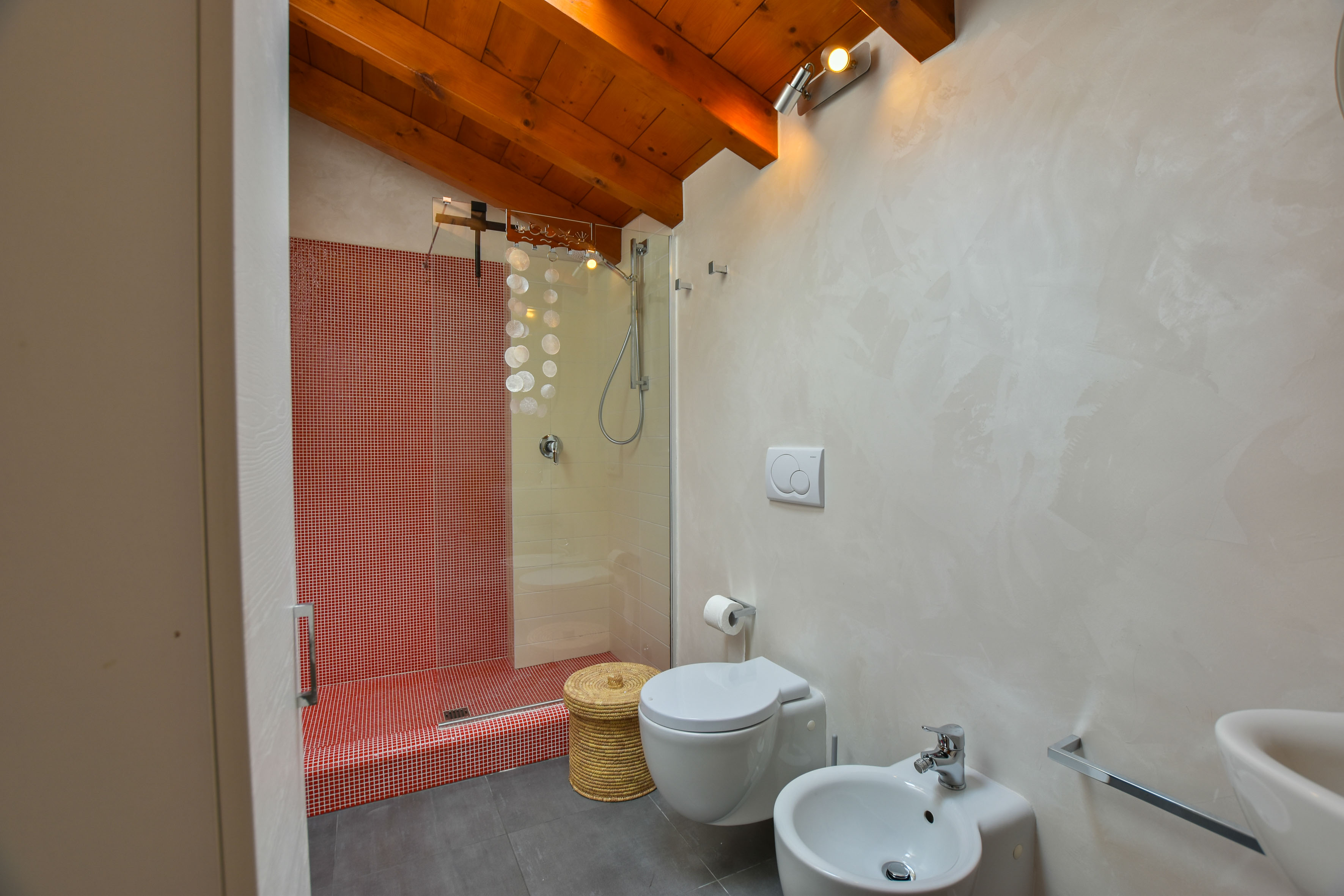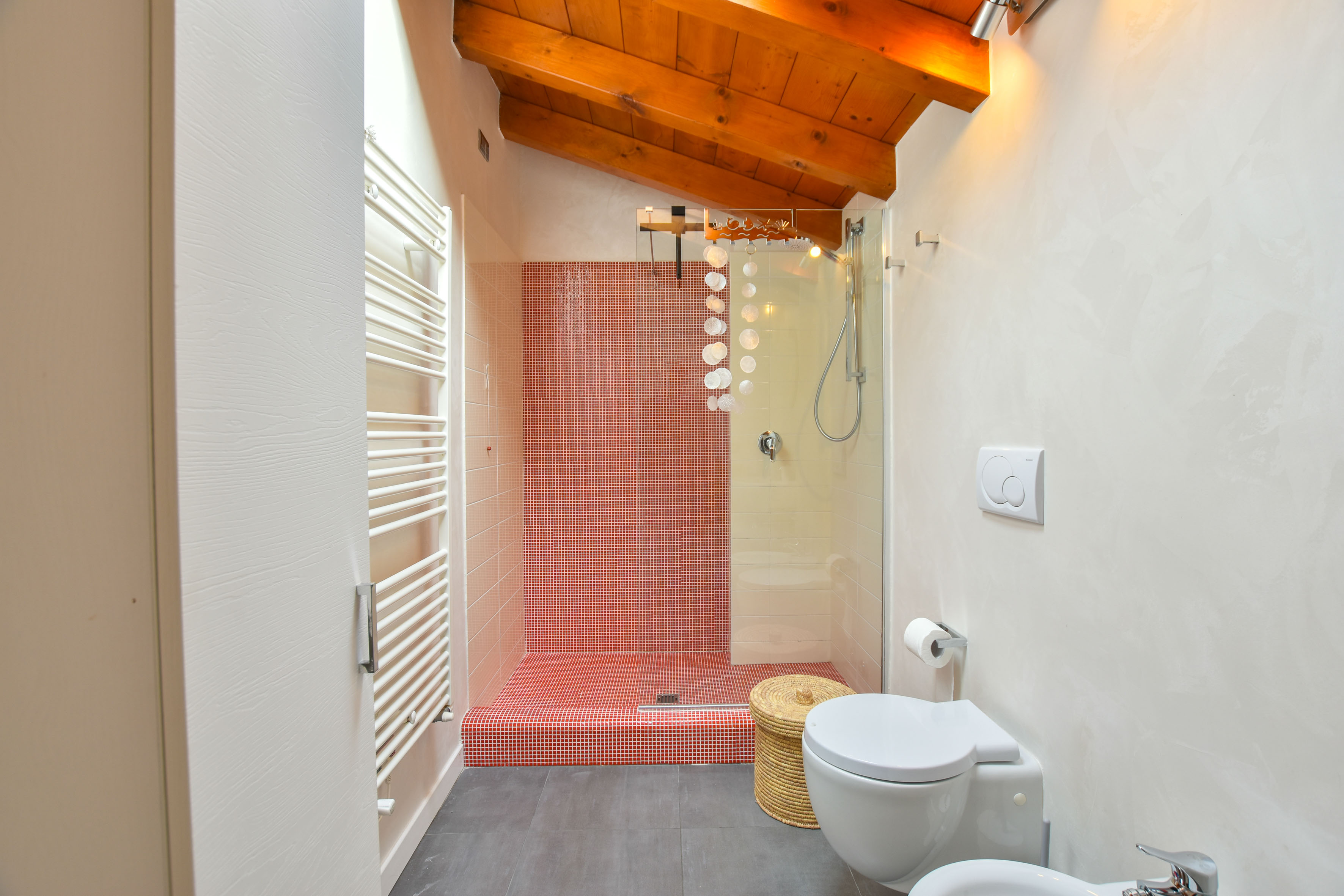 Au même niveau se trouve une chambre double avec placard et une salle de bains avec douche en mosaïque.