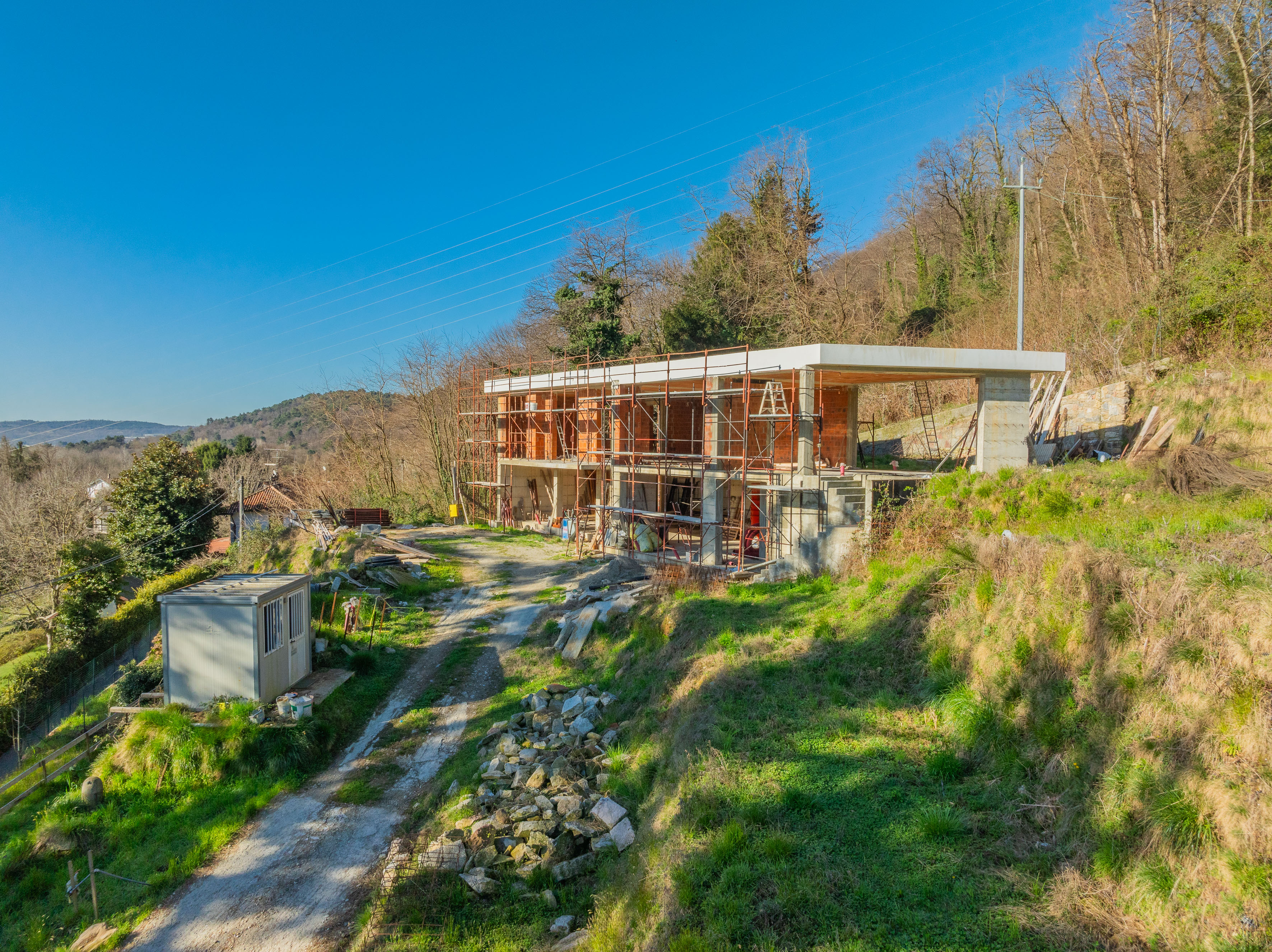 Le terrain environnant a été nivelé dans le but de créer une extension harmonieuse de l'espace de vie vers l'extérieur. En plus de la piscine, déjà incluse dans la proposition, il y a suffisamment d'espace pour créer un court de tennis ou de padel réglementaire, ce qui augmente encore la valeur et l'habitabilité de la propriété.