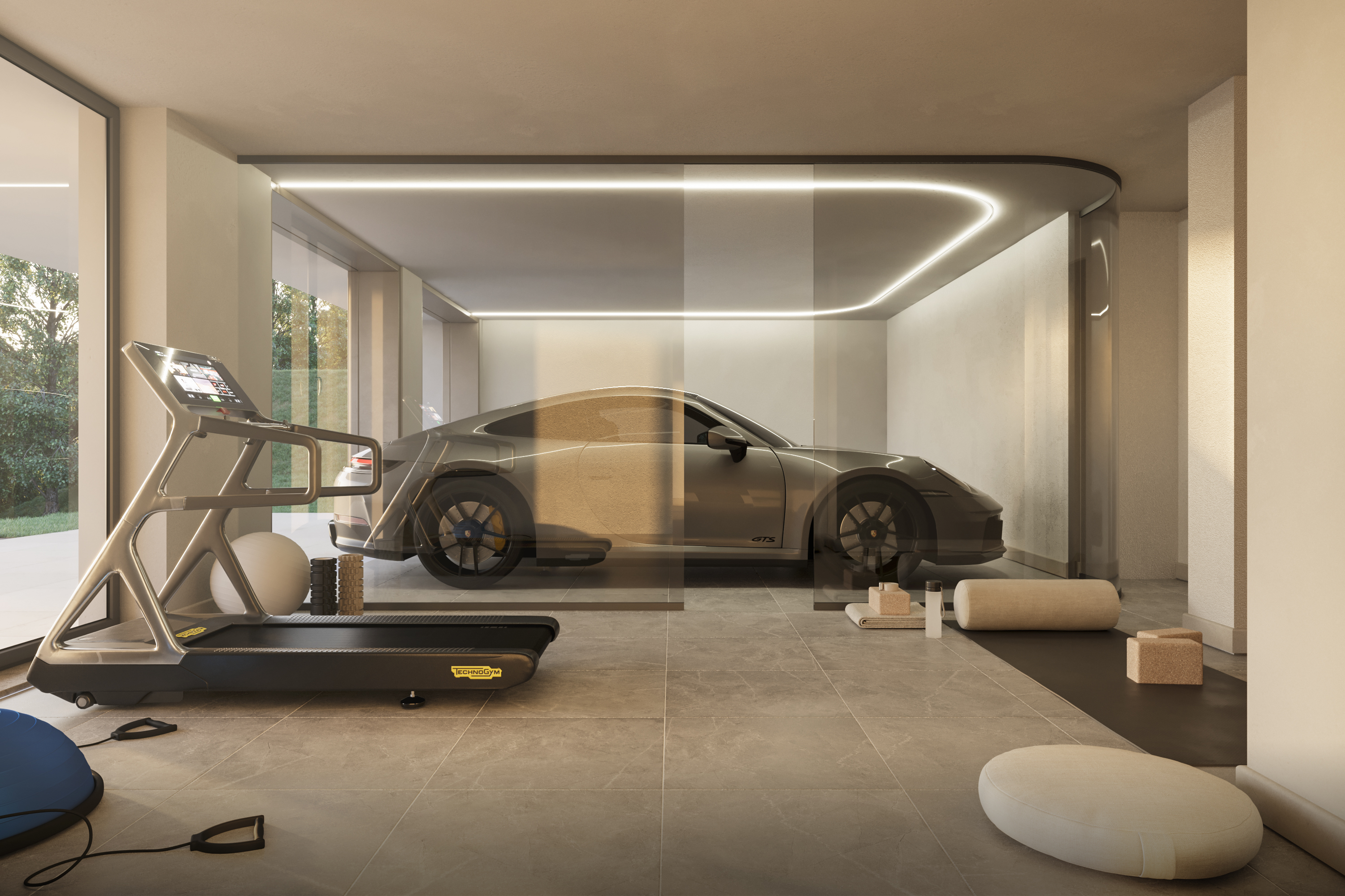 Le projet actuel comprend, au rez-de-chaussée, une taverne spacieuse, une chambre avec dressing et salle de bains privée, un débarras, une salle de bains de service supplémentaire, un sauna et un espace de fitness. Ce niveau comprend également un garage double pratique.