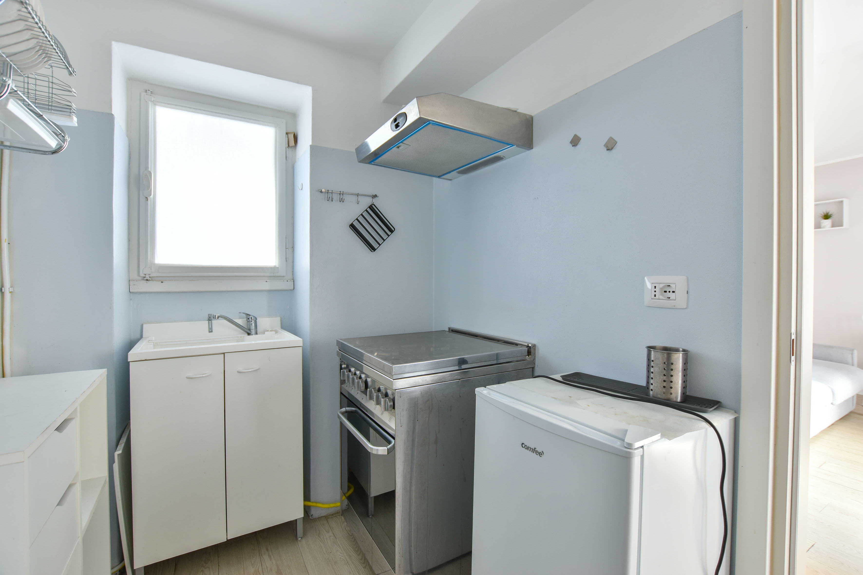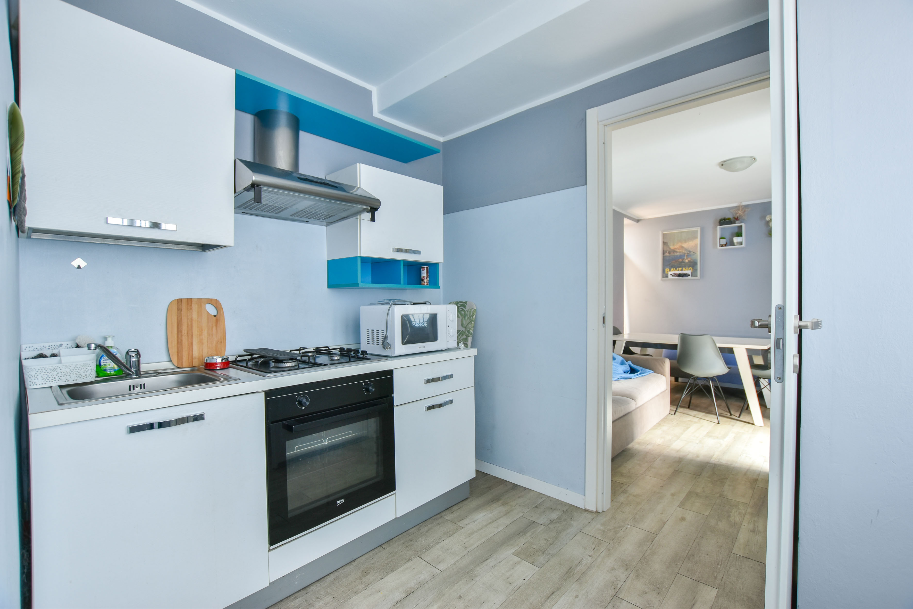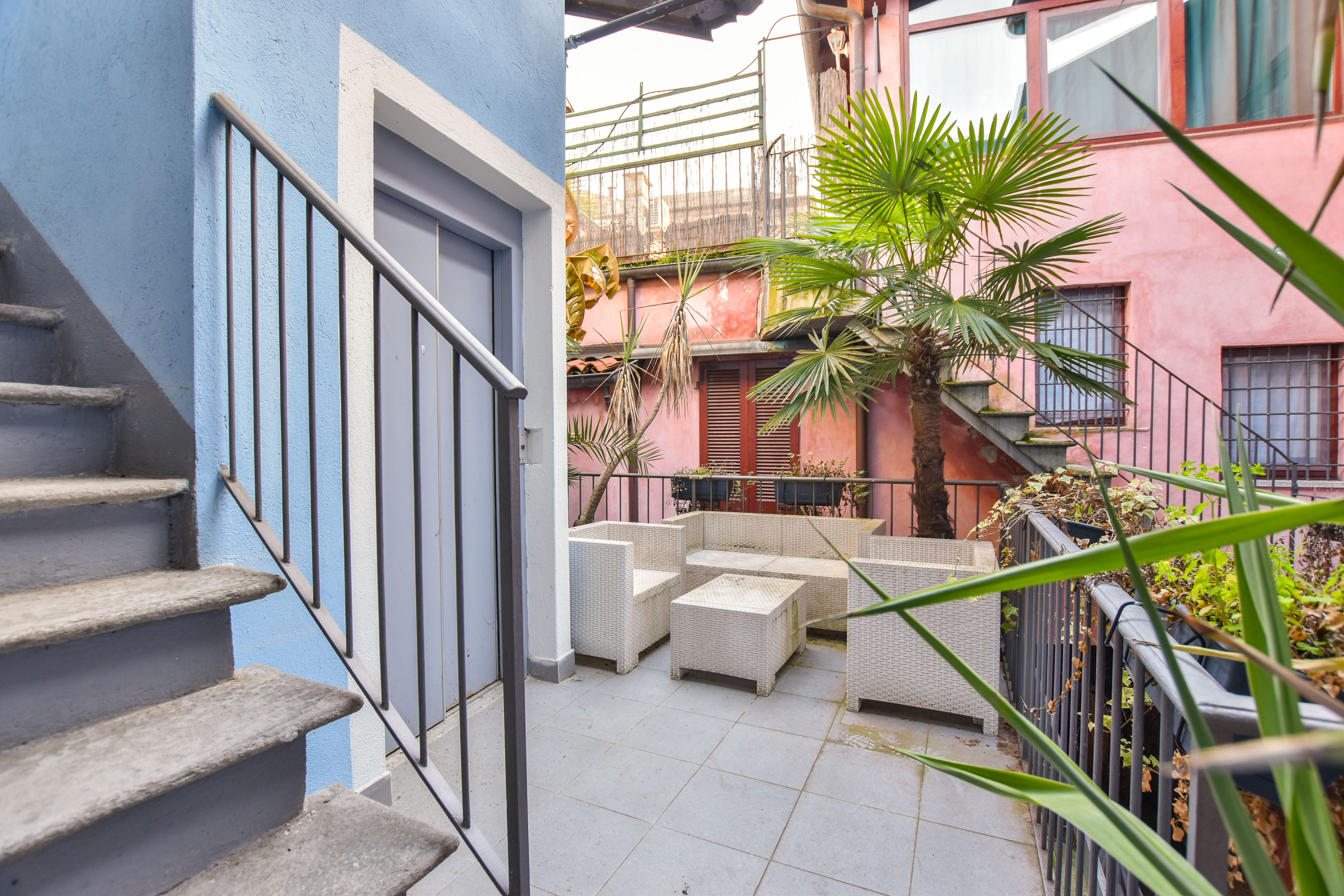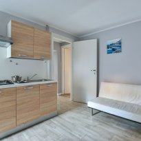 Au deuxième étage, il y a deux unités séparées : la première dispose d'un salon avec canapé-lit, d'une cuisine et d'une salle de bains avec douche ; la seconde offre un salon avec cuisine, une chambre et une salle de bains avec douche. Les deux appartements du deuxième étage peuvent être réunis pour créer une solution unique avec un salon et une cuisine, deux chambres et deux salles de bains.
