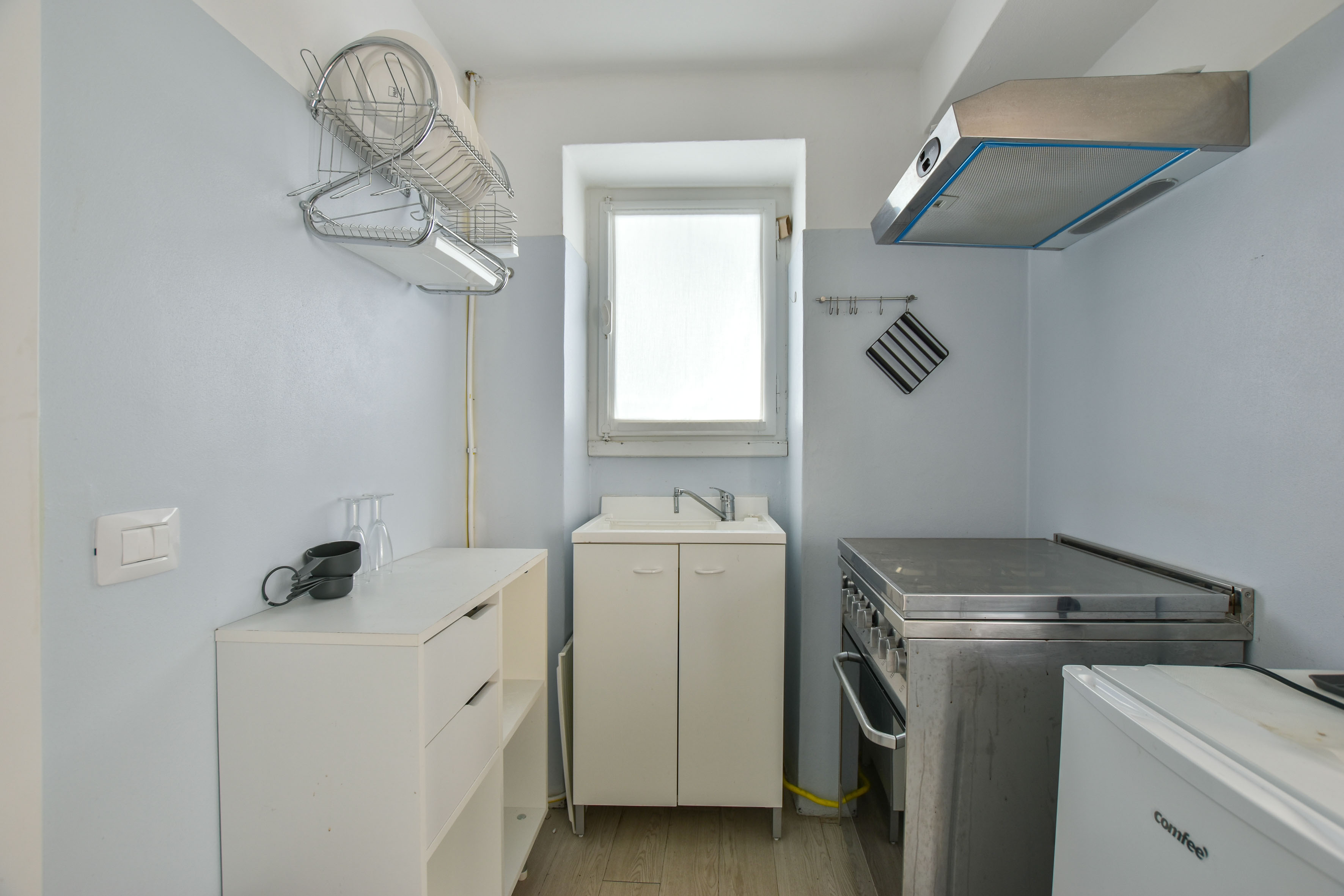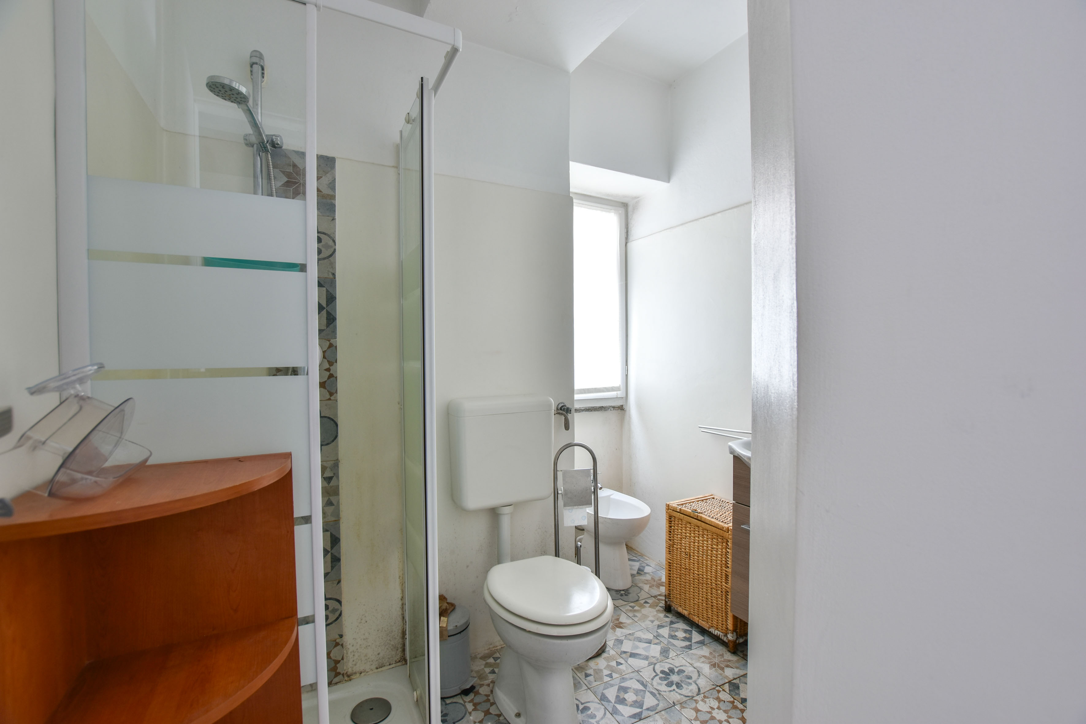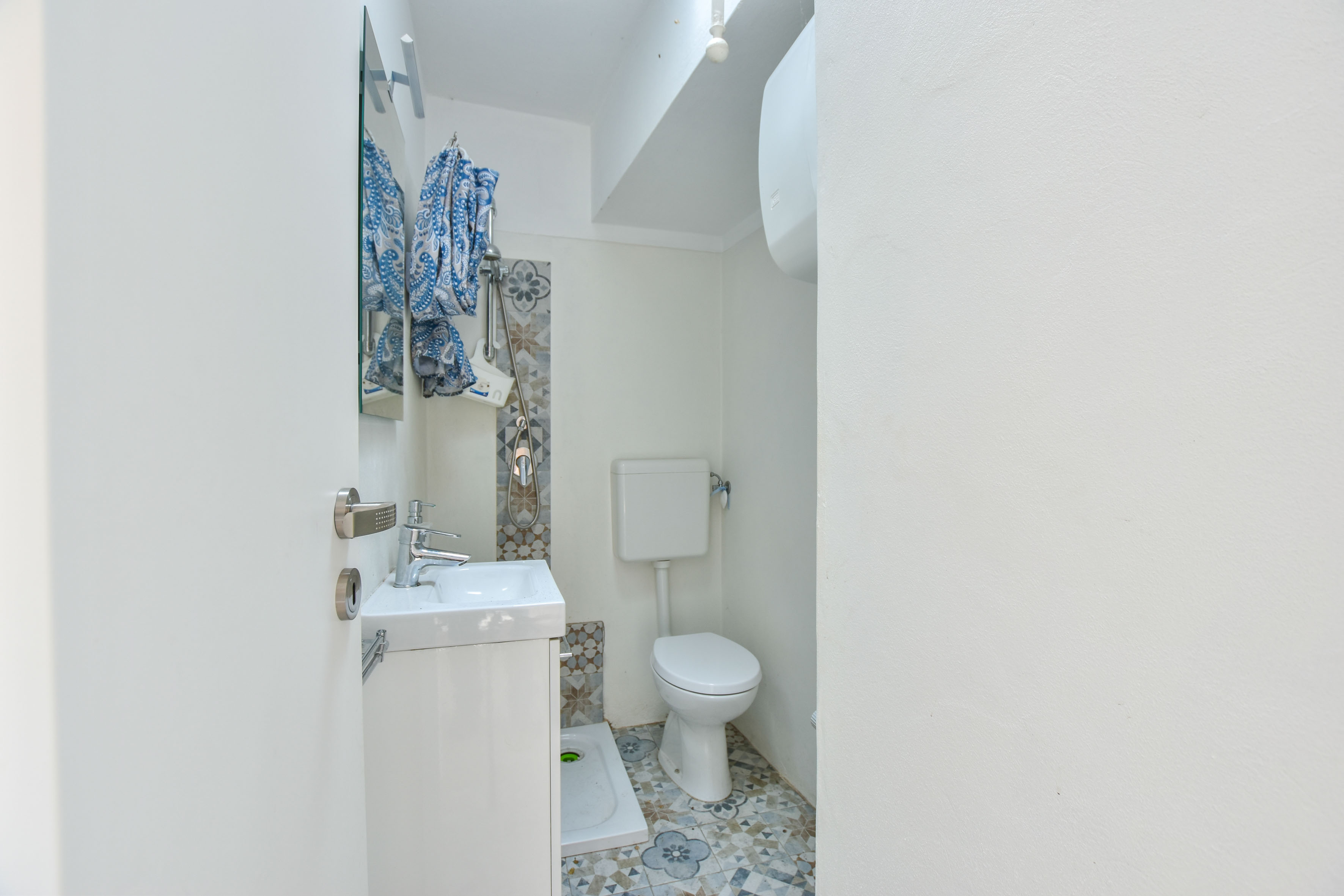 La propriété est développée sur plusieurs niveaux. Au premier étage se trouve un appartement composé d'un séjour, d'une cuisine séparée, de deux chambres et d'une salle de bain avec douche. A l'extérieur, cette unité bénéficie d'une petite terrasse, utilisée comme espace de détente.