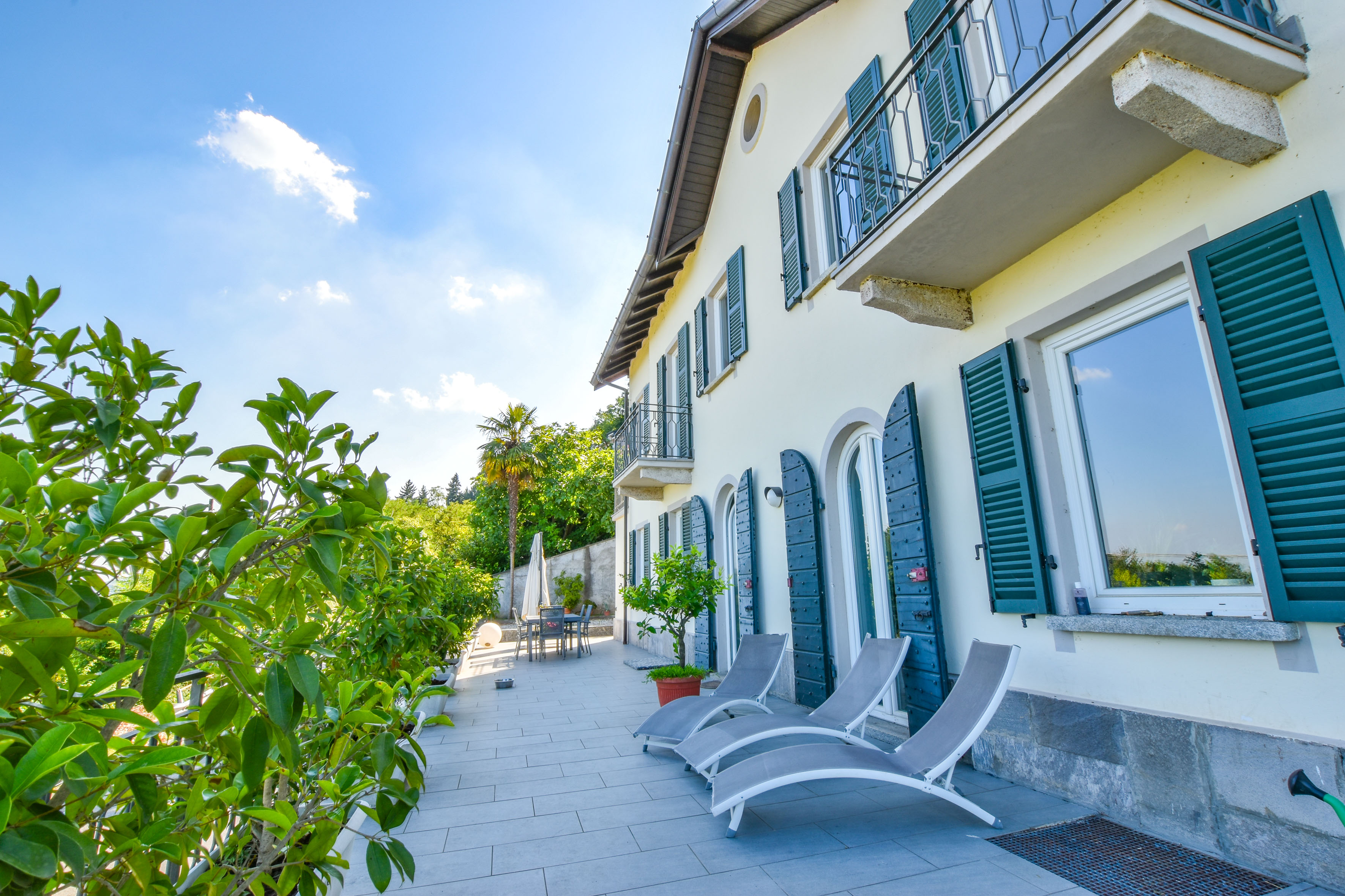En position dominante à flanc de colline, à quelques minutes d'Arona et de Meina, immergée dans la paix et la verdure de Dagnente, nous proposons à la vente une villa de construction récente avec une vue panoramique extraordinaire sur le lac Majeur. Un contexte réservé et évocateur, idéal pour ceux qui recherchent une habitation prestigieuse immergée dans la nature.