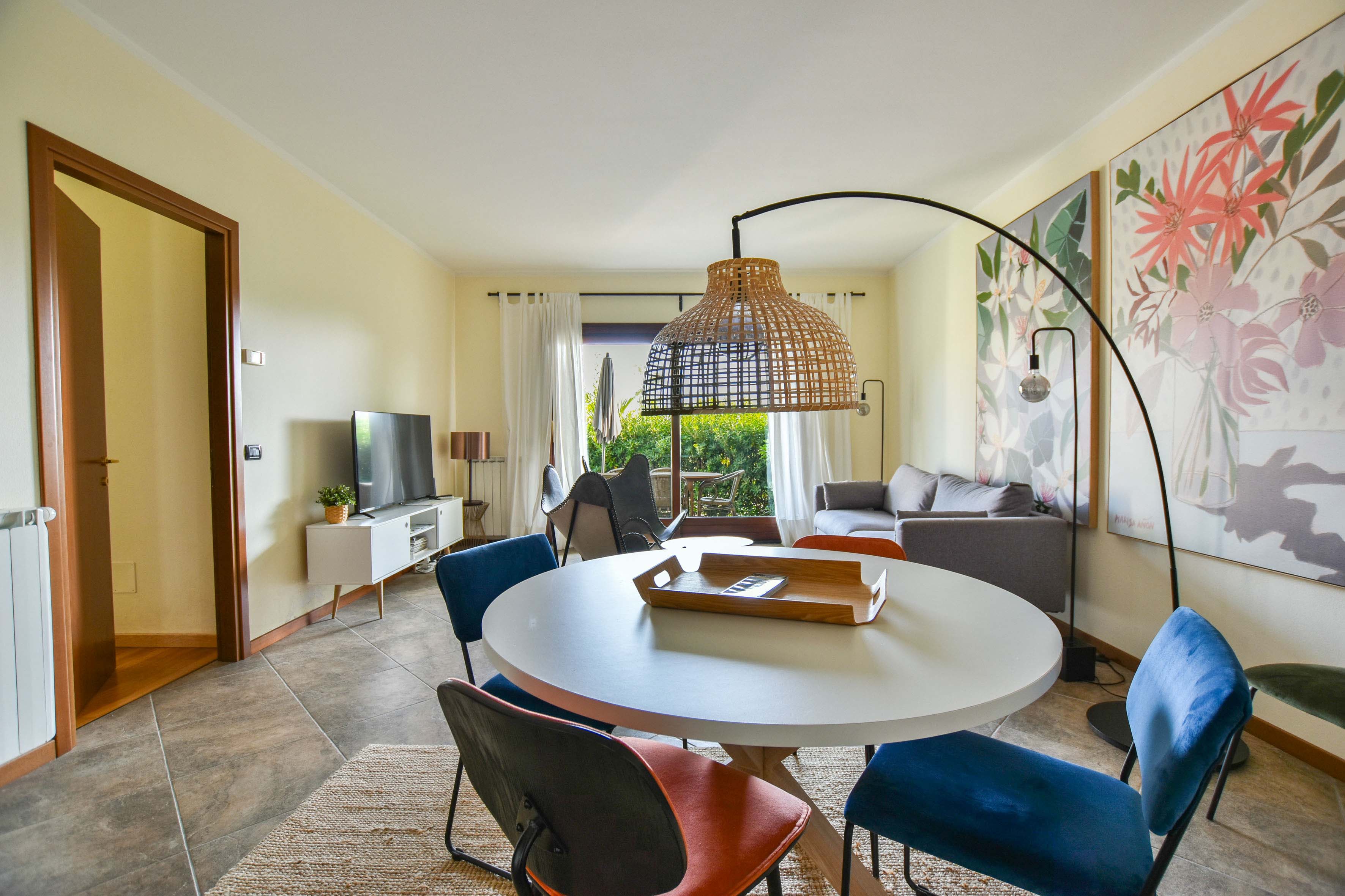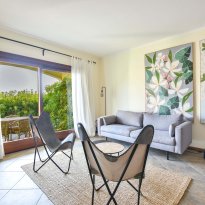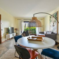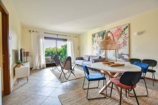 L'appartement est situé au rez-de-chaussée et offre un accès direct au jardin en terrasse avec table et chaises. Le jardin n'est qu'à quelques mètres de la belle piscine commune, ouverte toute l'année. Vous pourrez vous y détendre, prendre un bain de soleil sur une chaise longue ou faire quelques brasses rafraîchissantes à quelques pas de là.