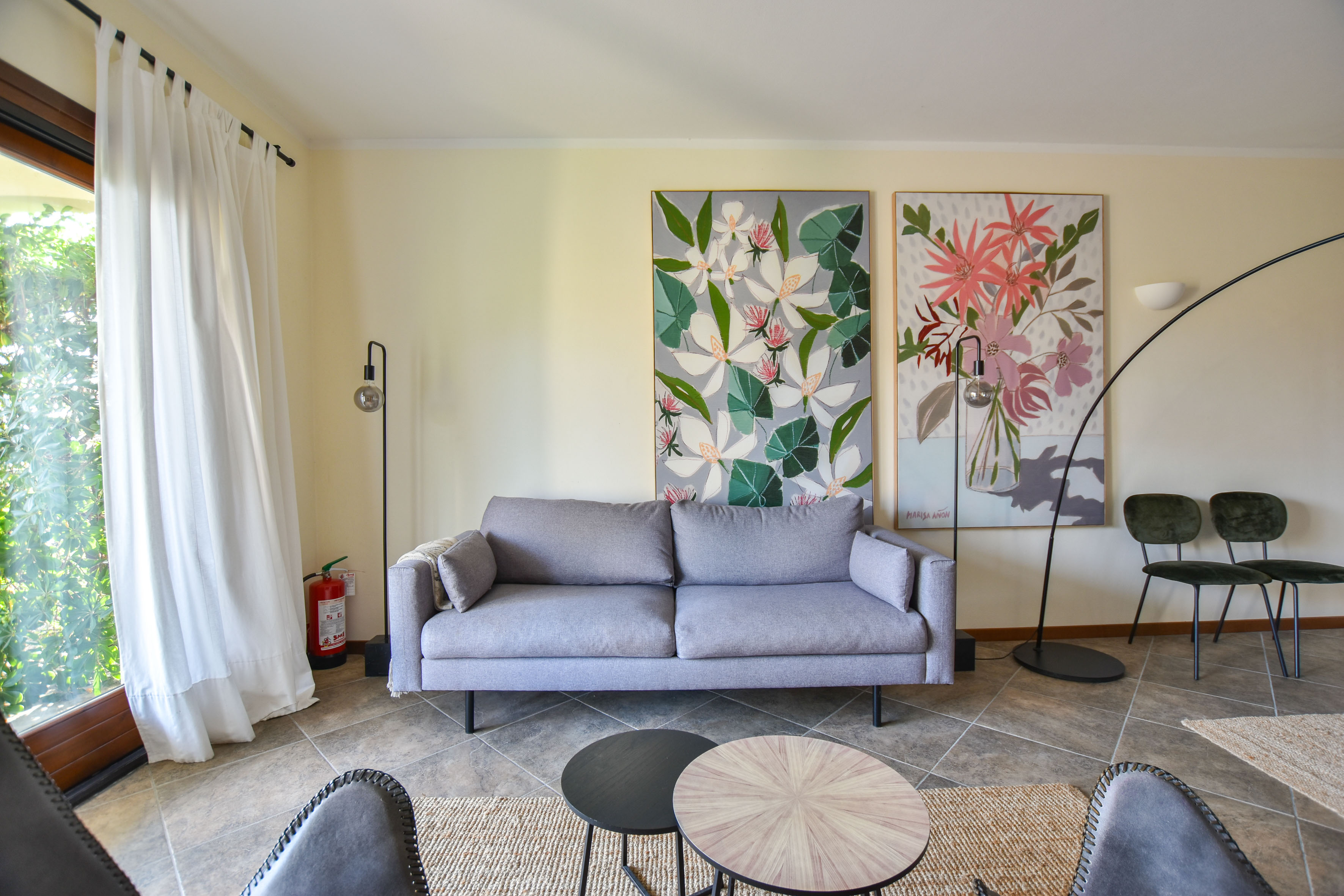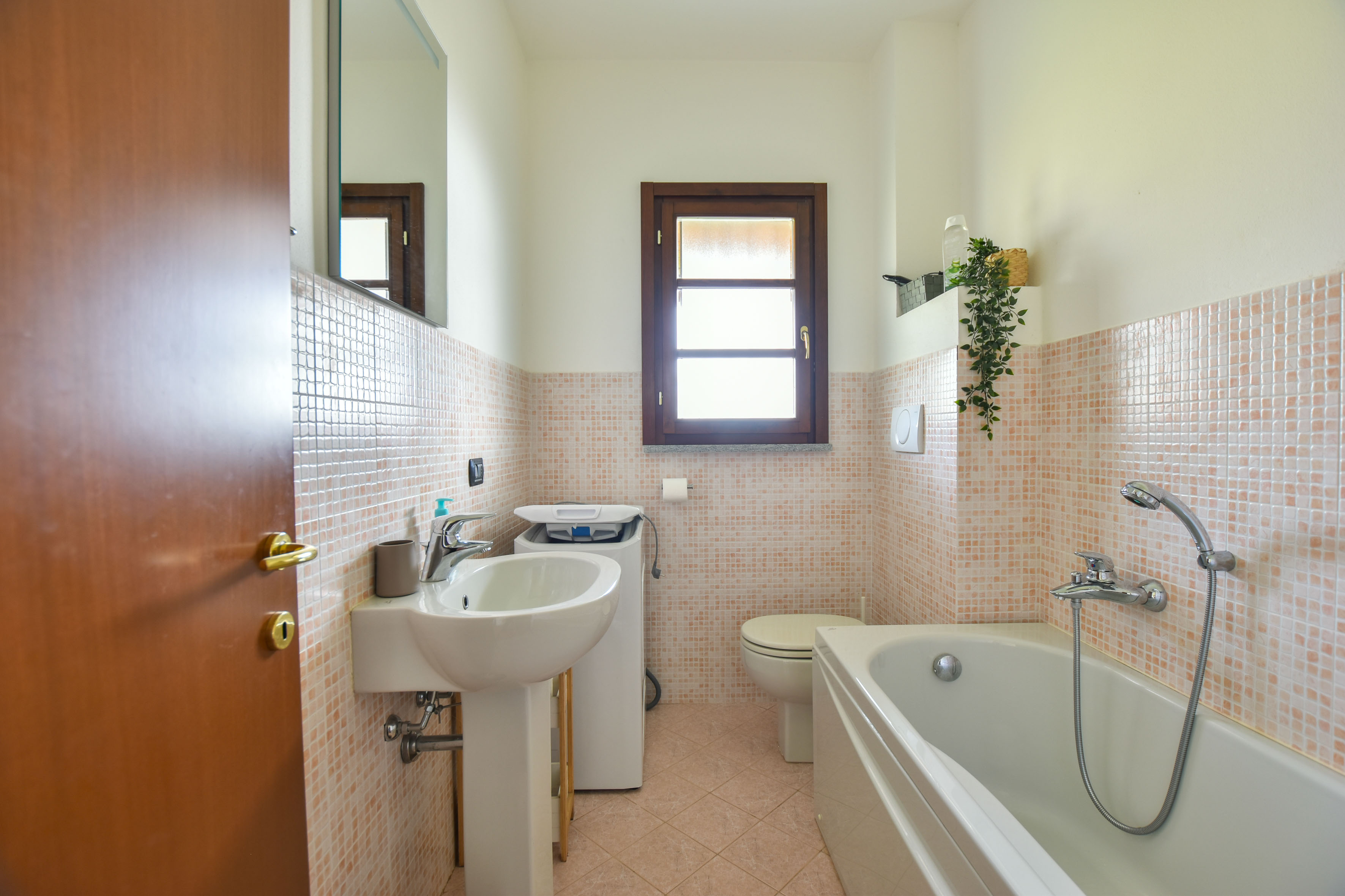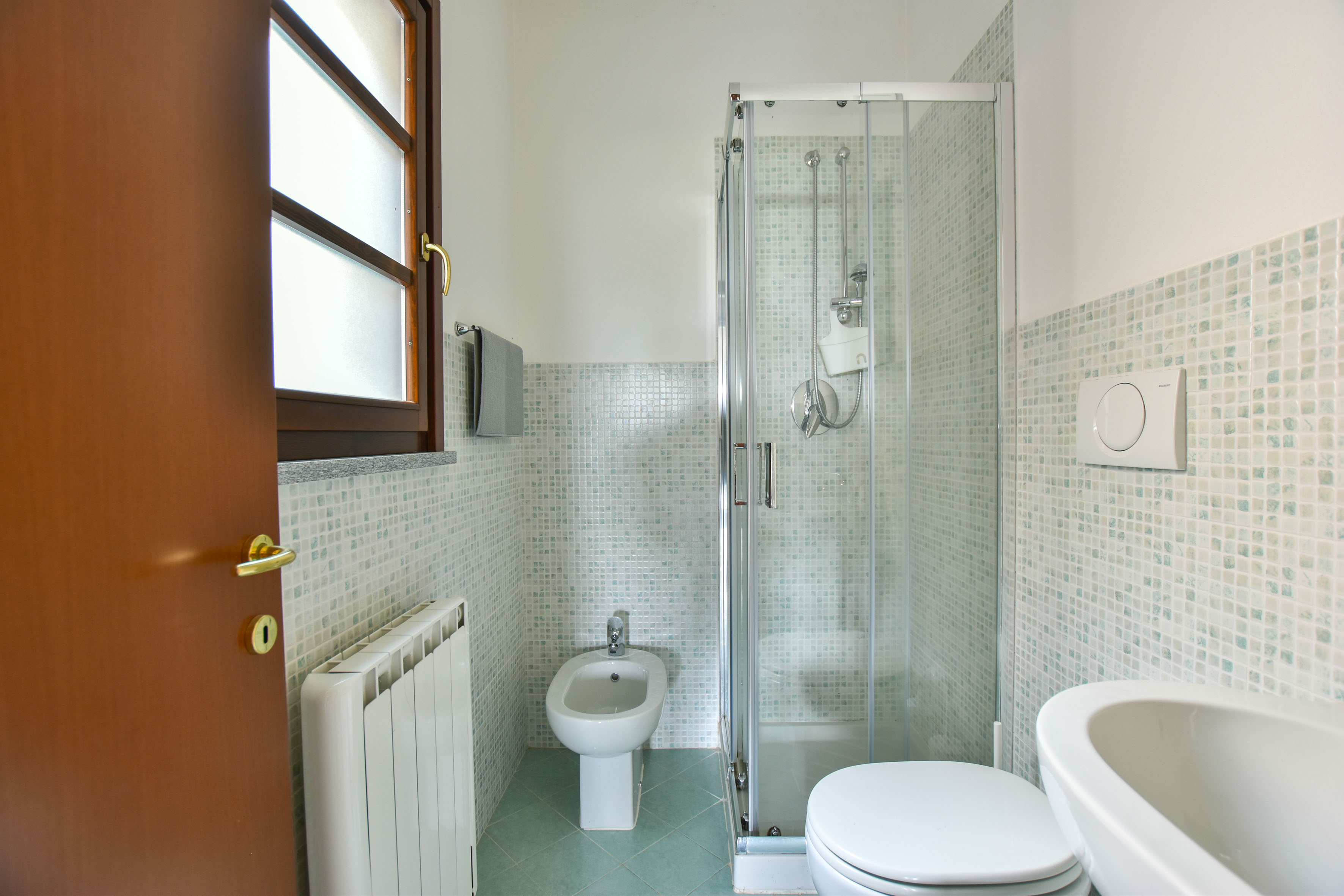 L'appartement est élégamment et confortablement meublé et dispose d'une terrasse ensoleillée et d'un petit jardin privé d'où vous pourrez profiter d'une vue magnifique sur les collines environnantes et sur la piscine. À l'intérieur, il y a un salon moderne avec une cuisine ouverte, entièrement équipée avec des appareils modernes. Il y a deux chambres confortables, chacune avec sa propre salle de bains : la première chambre a trois lits simples et une salle de bains privée avec baignoire. La deuxième chambre dispose d'un lit double et d'une salle de bains privée avec douche.