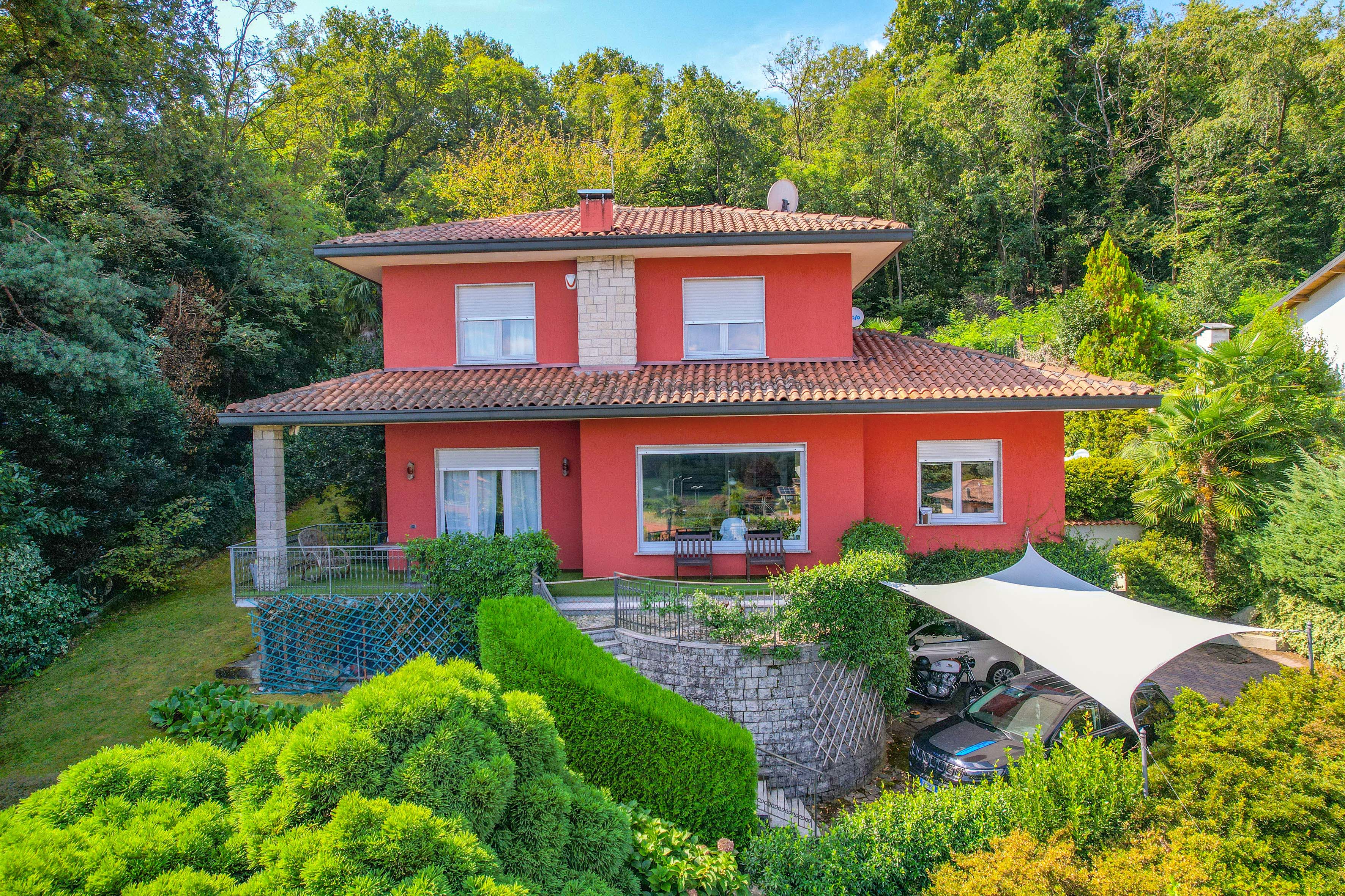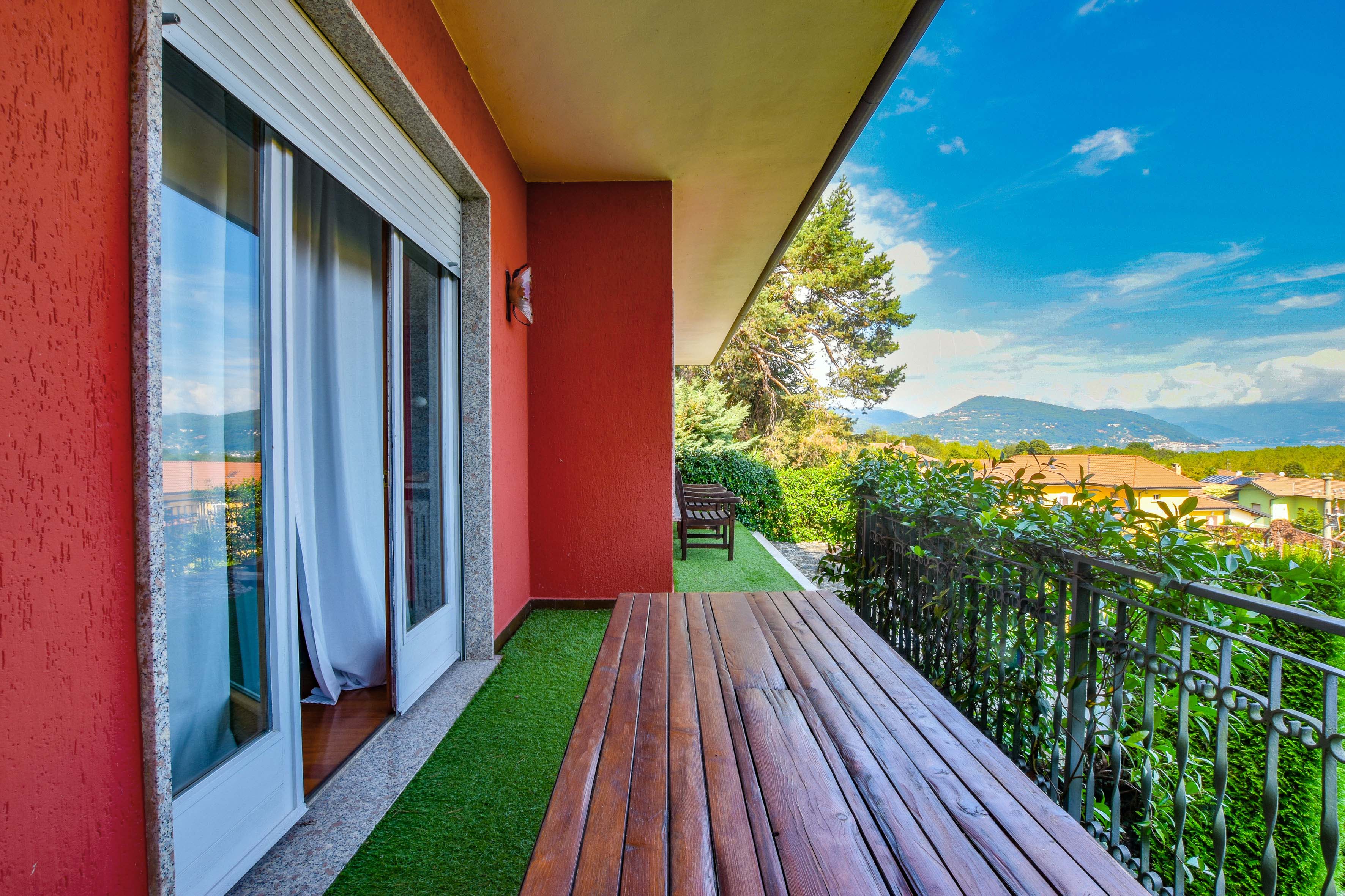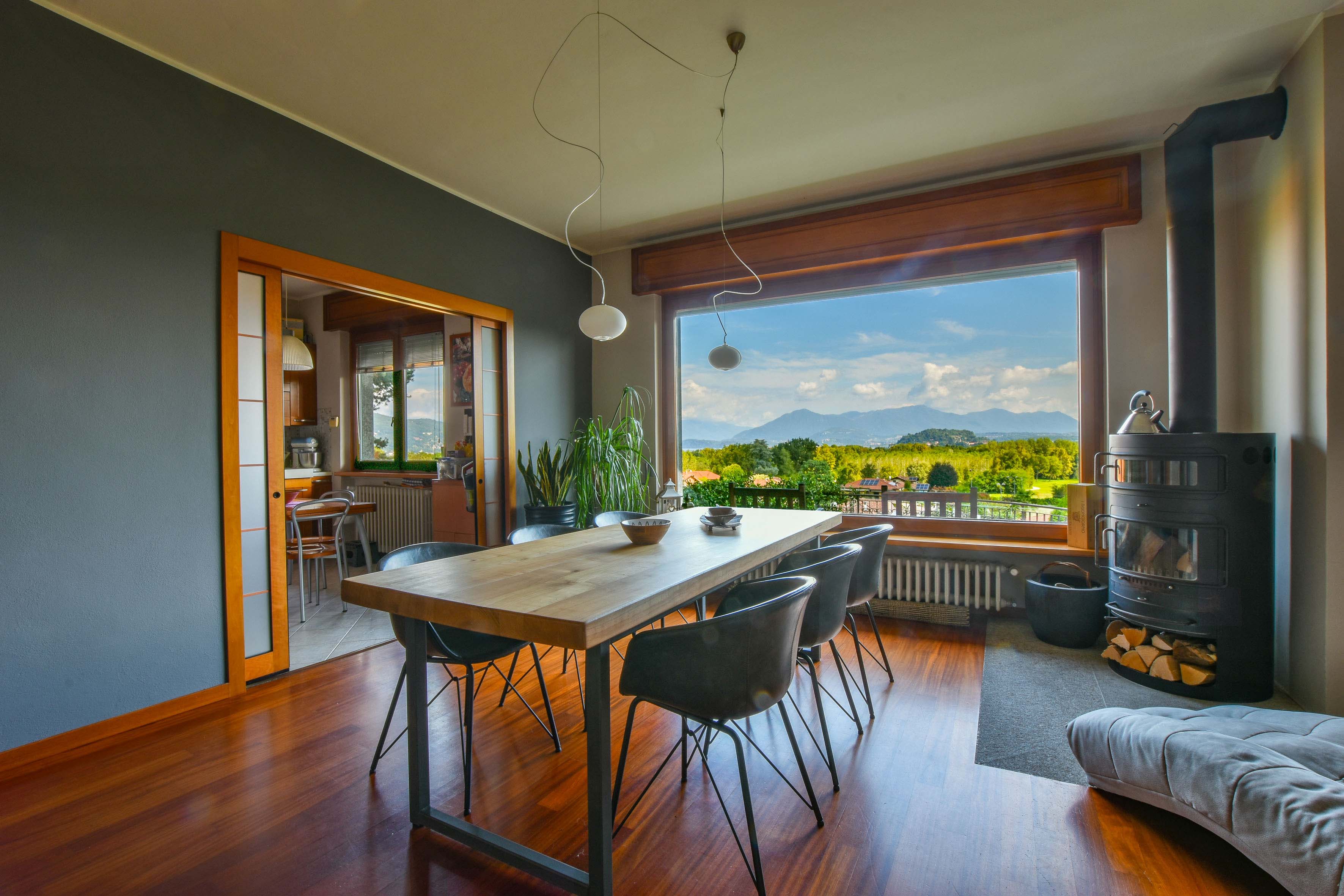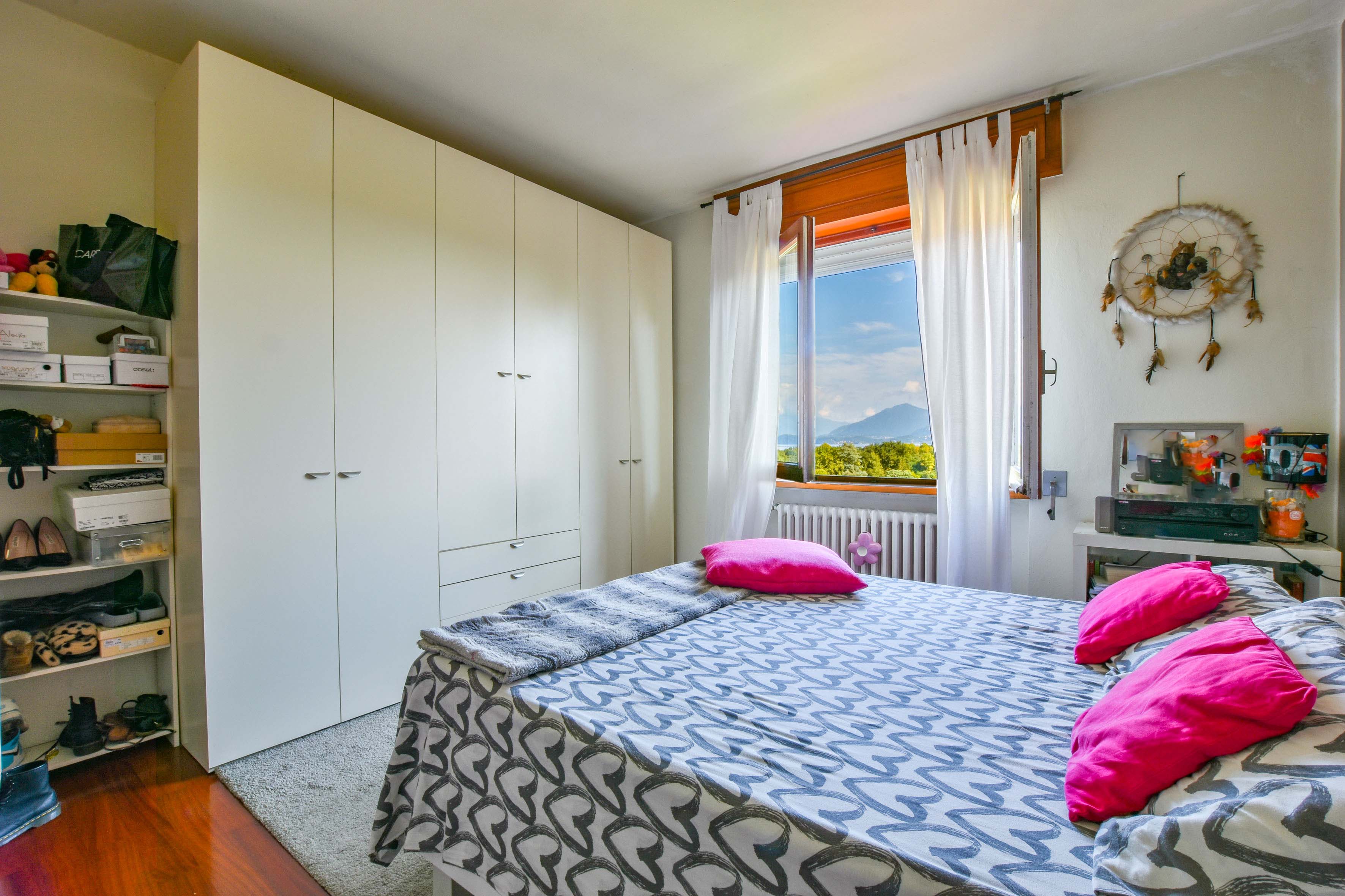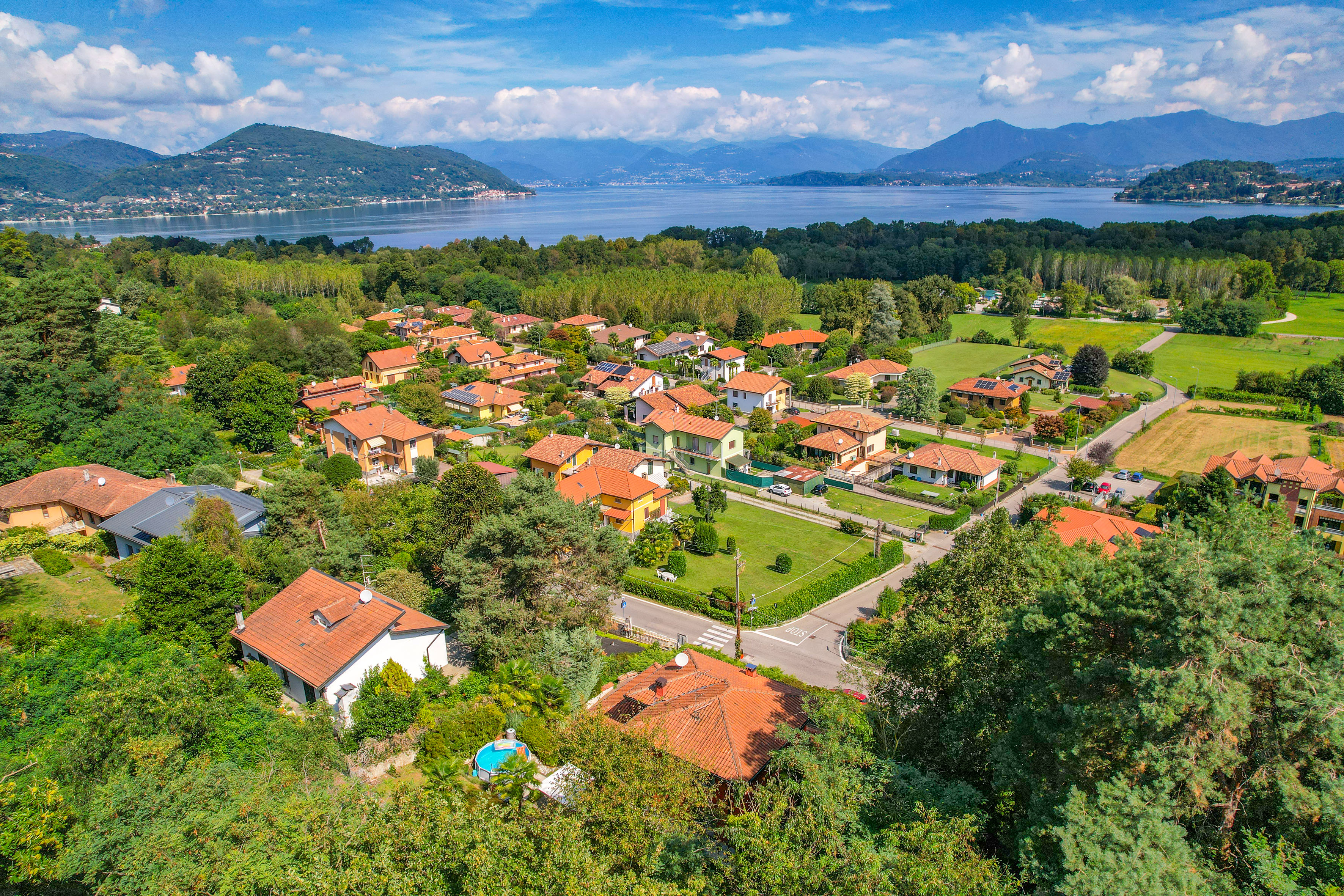 Au rez-de-chaussée, l'habitation dispose d'une cuisine équipée séparée par d'élégantes portes coulissantes, d'un grand séjour avec salle à manger et d'un salon enrichi d'un poêle à bois, lieu de rencontre et de partage éclairé par la lumière naturelle qui filtre à travers les grandes fenêtres donnant sur le panorama pittoresque et le balcon qui offre une vue spectaculaire sur le lac Majeur et les paysages environnants. L'étage est complété par une chambre double, donnant sur le jardin arrière et desservie par une salle de bains.