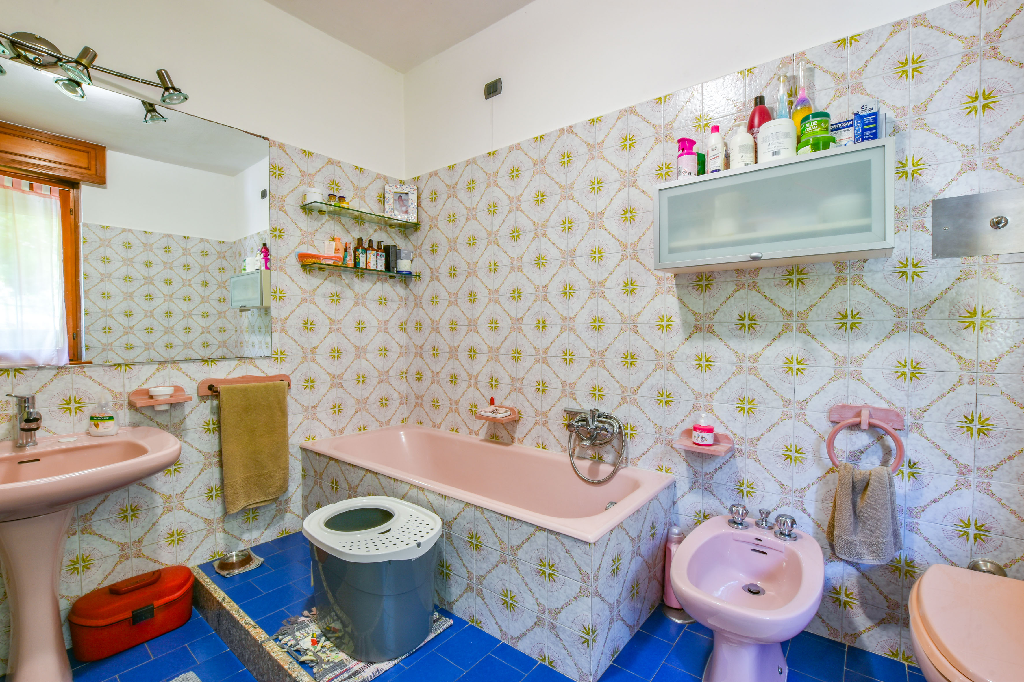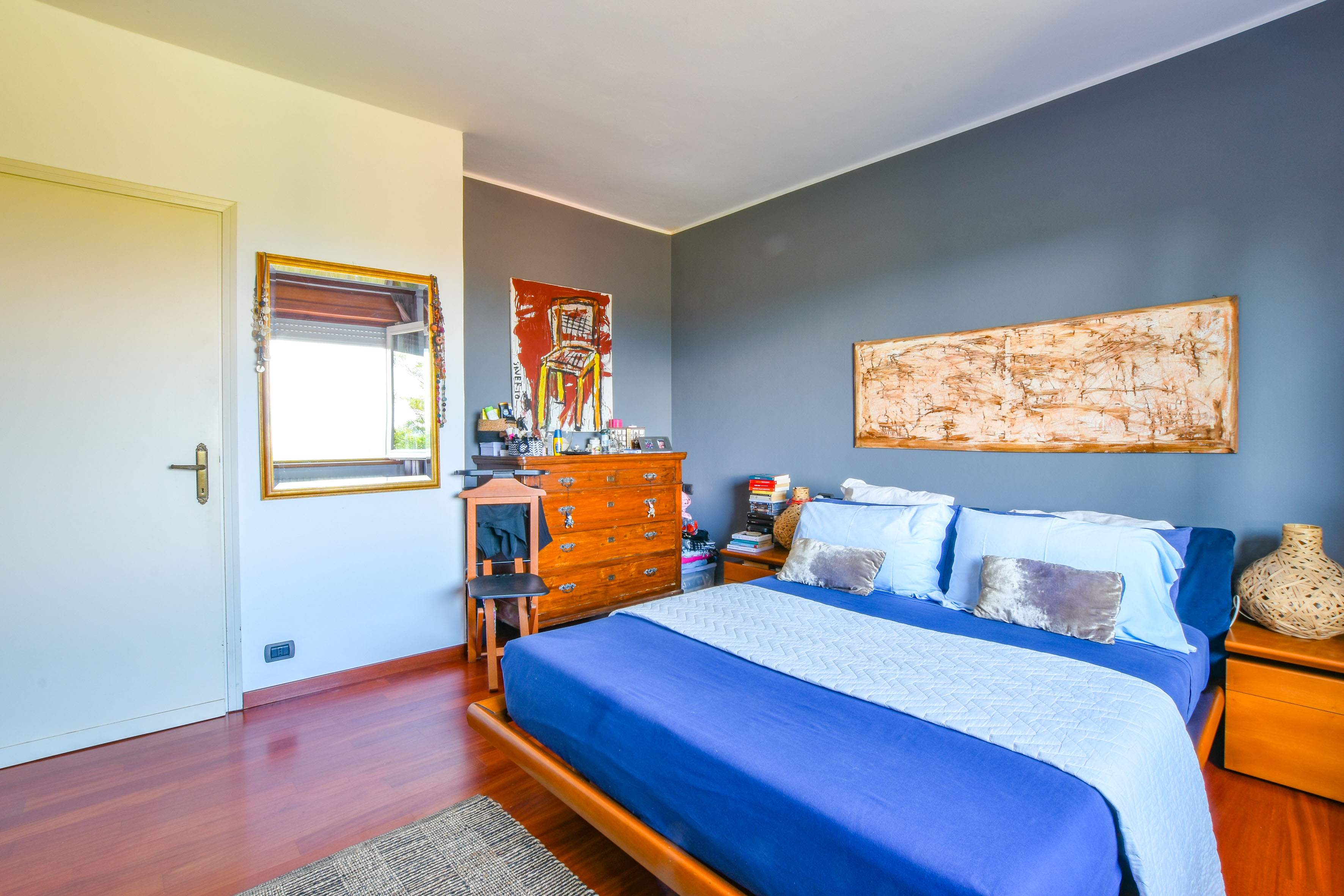 Le premier étage, relié par un escalier intérieur en marbre, comprend deux chambres doubles spacieuses, toutes deux avec vue sur le lac et les montagnes et revêtues de parquet. La salle de bains principale de cet étage est équipée d'une baignoire et d'une douche. L'étage donne également accès à un grenier très pratique.