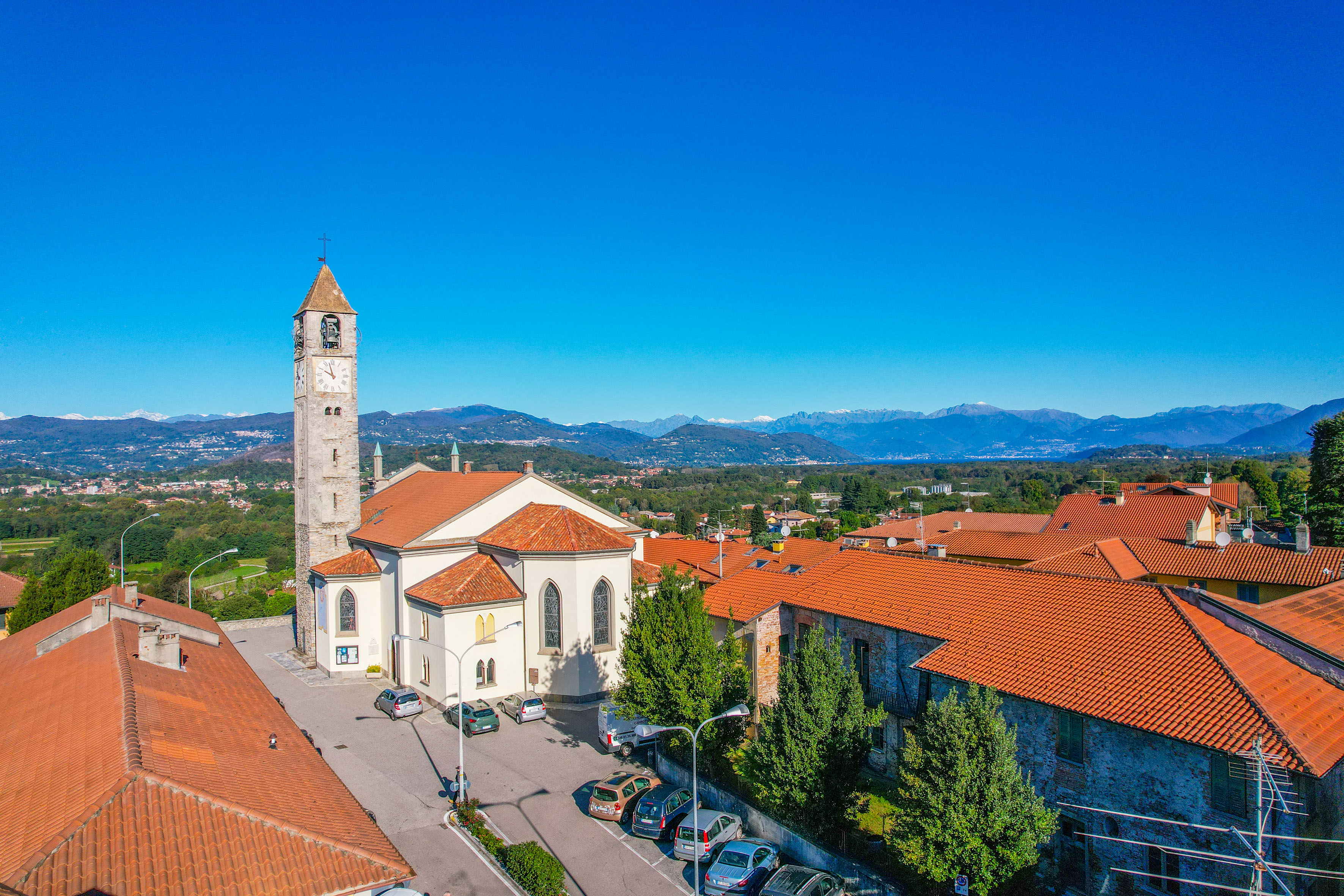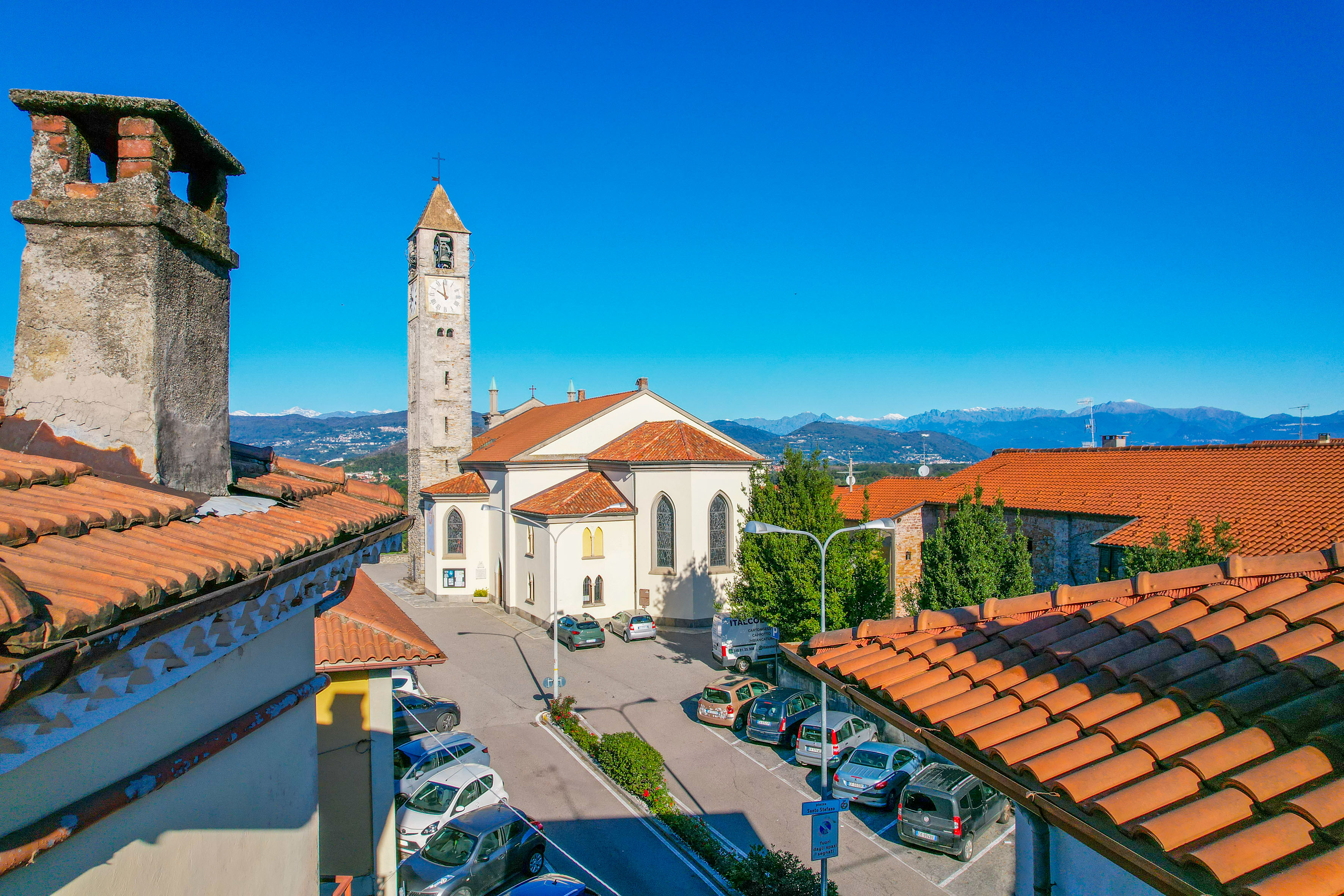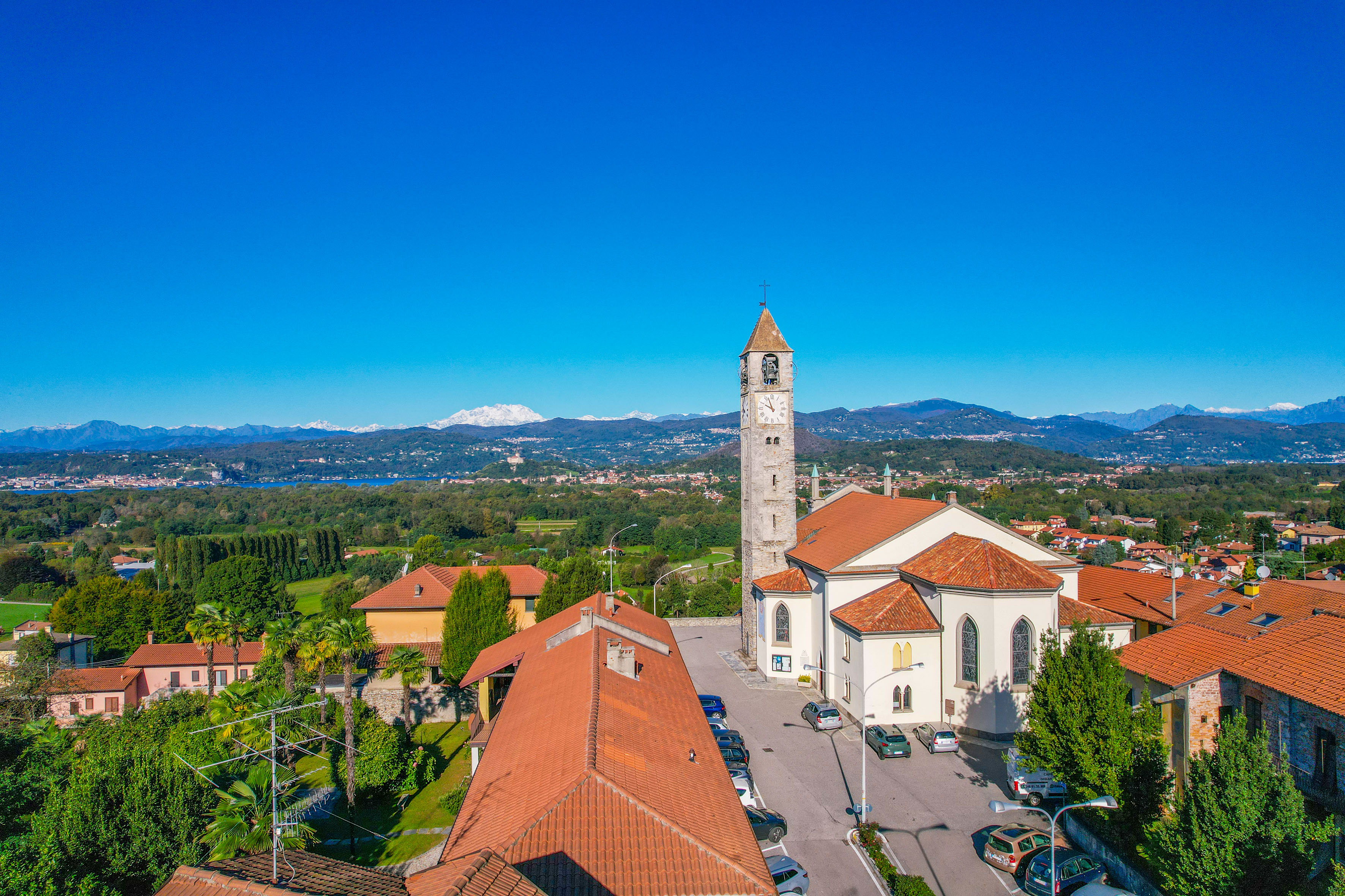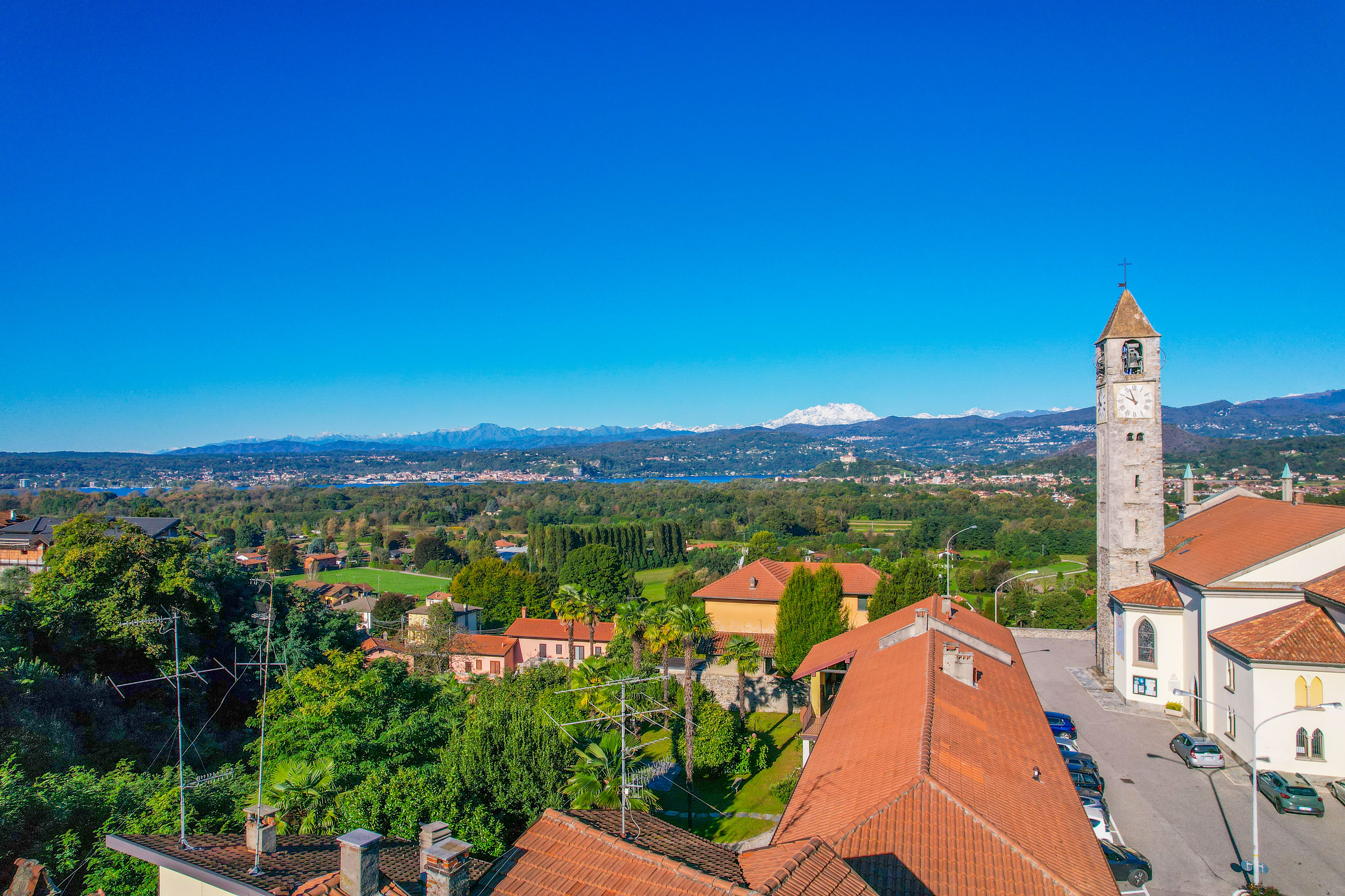 La position centrale garantit la commodité de la vie de village, avec une vue ouverte sur la petite église et la Rocca di Angera au loin, dans un contexte tranquille et bien entretenu.