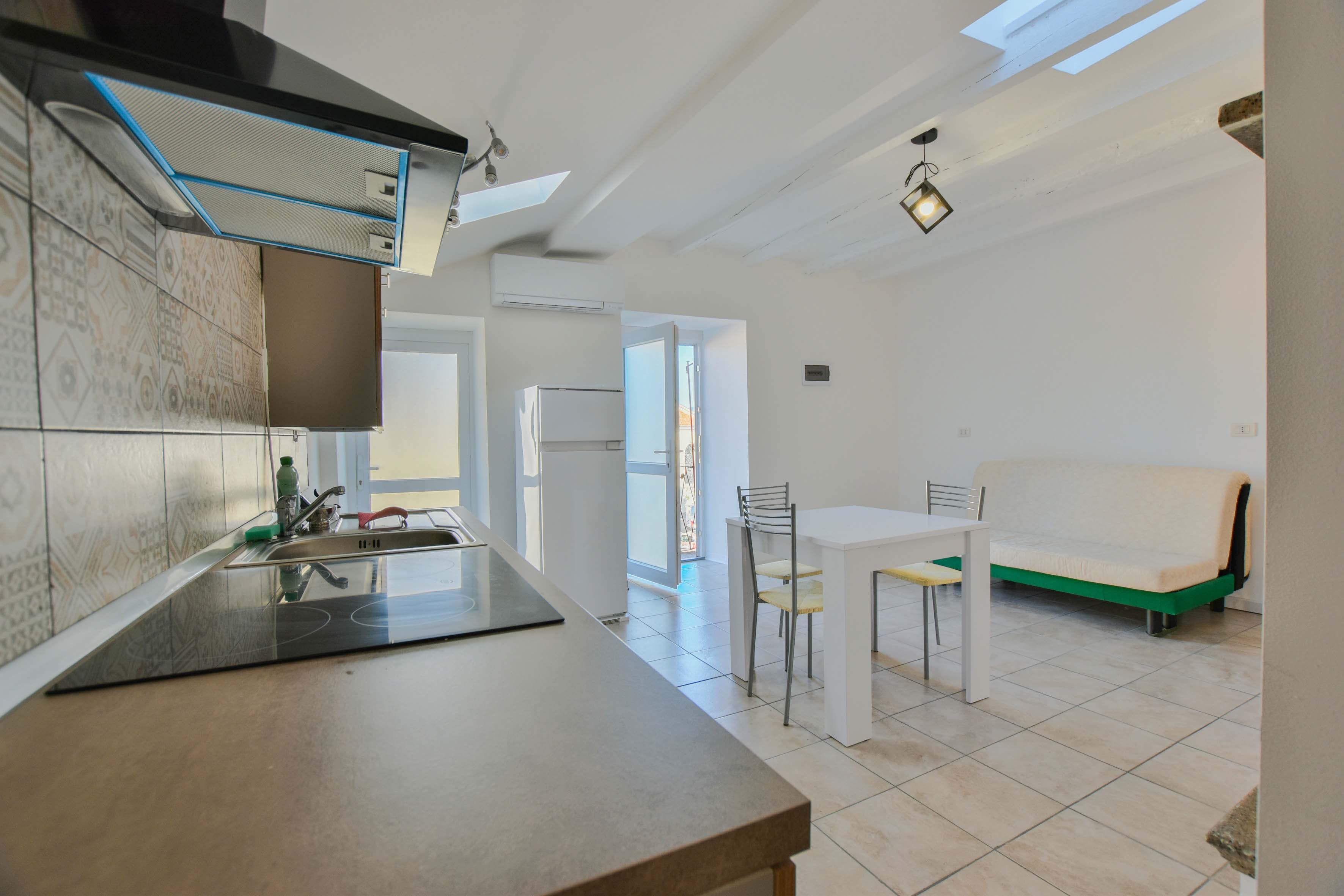 La propriété, datant du début du XXe siècle et ayant fait l'objet de travaux d'entretien au fil des ans, se compose d'un espace de vie lumineux avec cuisine ouverte et accès à un petit balcon donnant sur la place, d'une chambre confortable et d'une salle de bains avec douche.