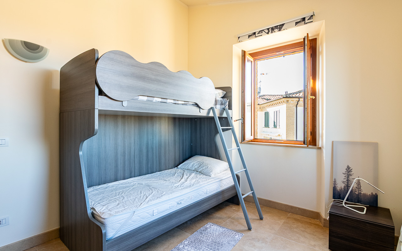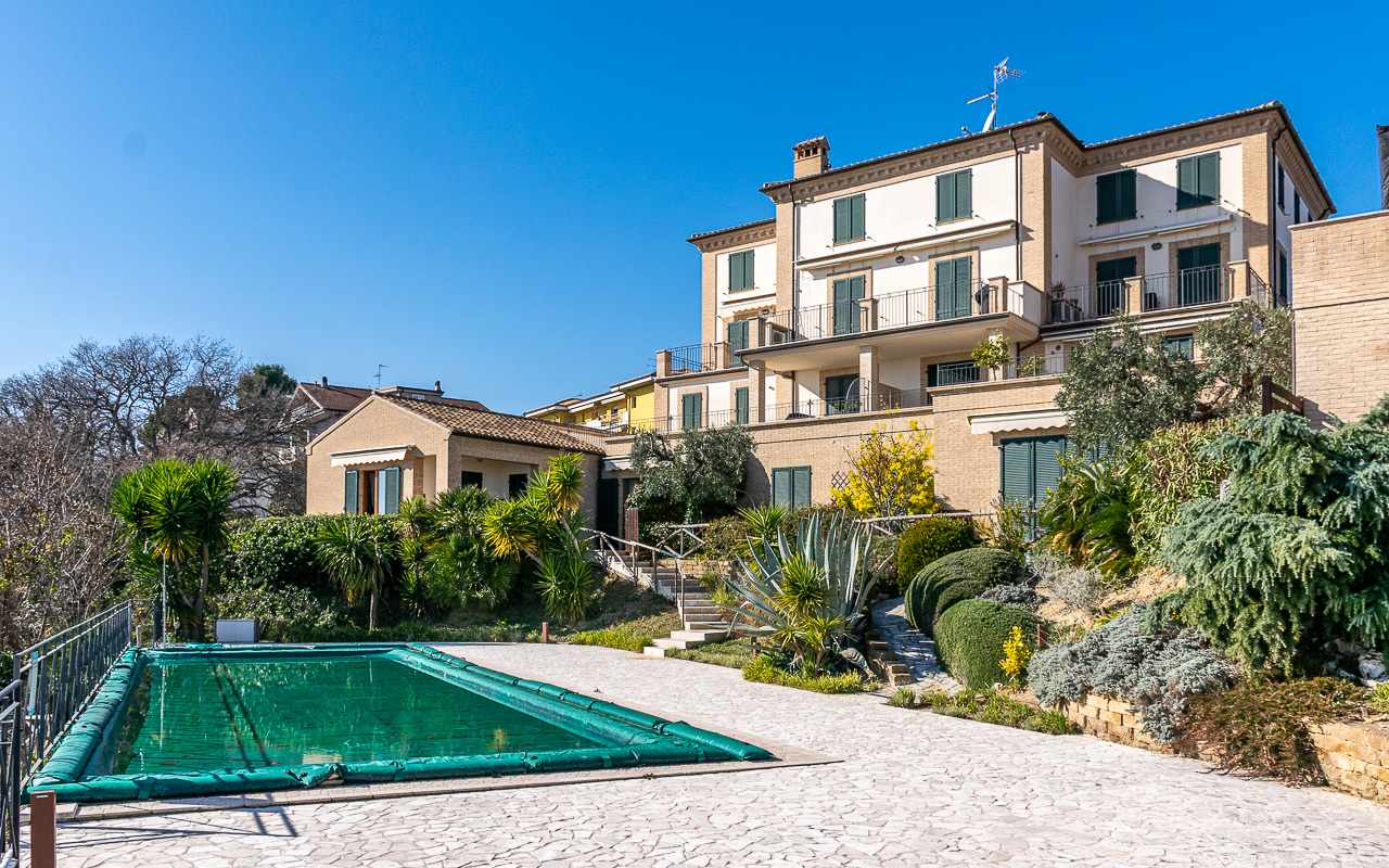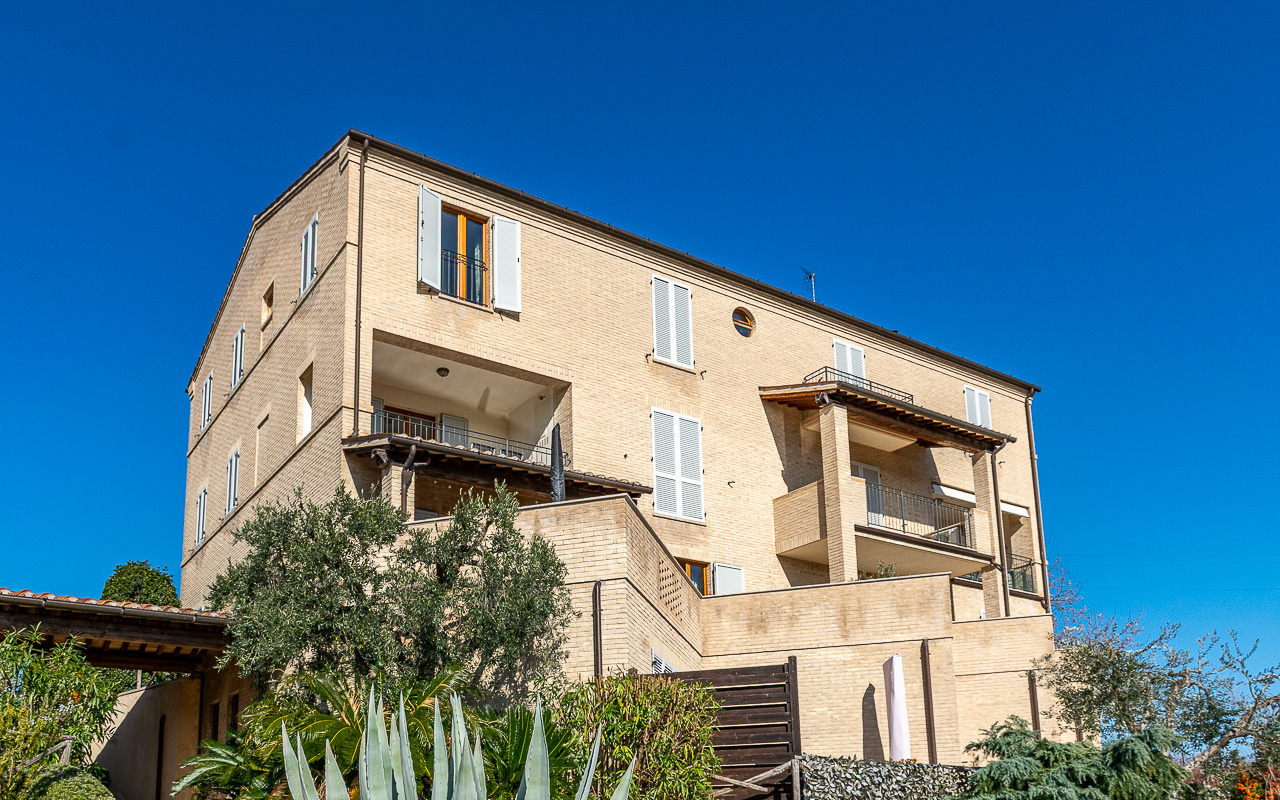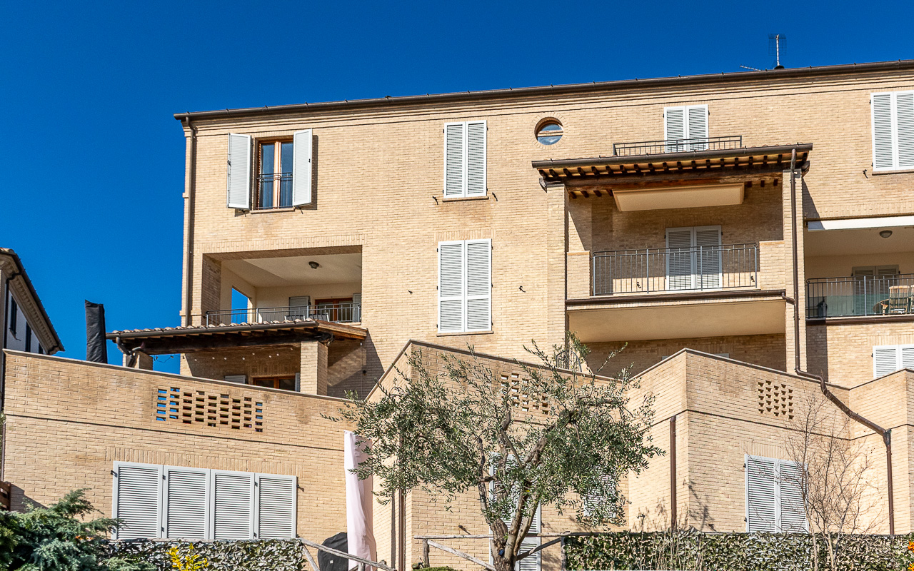 Borgo Marina is a spacious duplex apartment for sale, set just outside the charming village of Campofilone. The residential complex in which the apartment is located has been thoughtfully designed to maximise the southerly and easterly exposure, offering panoramic views across the rolling hills to the Adriatic Sea. It is located only 1,200 metres from the coast as the crow flies, and all owners share a well-maintained 10 x 8 metre swimming pool, barbecue area, garden and changing area near the pool.
