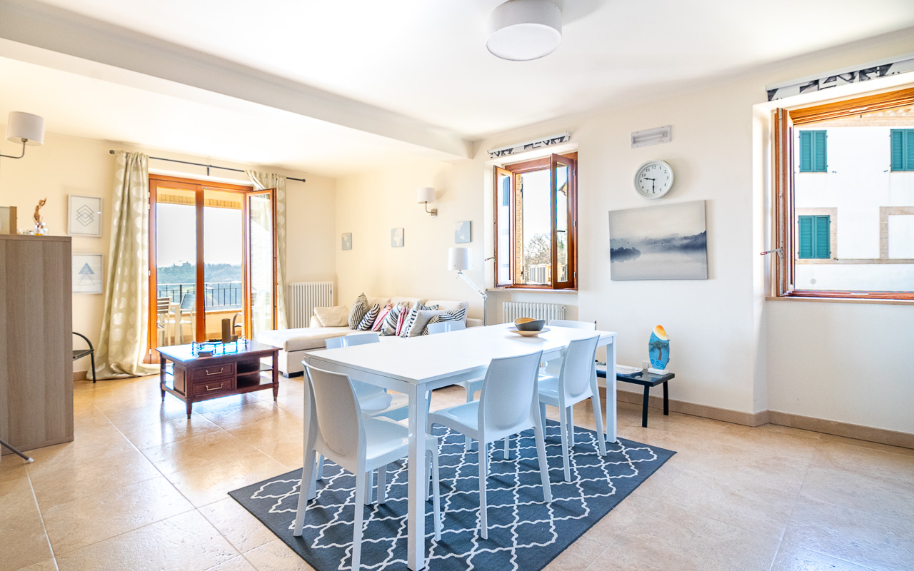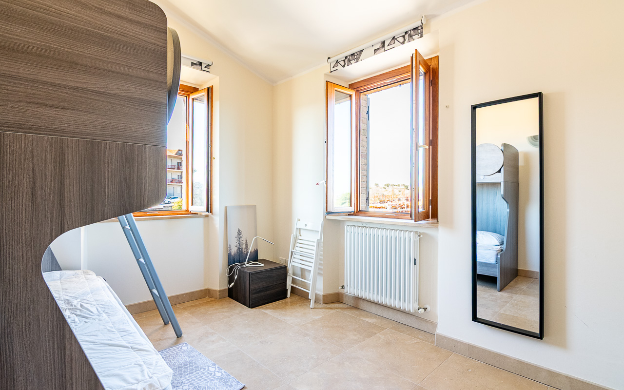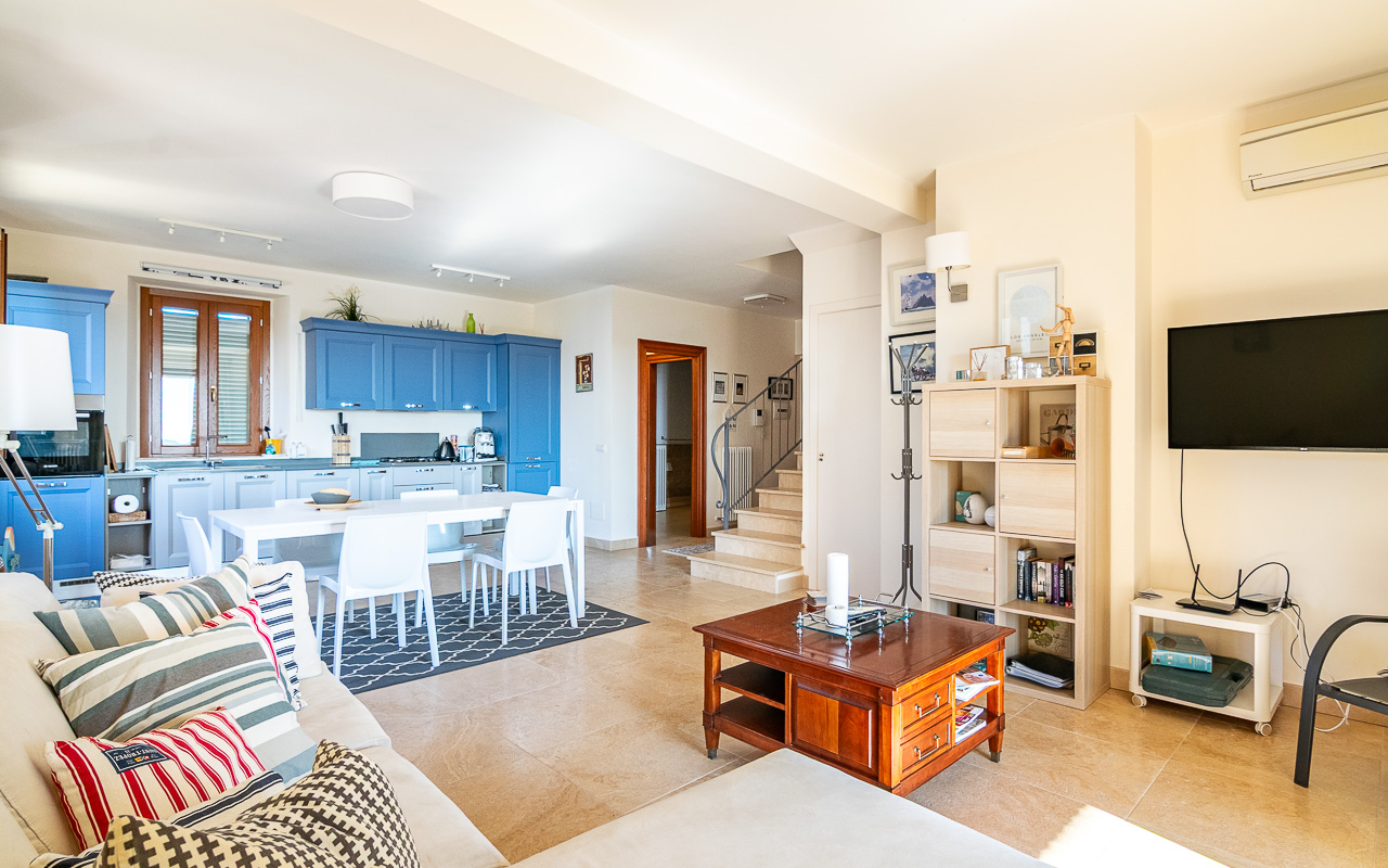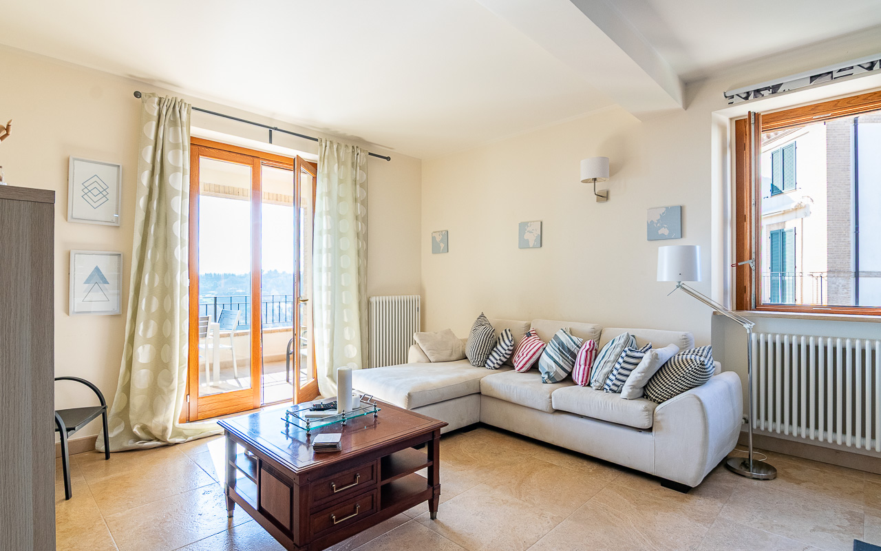Borgo Marina is a spacious duplex apartment for sale, set just outside the charming village of Campofilone. The residential complex in which the apartment is located has been thoughtfully designed to maximise the southerly and easterly exposure, offering panoramic views across the rolling hills to the Adriatic Sea. It is located only 1,200 metres from the coast as the crow flies, and all owners share a well-maintained 10 x 8 metre swimming pool, barbecue area, garden and changing area near the pool.