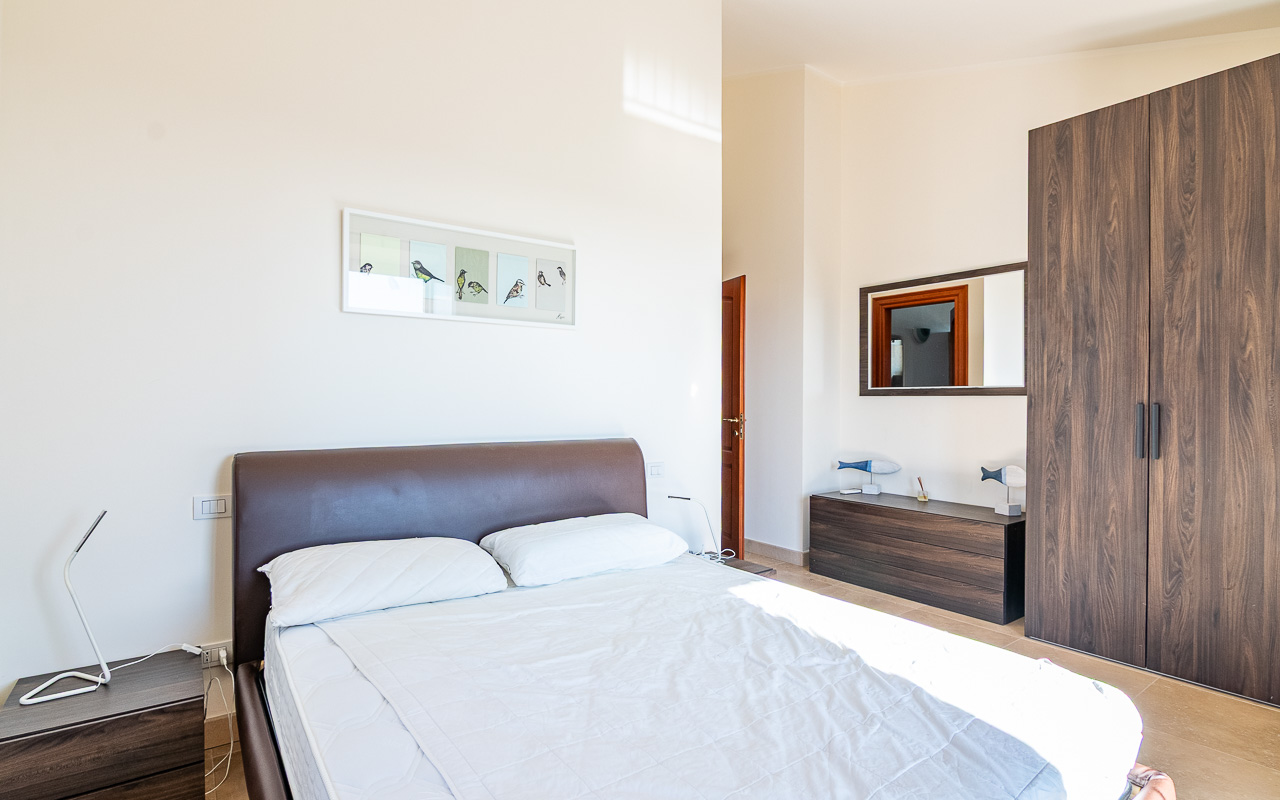 The entrance level comprises a bright open-plan living and kitchen area, with French doors opening onto the balcony, from where there are beautiful views of both the sea and the mountains. On this floor there is also a bathroom with an adjoining laundry area, as well as a small internal storage space.