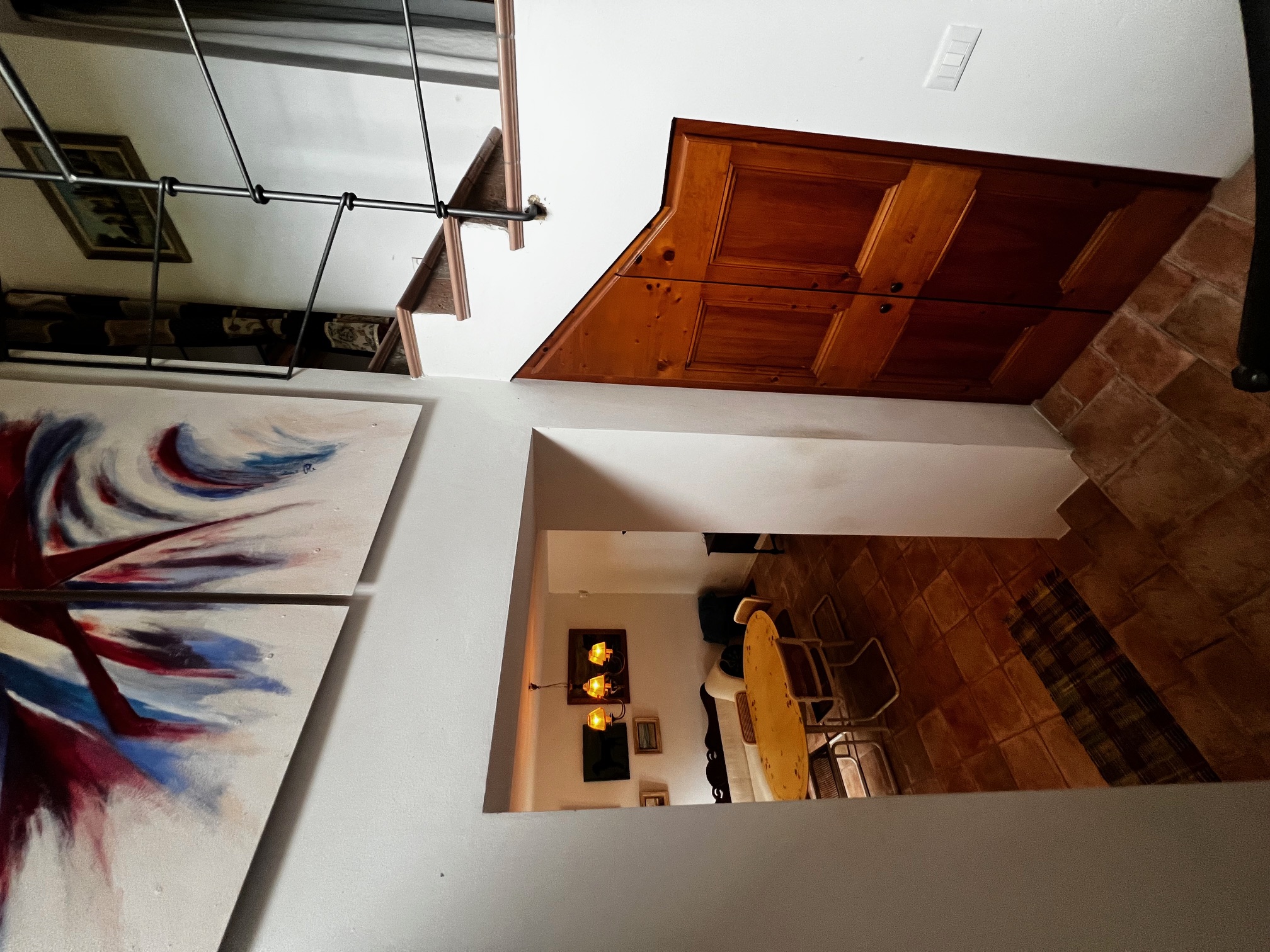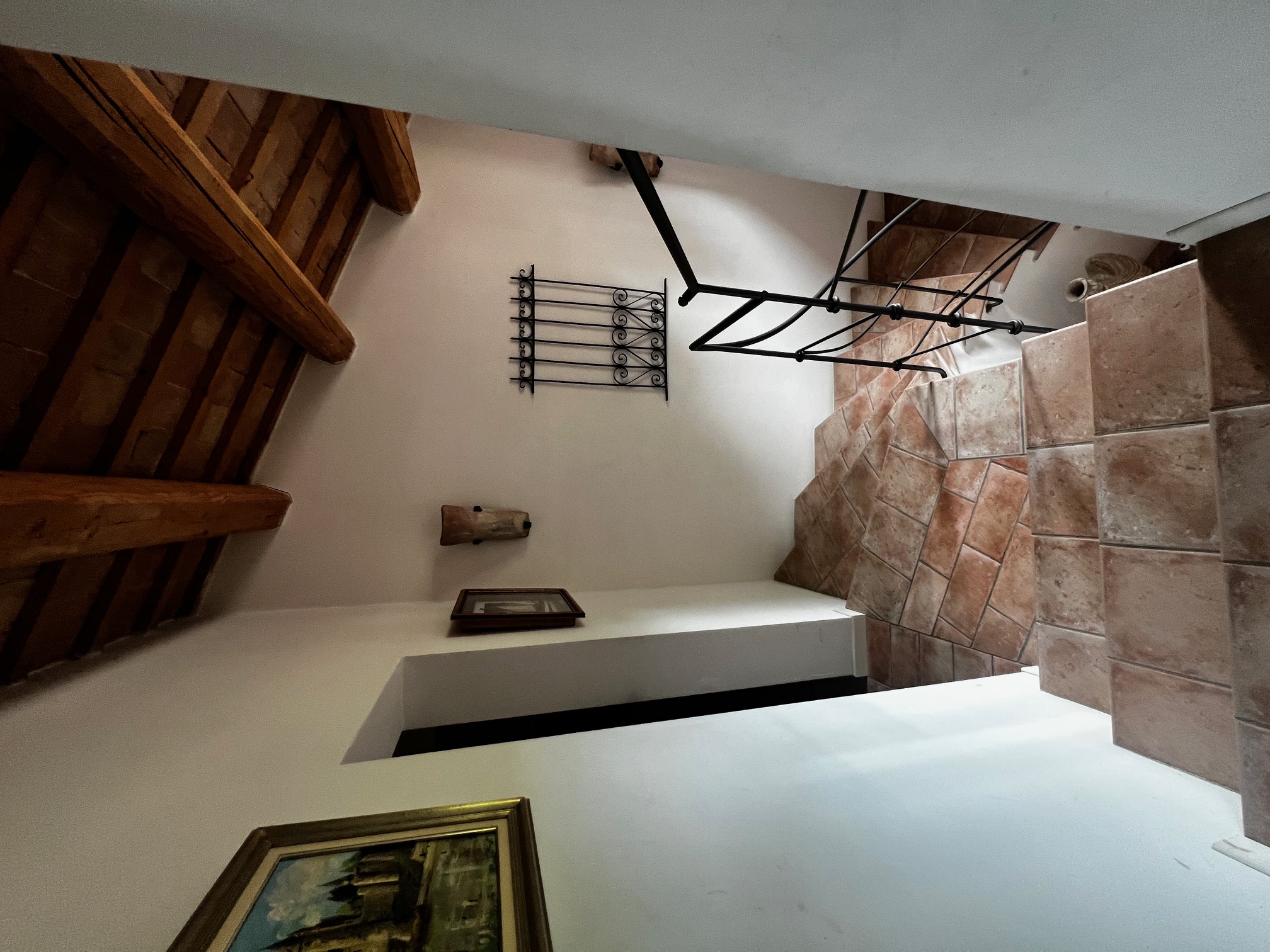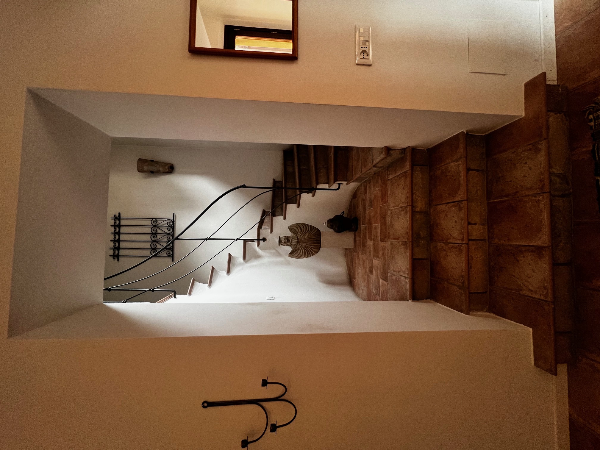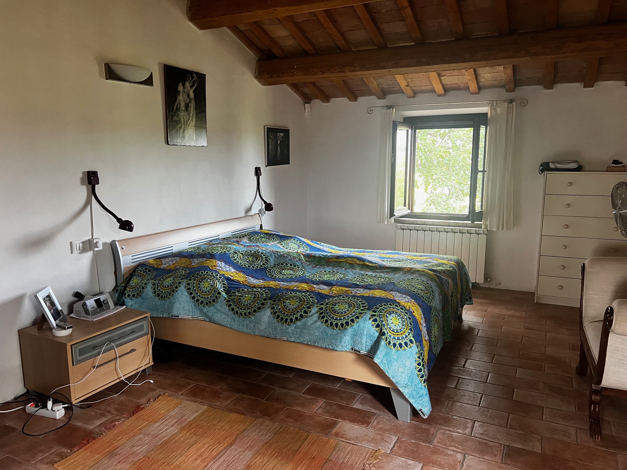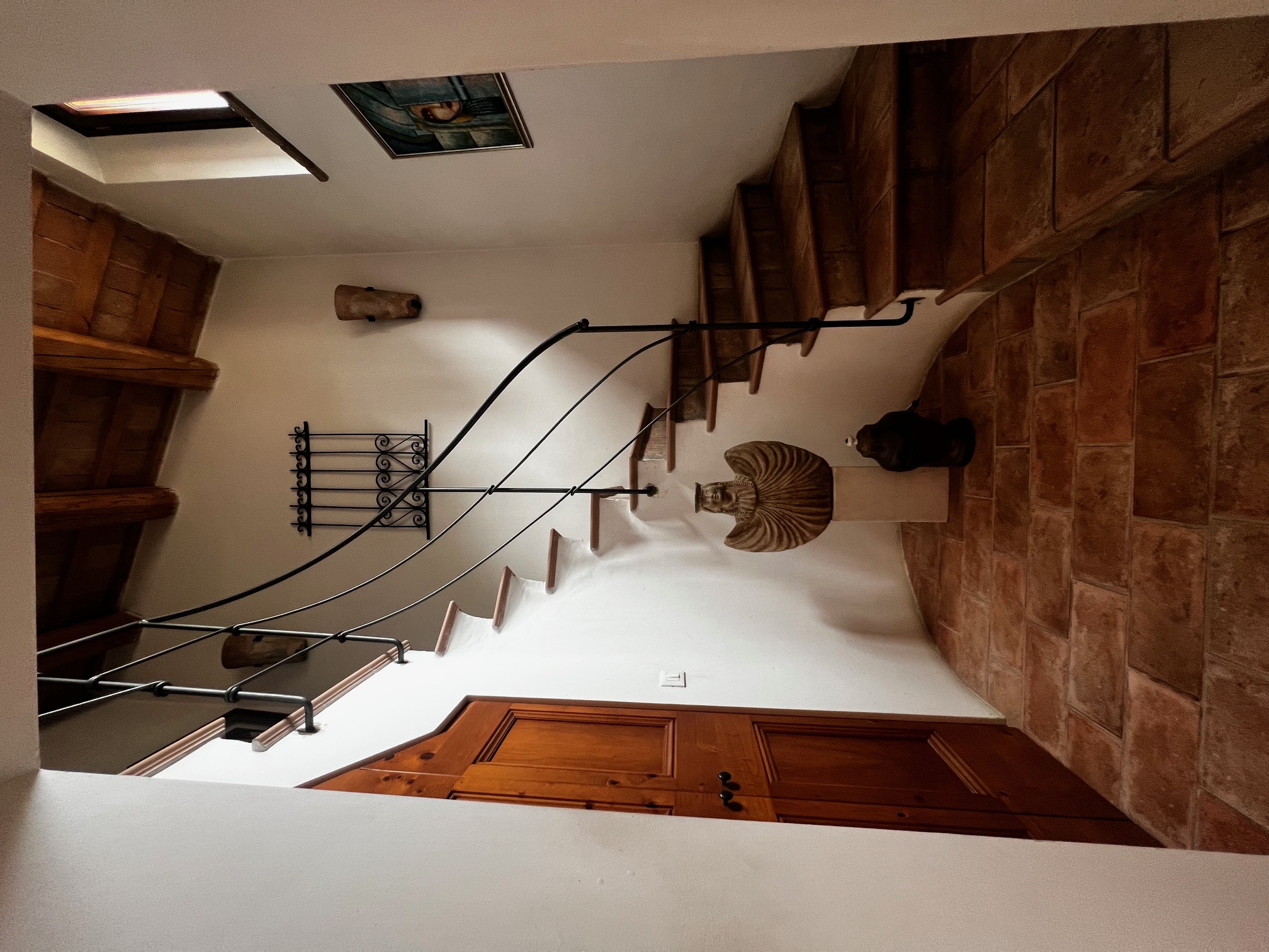 Un élégant escalier mène à la chambre principale avec salle de bains attenante équipée d'une très grande douche, de 2 lavabos, d'un bidet et de toilettes, un dressing (armoire, peut être utilisé comme petite chambre), un salon avec cheminée, 3 chambres et une salle de bains. Le premier étage est également accessible par un escalier extérieur .