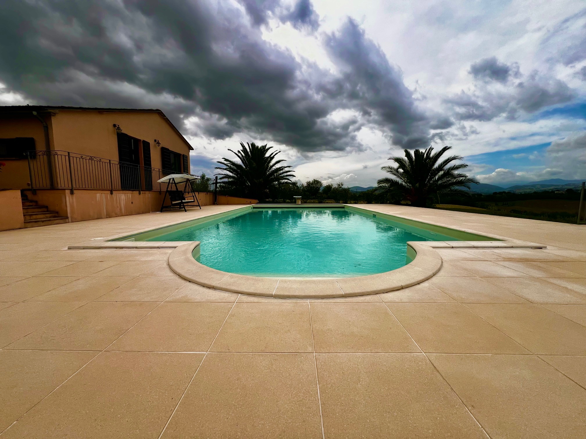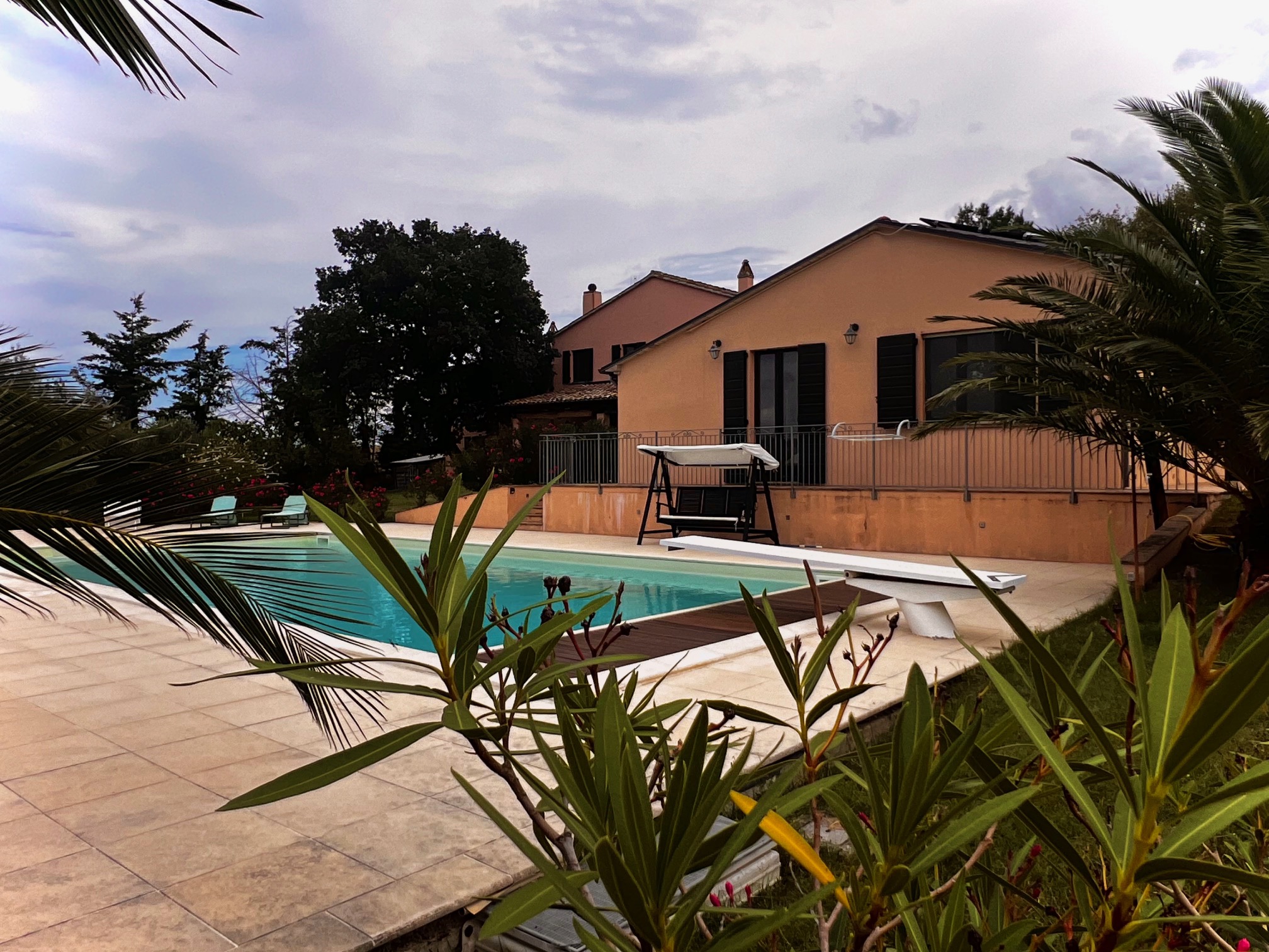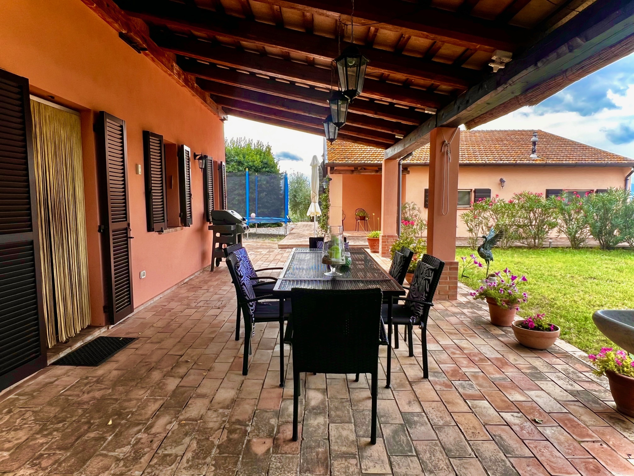 La piscine de 13x6 mètres est entièrement clôturée avec un volet roulant électrique, et sous la terrasse ensoleillée qui l'entoure se trouve le local technique pour la piscine, où il y a également un espace pour ranger, par exemple, les chaises longues. Douche extérieure disponible .