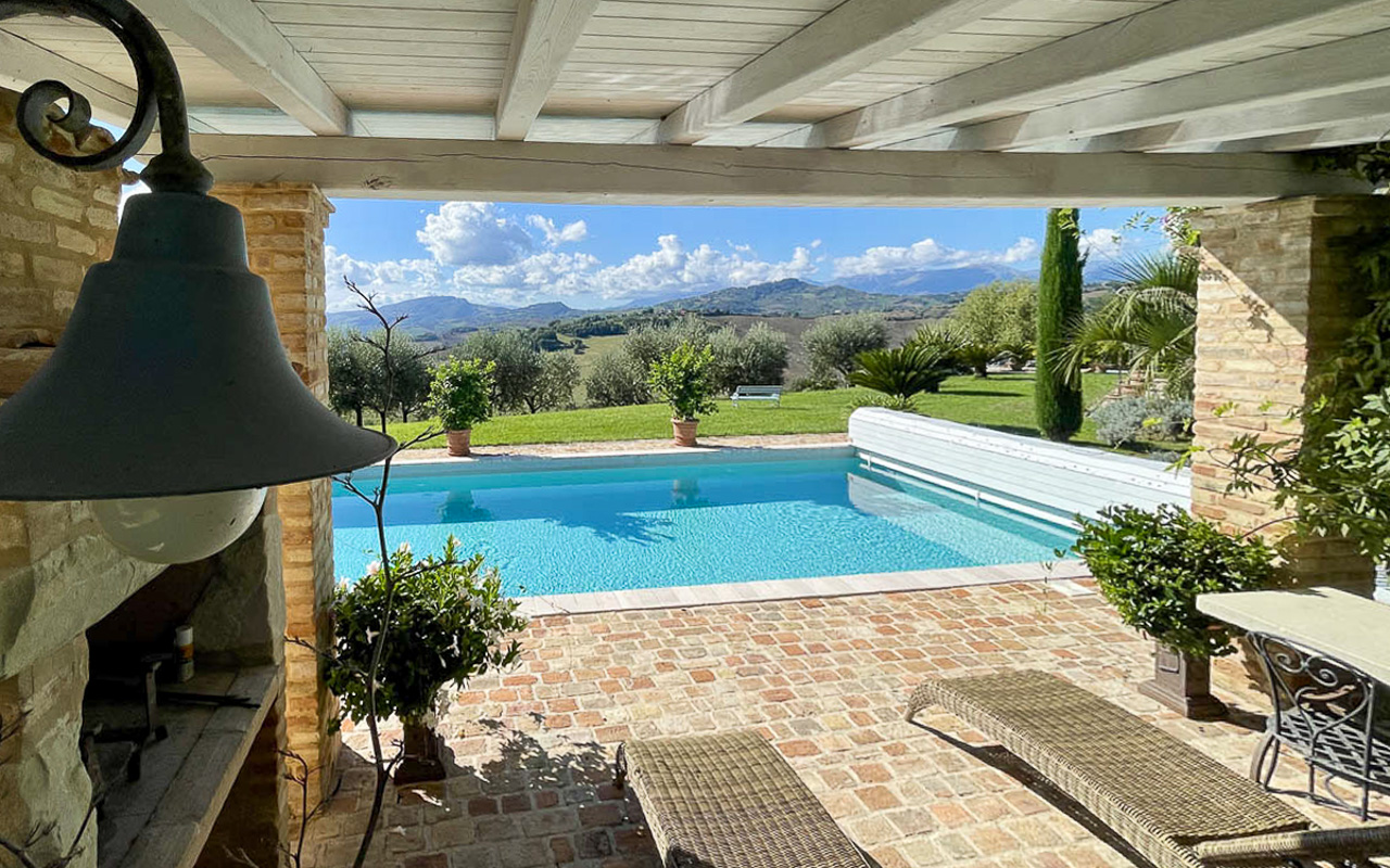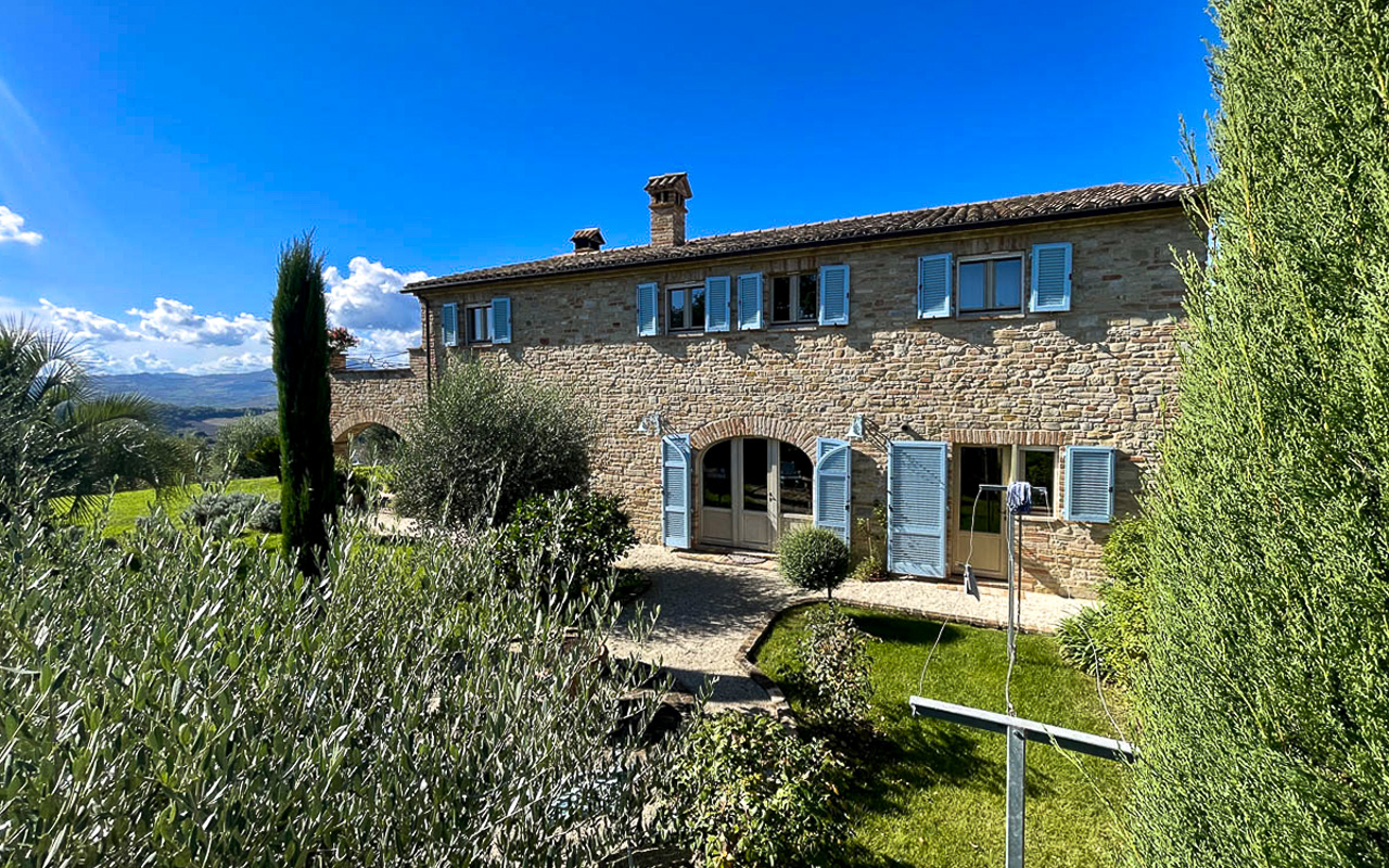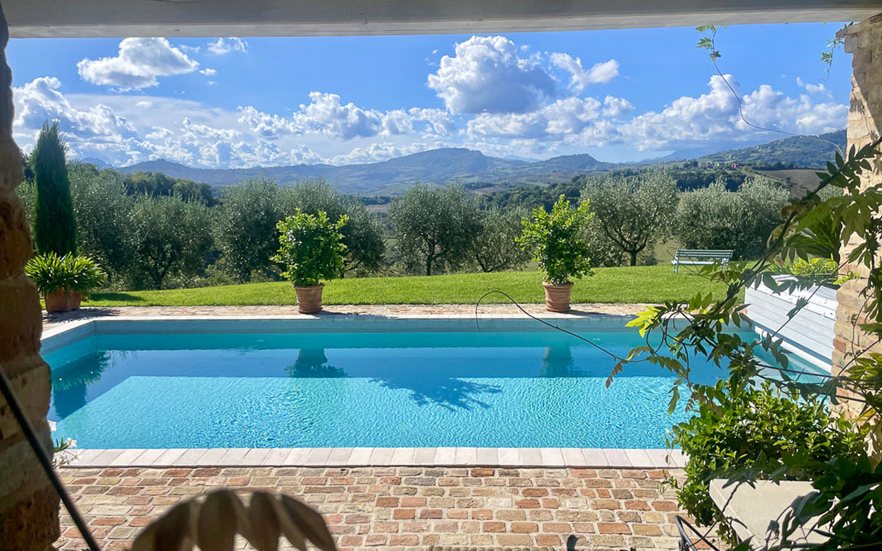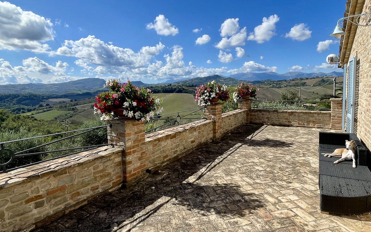 Set in a commanding position overlooking the rolling hills of the Le Marche countryside, Villa Il Poggio is a beautifully rebuilt stone farmhouse that perfectly blends rustic charm with modern elegance. With its southern exposure, the property enjoys spectacular views that stretch across the surrounding fields to the majestic Sibillini Mountains, a landscape that gifts breathtaking sunrises and sunsets every day.