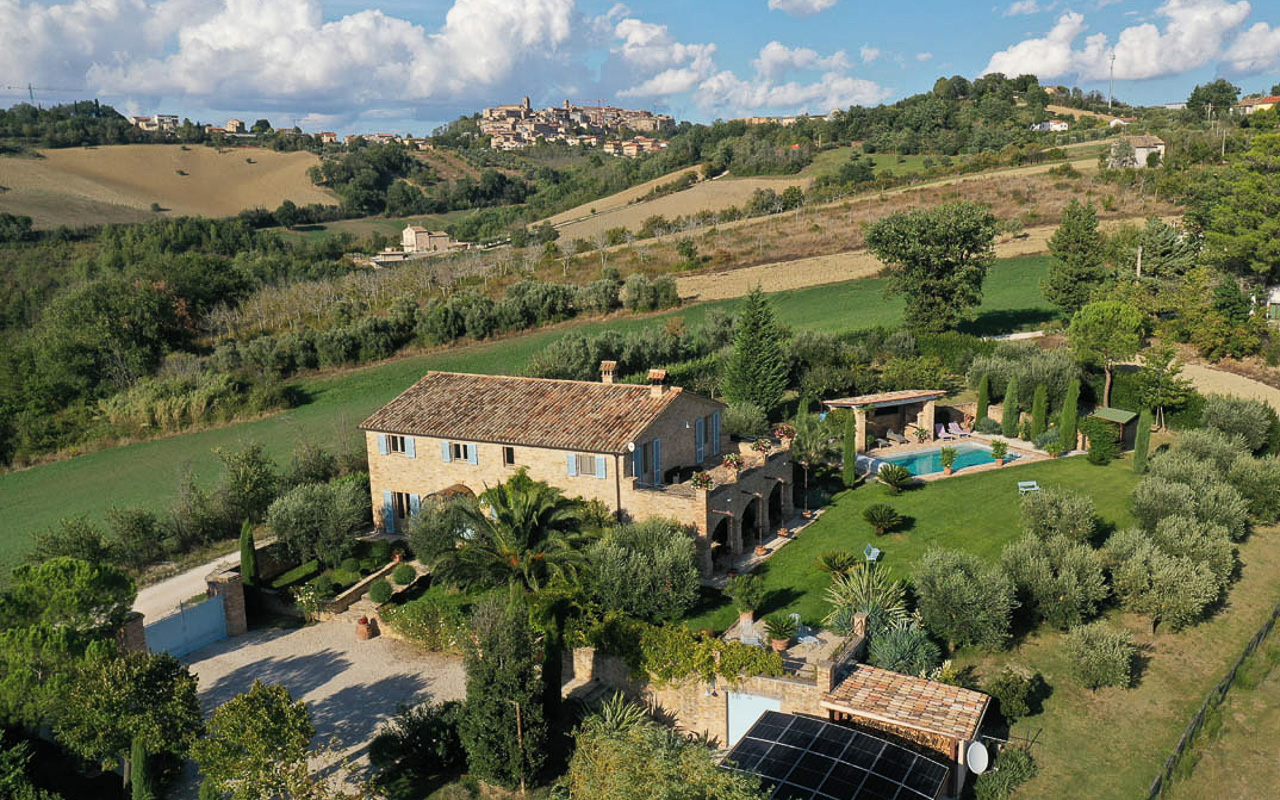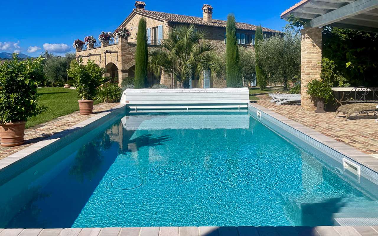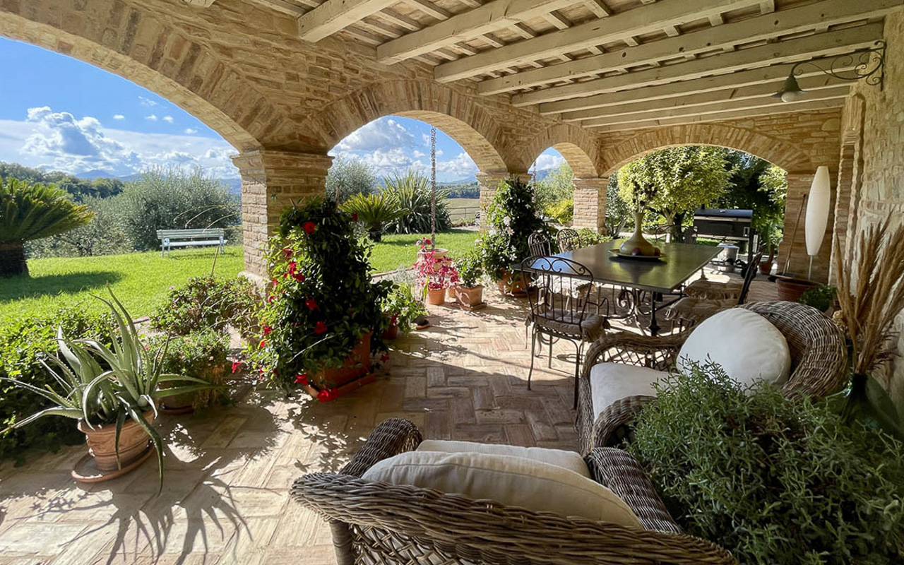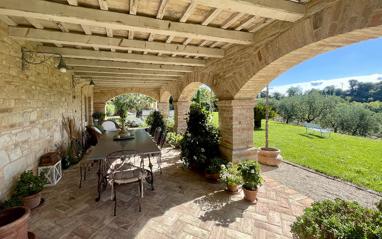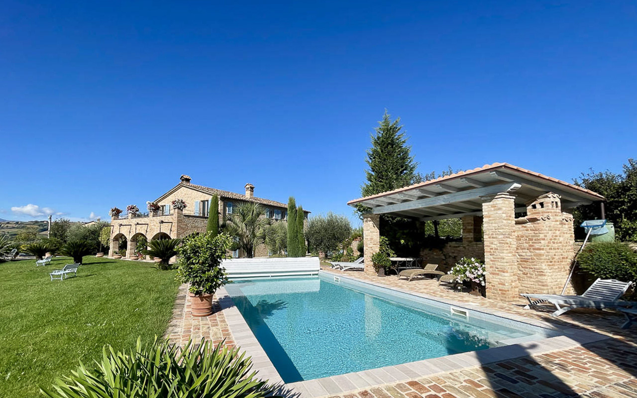 Set in a commanding position overlooking the rolling hills of the Le Marche countryside, Villa Il Poggio is a beautifully rebuilt stone farmhouse that perfectly blends rustic charm with modern elegance. With its southern exposure, the property enjoys spectacular views that stretch across the surrounding fields to the majestic Sibillini Mountains, a landscape that gifts breathtaking sunrises and sunsets every day.
