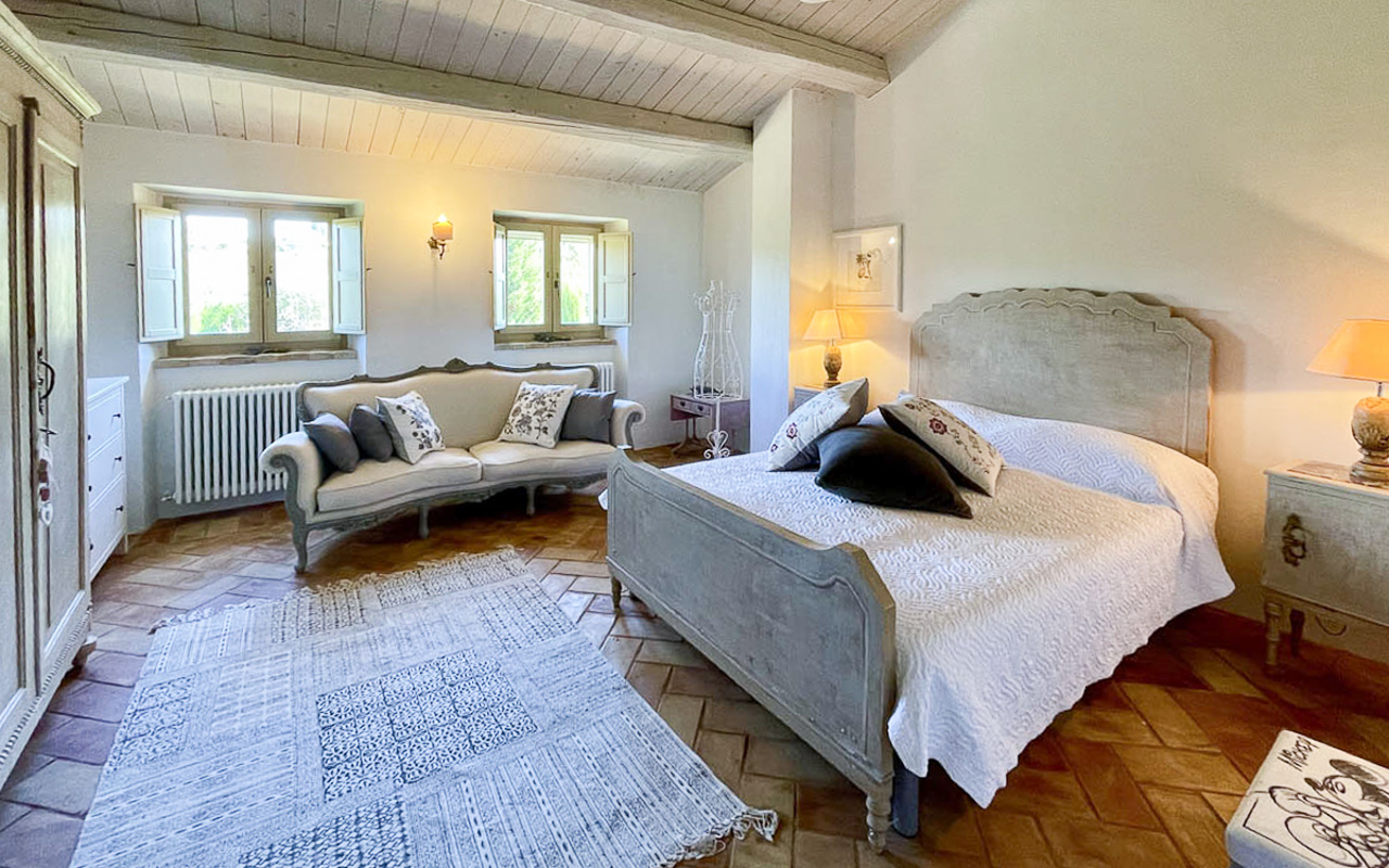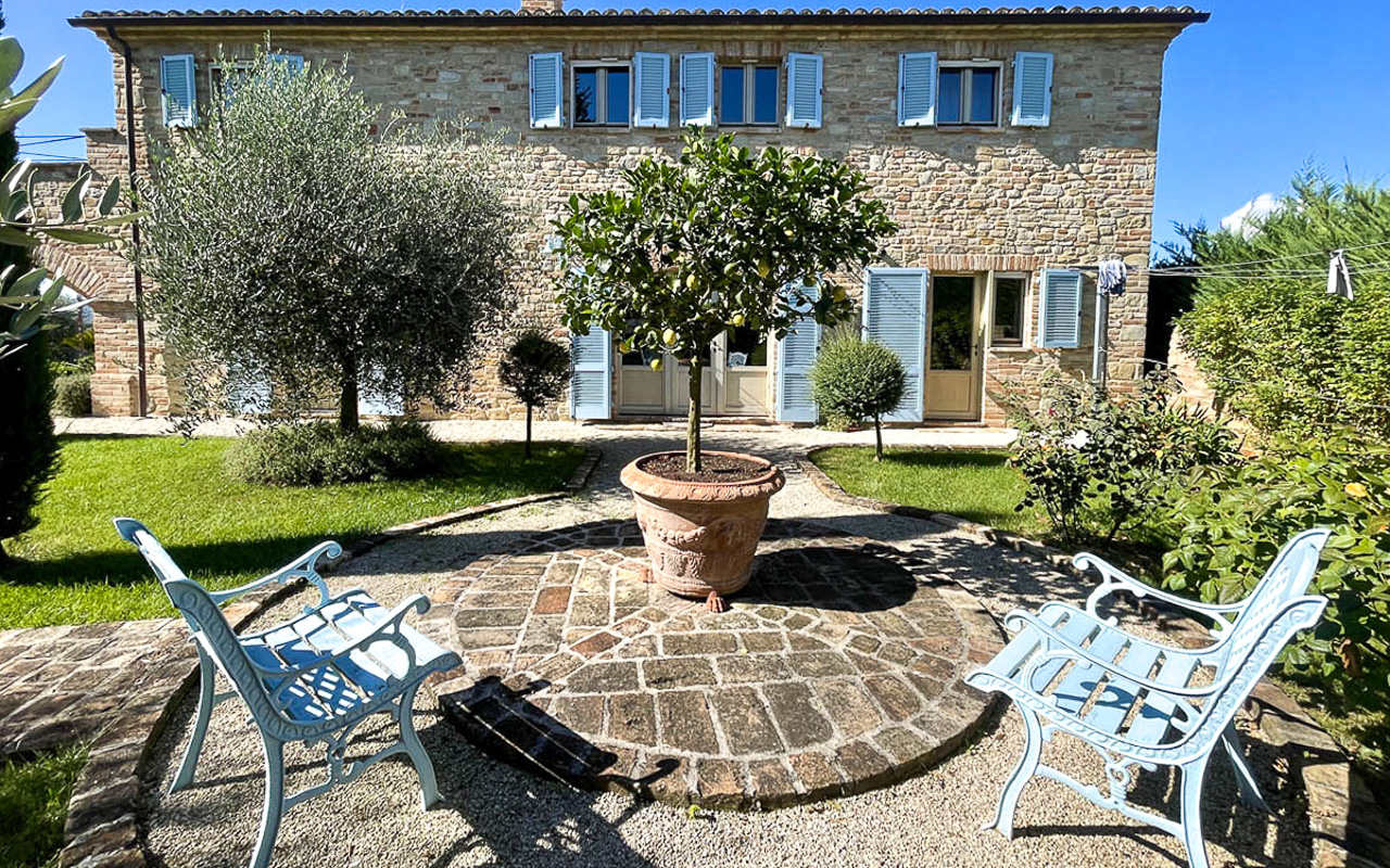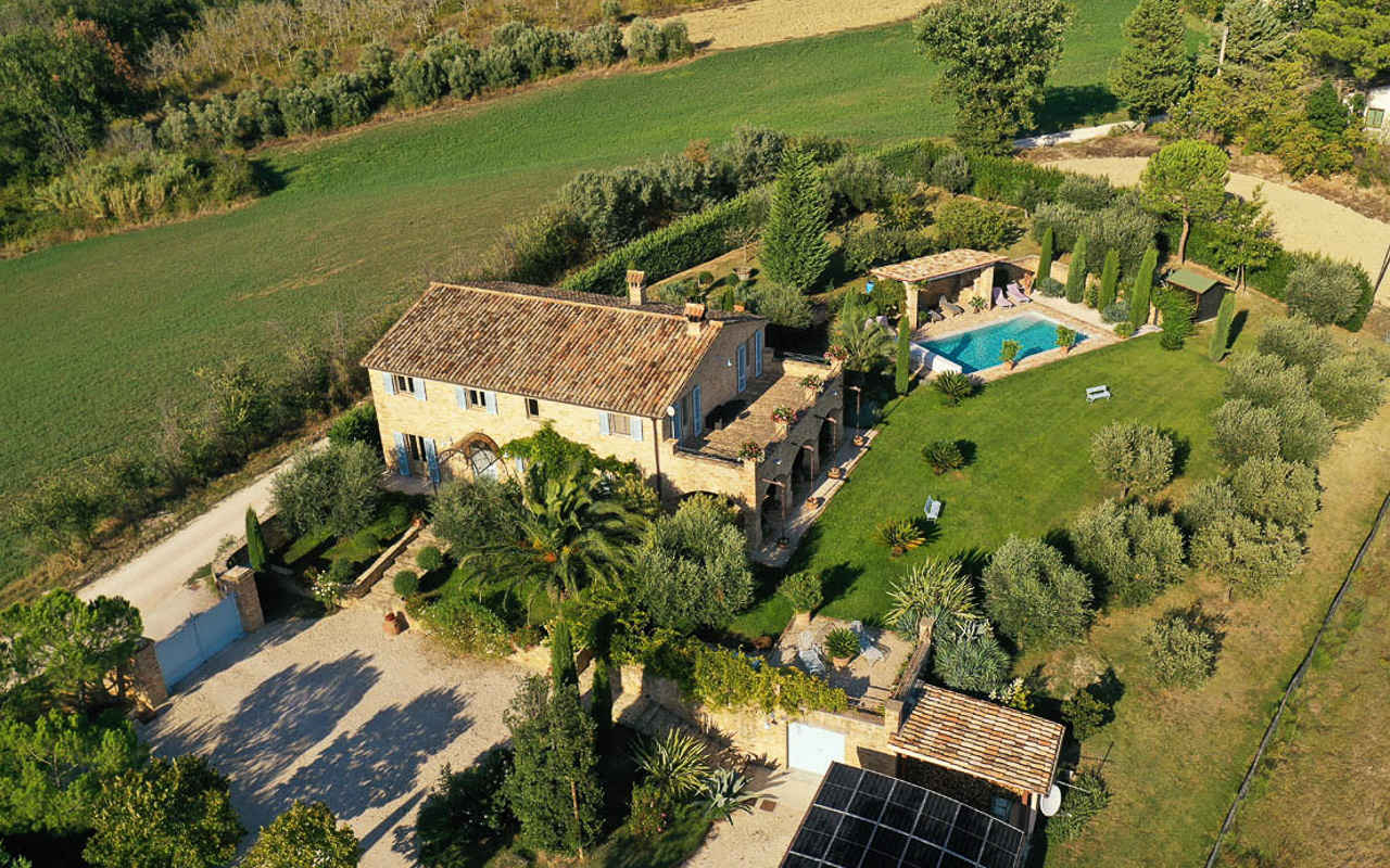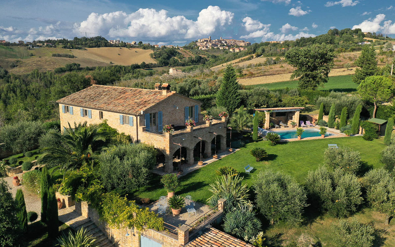 Set in a commanding position overlooking the rolling hills of the Le Marche countryside, Villa Il Poggio is a beautifully rebuilt stone farmhouse that perfectly blends rustic charm with modern elegance. With its southern exposure, the property enjoys spectacular views that stretch across the surrounding fields to the majestic Sibillini Mountains, a landscape that gifts breathtaking sunrises and sunsets every day.
