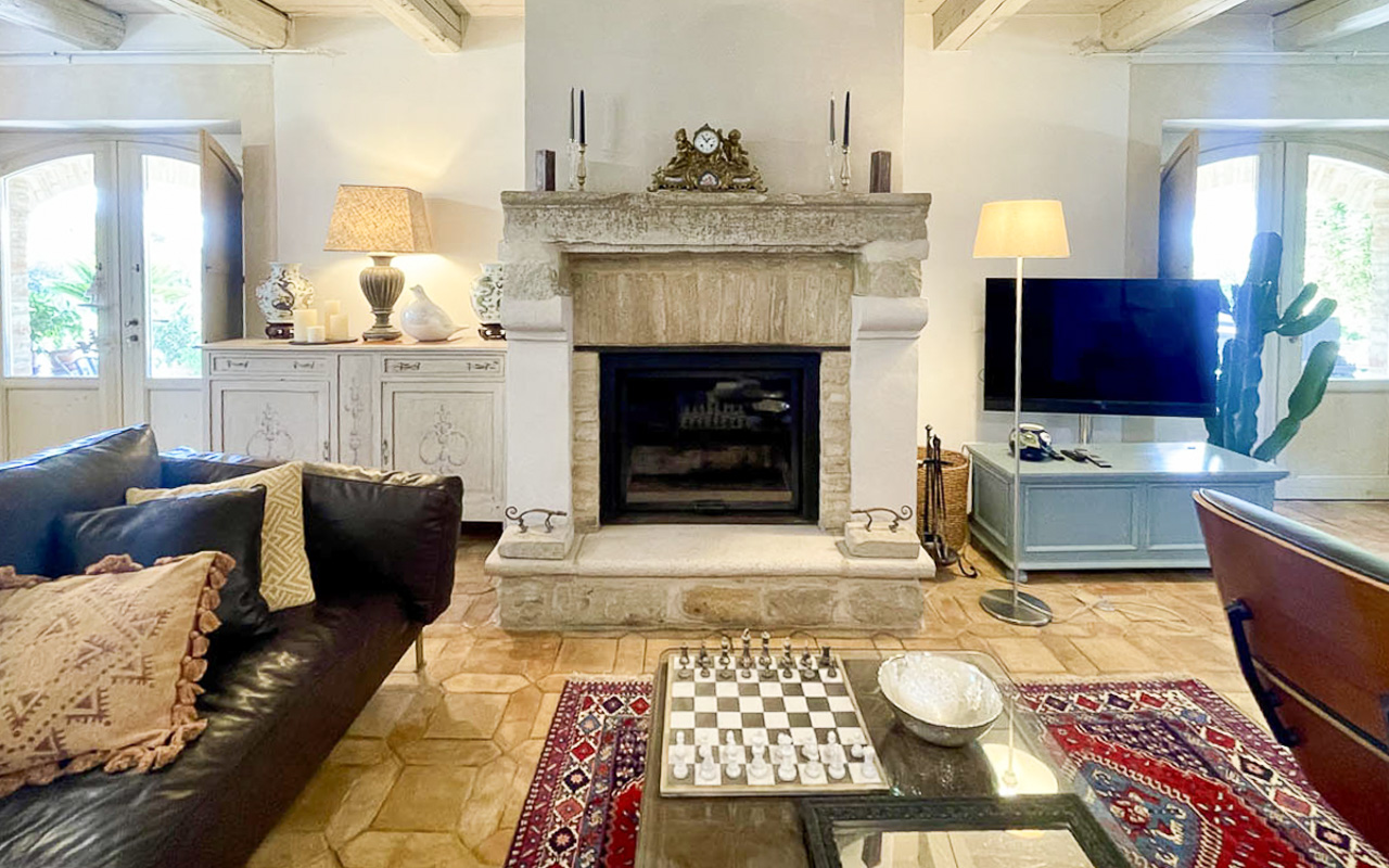 At the heart of the property lies a 5 x 10 m swimming pool, bordered by Trani stone and a terracotta solarium. A charming portico with an outdoor fireplace offers the perfect setting for dining, lounging, or simply enjoying the peaceful atmosphere. The pool is equipped with an electric cover for summer and winter use and a heat pump for year-round enjoyment.