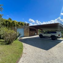 Accessed by a convenient municipal road, the estate is fully fenced and features a landscaped garden of approximately 3,000 sqm, adorned with cypress trees, fruit trees, olive trees, and Mediterranean evergreens. A gated entrance opens onto the parking area and carport, surrounded by nature and complete privacy.
