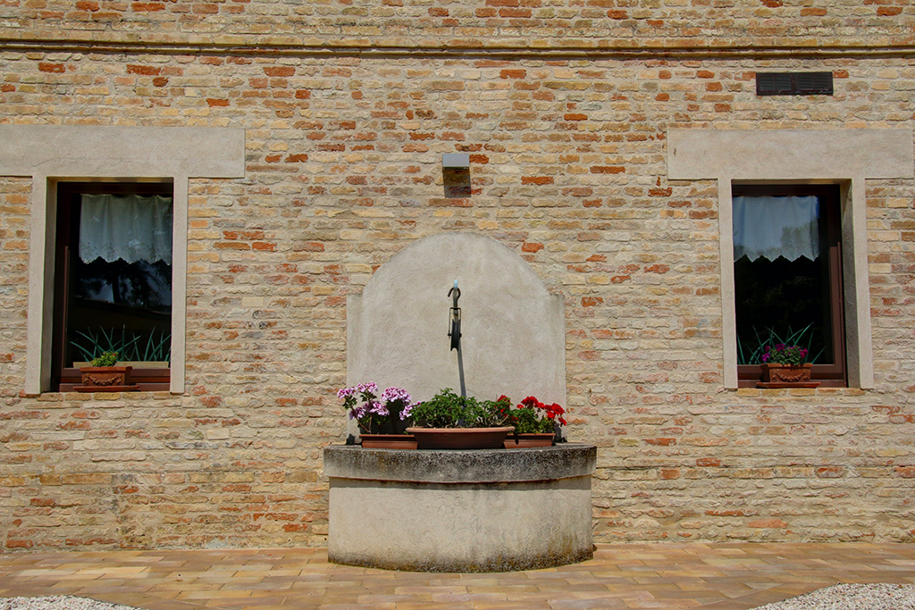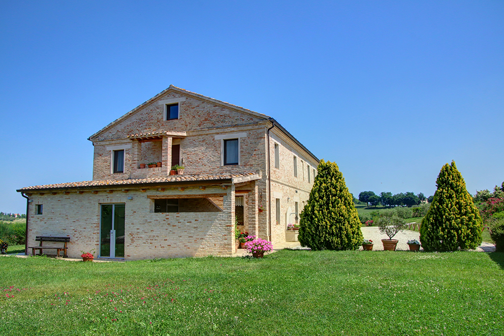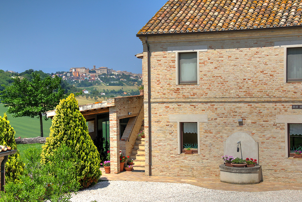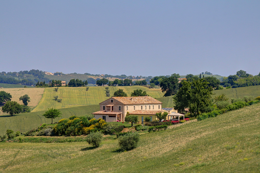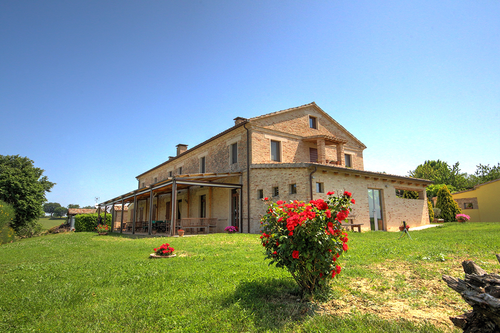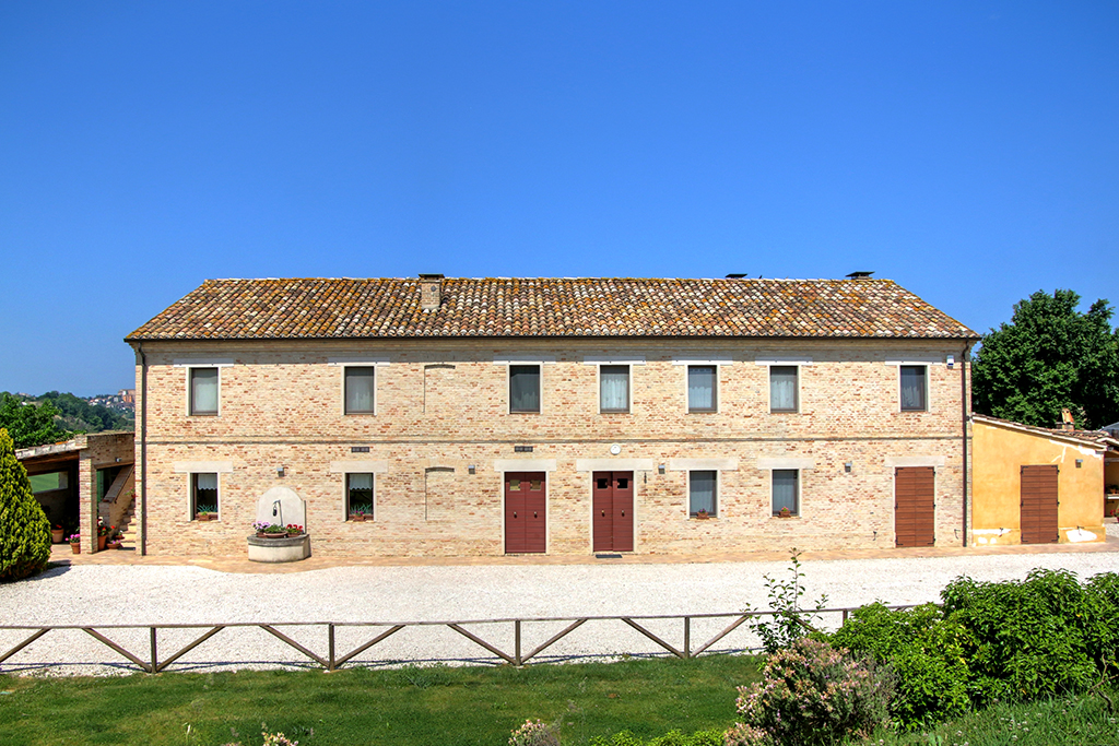 Cette belle maison de campagne se trouve près d'Ostra, dans la province d'Ancône, dans la région des Marches. Il s'agit d'une ferme typique des Marches datant du début du siècle dernier, qui a été majestueusement rénovée et transformée en établissement d'hébergement. Le paysage vallonné environnant se caractérise par de beaux champs agricoles, des villages médiévaux parfaitement conservés, des routes de campagne non goudronnées, des restaurants typiques et des bâtiments traditionnels .