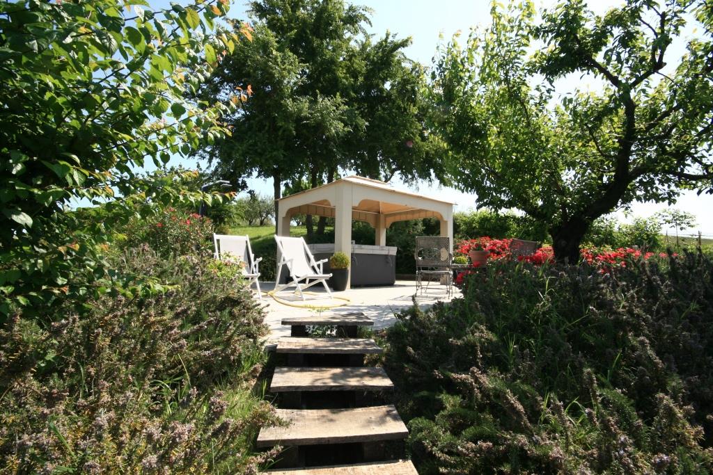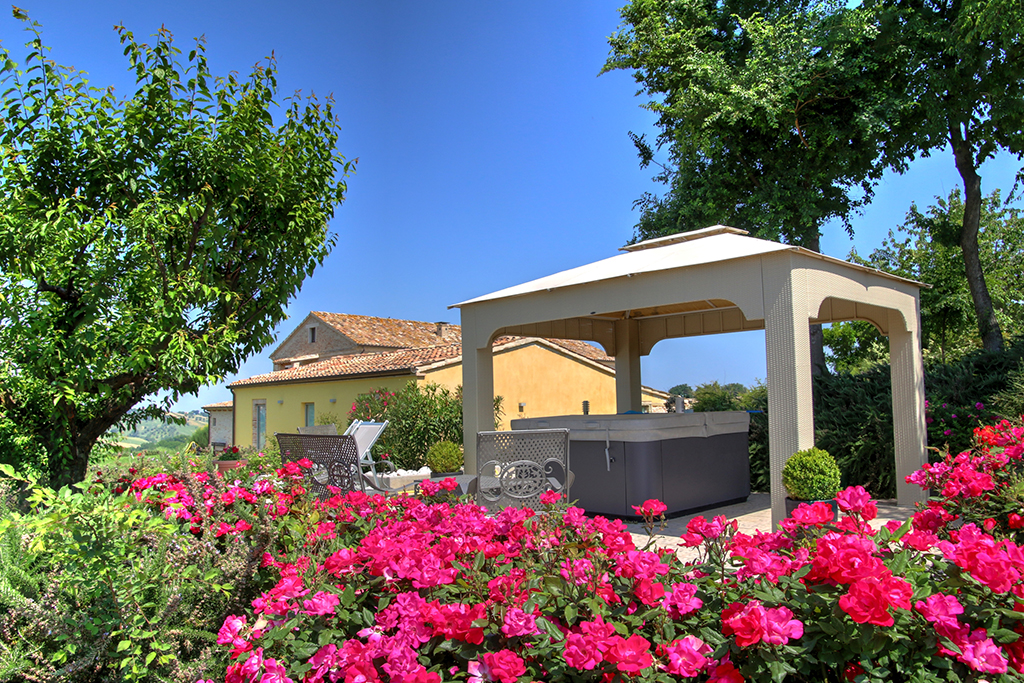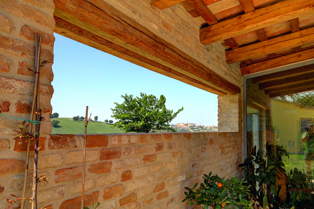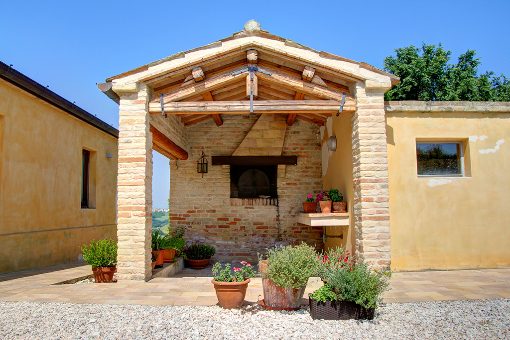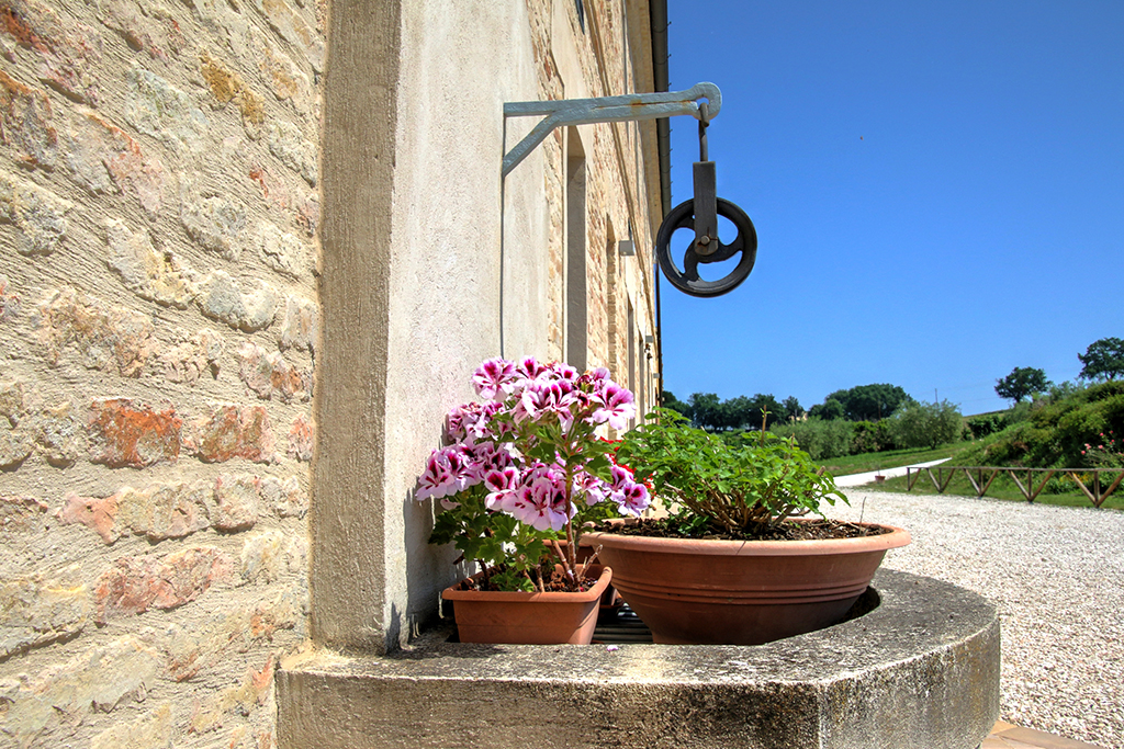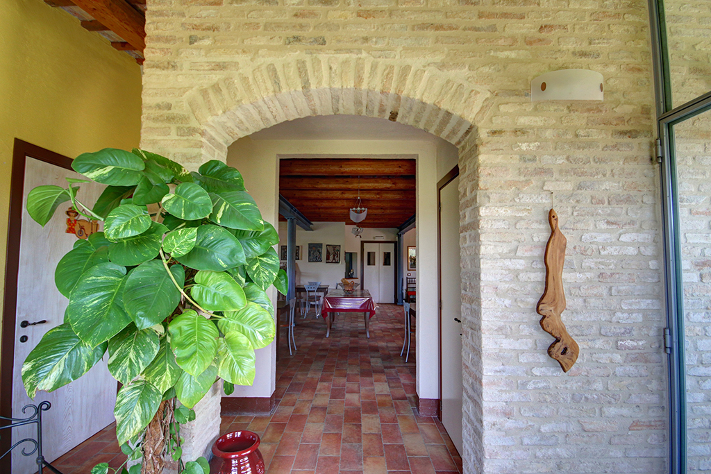 Cette belle maison de campagne se trouve près d'Ostra, dans la province d'Ancône, dans la région des Marches. Il s'agit d'une ferme typique des Marches datant du début du siècle dernier, qui a été majestueusement rénovée et transformée en établissement d'hébergement. Le paysage vallonné environnant se caractérise par de beaux champs agricoles, des villages médiévaux parfaitement conservés, des routes de campagne non goudronnées, des restaurants typiques et des bâtiments traditionnels .