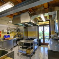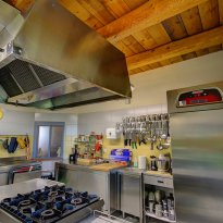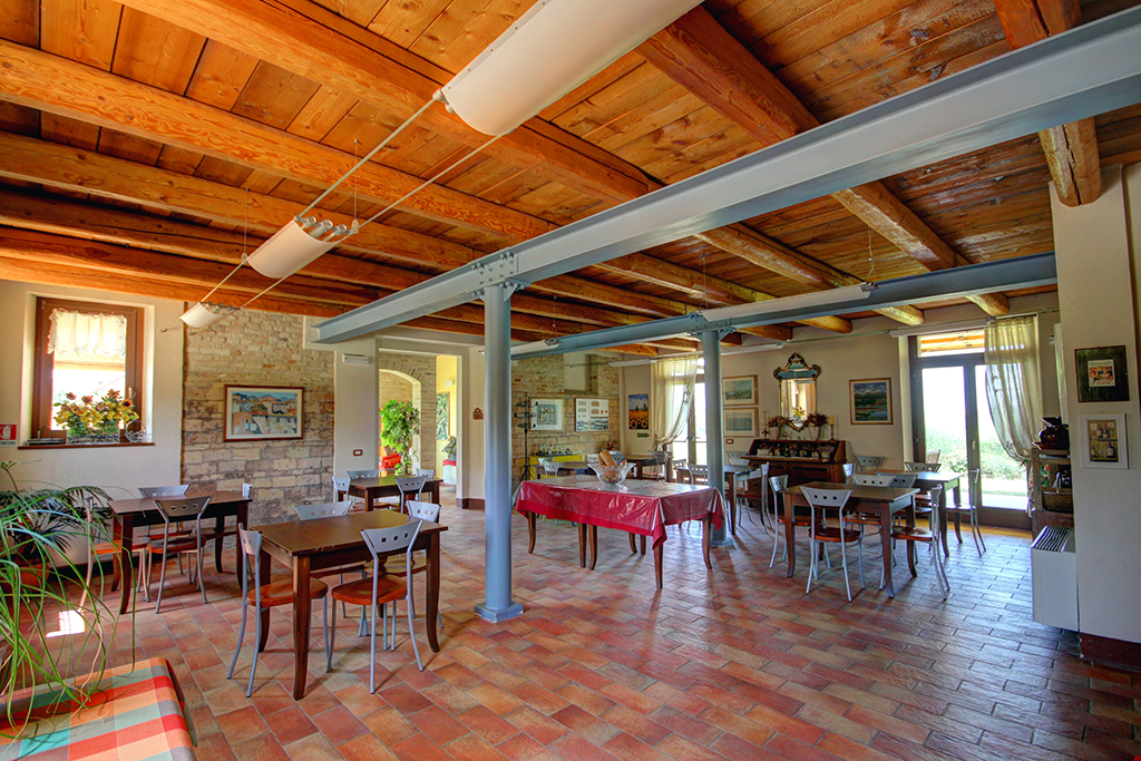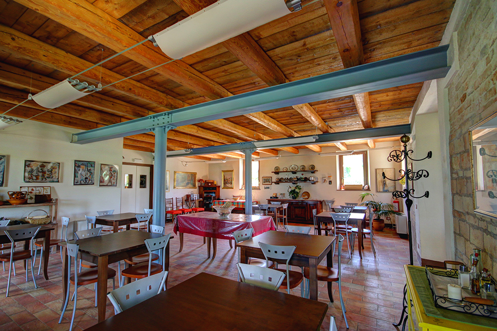 Au rez-de-chaussée se trouve l'ancienne écurie, transformée en un restaurant charmant et plein d'ambiance (environ 50 places assises), d'où l'on a une vue magnifique sur la campagne environnante et le village d'Ostra tout proche.