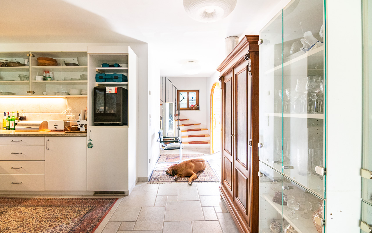 Outside, there is a solidly built carport with three parking spaces and a three-room workshop underneath. A swimming pool is in advanced planning stages. Additionally, the property includes a municipally registered ruin of approximately 300 sqm, for which reconstruction is permitted.
