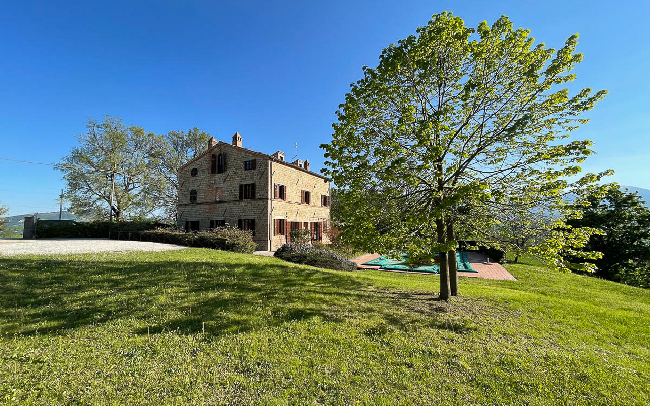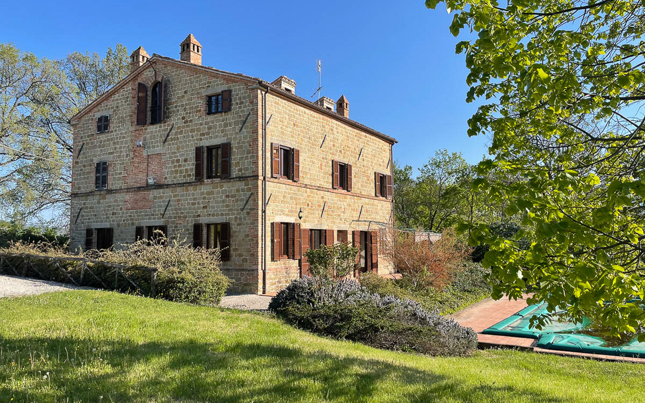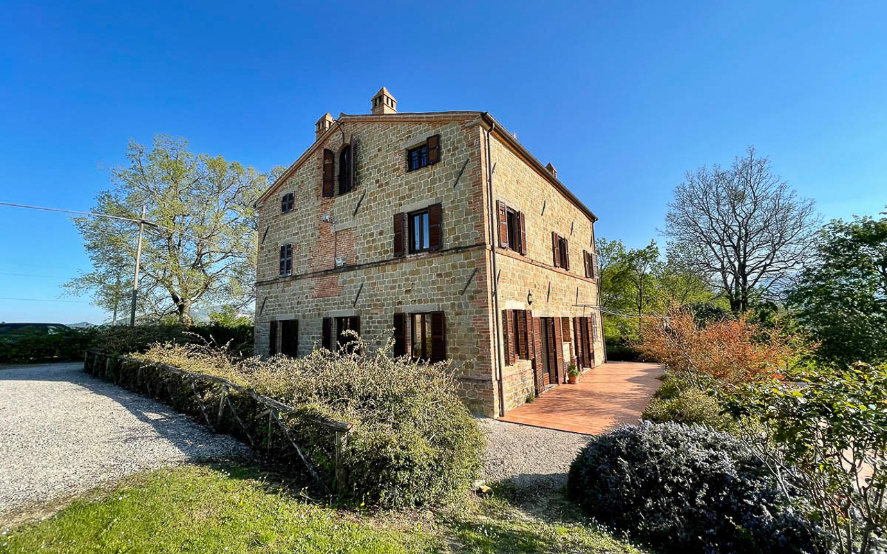 Set in an elevated, peaceful position with lovely views over the rolling hills of Macerata, this exceptional property combines authentic rustic character with all modern comforts — offering a true sanctuary in nature while remaining well connected to local amenities and transport links.