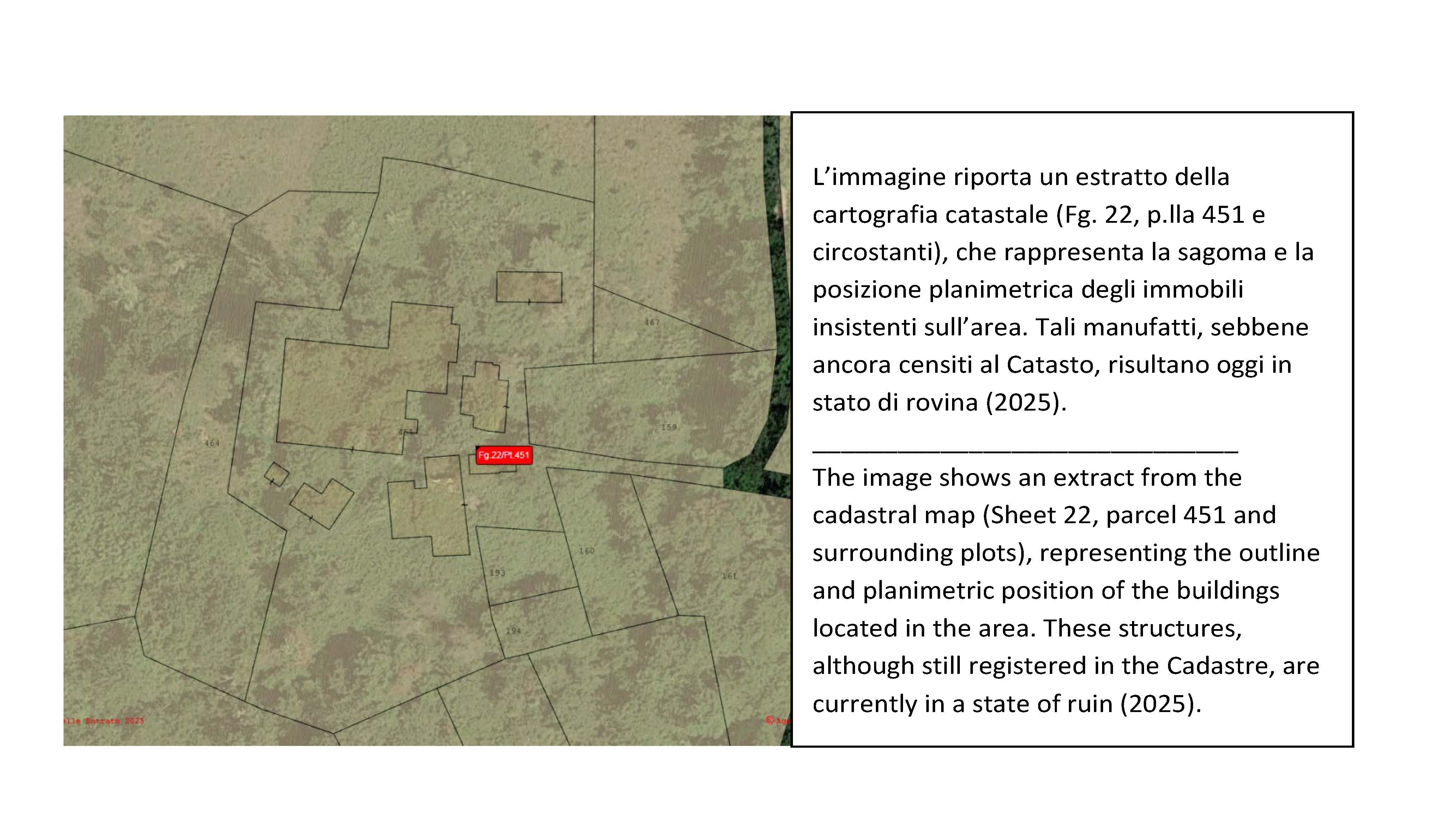 A certified technical report prepared by a qualified geometra confirms that the full existing volume and floor area can be rebuilt or restored. The report also verifies that a swimming pool may be constructed, further enhancing the estate’s development potential.
