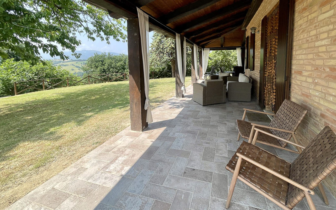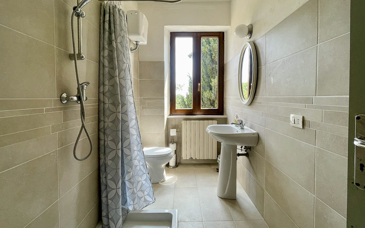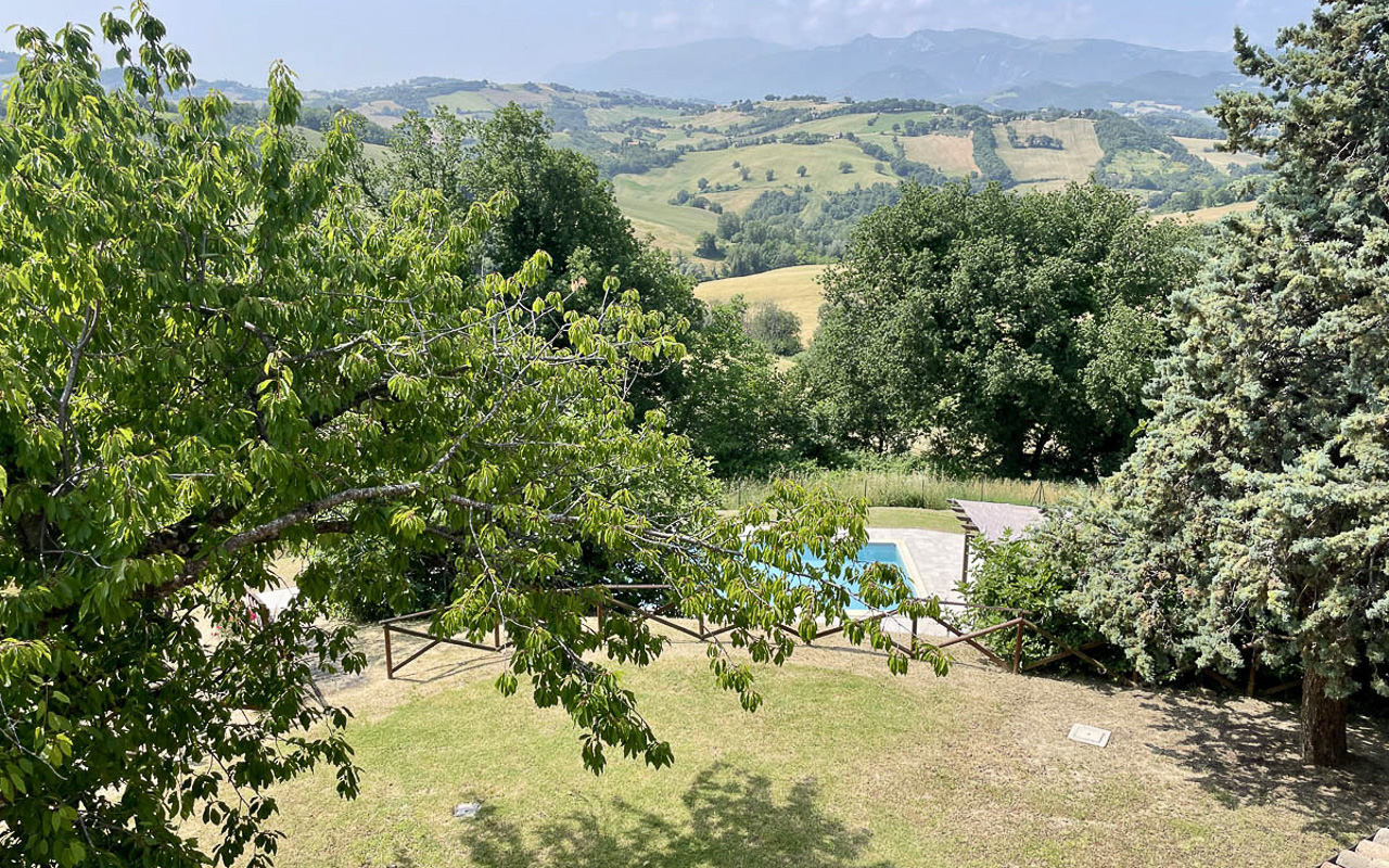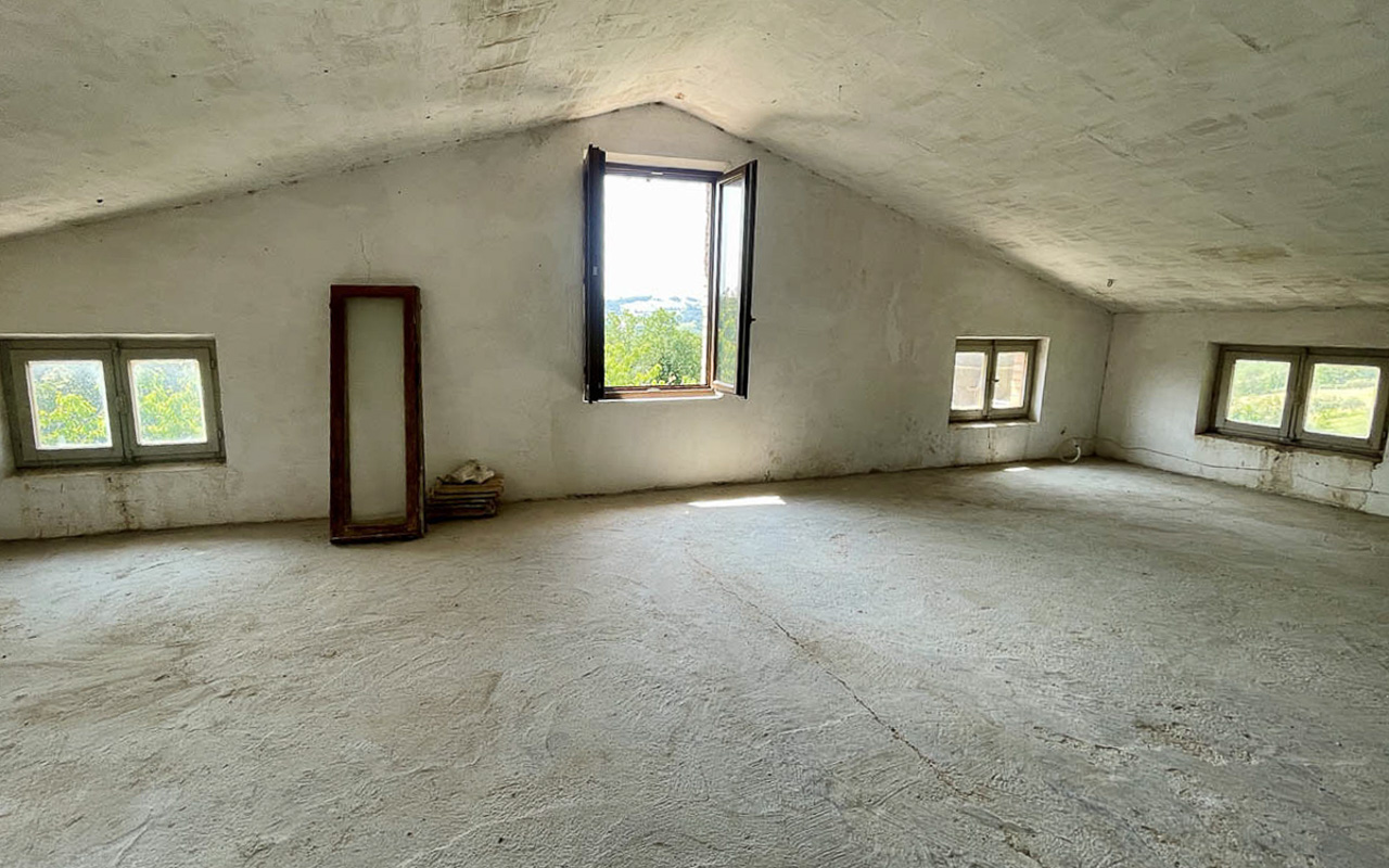 The property enjoys a dominant, sunny and panoramic position, with open views over the rolling countryside and the Sibillini Mountains. Access is easy via a well-maintained municipal road.