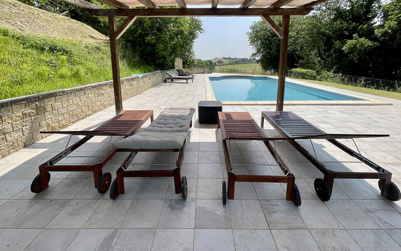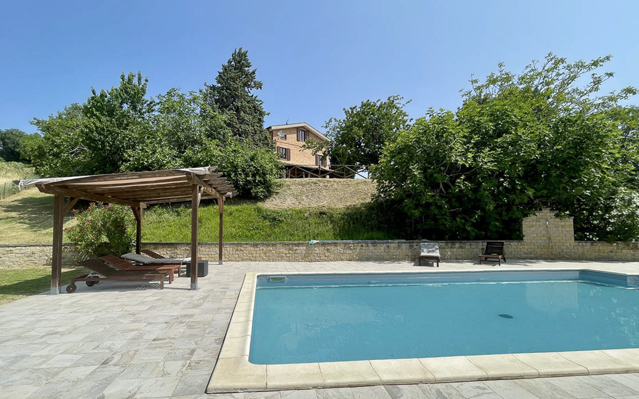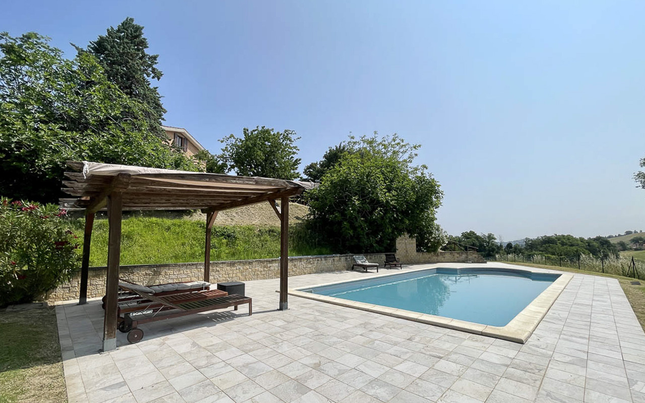 In a private yet non-isolated location, just five minutes by car from San Ginesio and approximately fifteen minutes from Tolentino, in the province of Macerata, we offer for sale a beautifully renovated villa with three accessories, set within a fully fenced garden of approx. 3,680 sqm and featuring a swimming pool measuring 5 x 10 metres.
