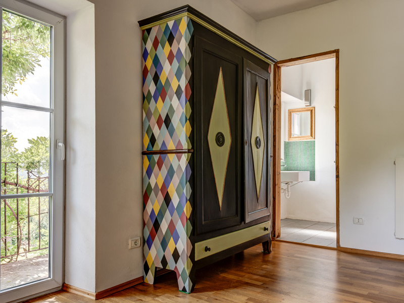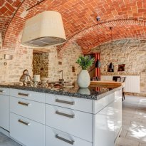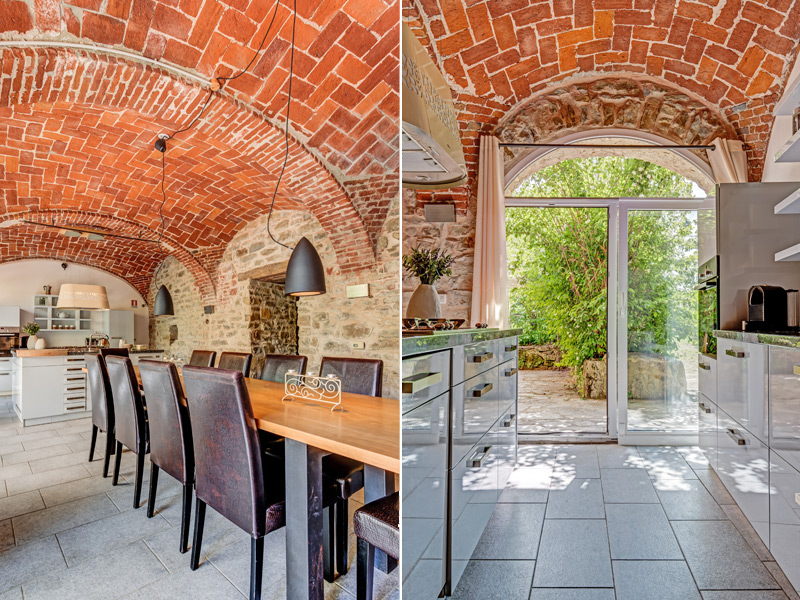 C'est dans ce cadre intemporel que se trouve la Casa Carlin, une habitation qui a conservé le charme original des maisons de Langa. Les voûtes en briques massives, les poutres en bois apparentes et les murs en pierre créent des espaces chaleureux et évocateurs où l'élégance de la tradition se mêle au confort moderne. La grande cuisine et le salon du rez-de-chaussée constituent le cœur de la maison. Au premier étage se trouvent trois chambres spacieuses, deux salles de bains, un balcon et une terrasse ; au deuxième étage, deux autres chambres, deux salles de bains, un balcon et une terrasse couverte romantique d'où l'on peut profiter de la campagne environnante.