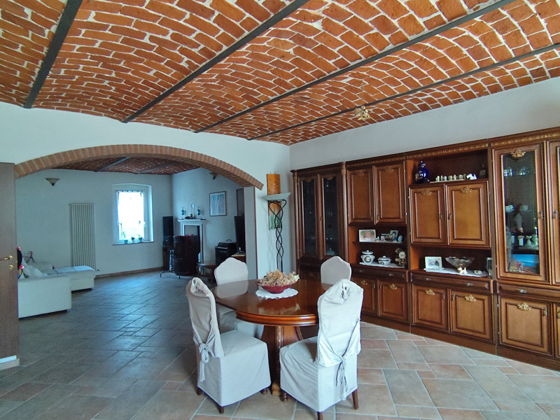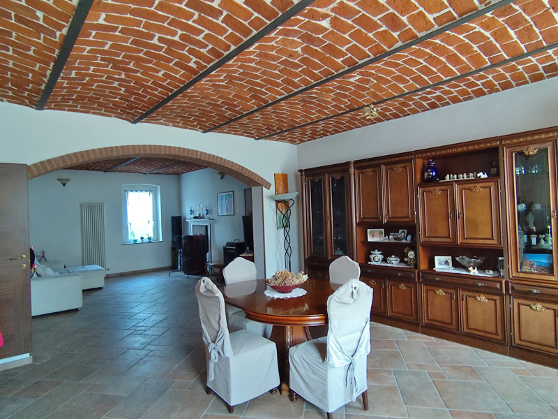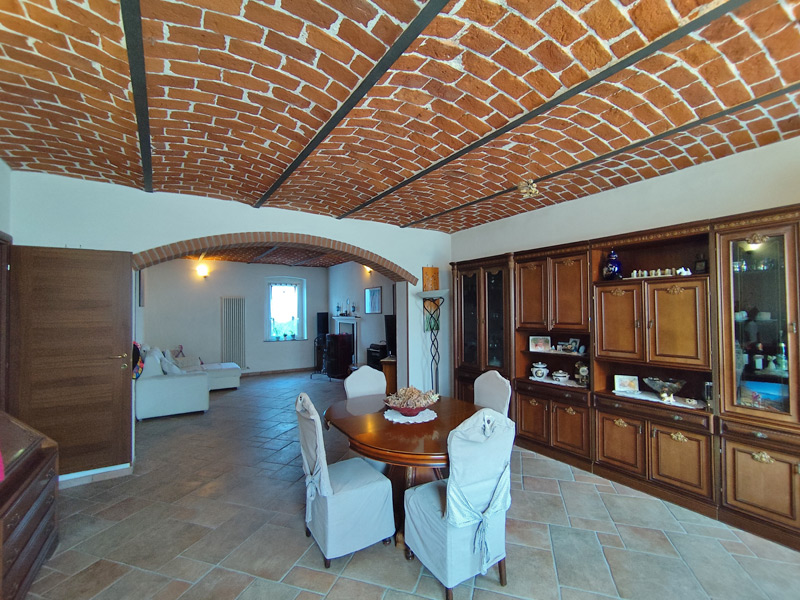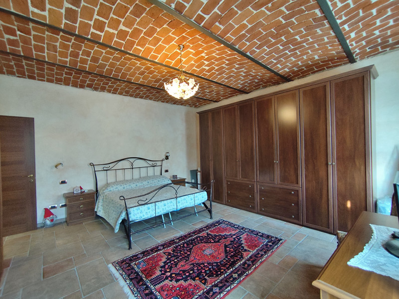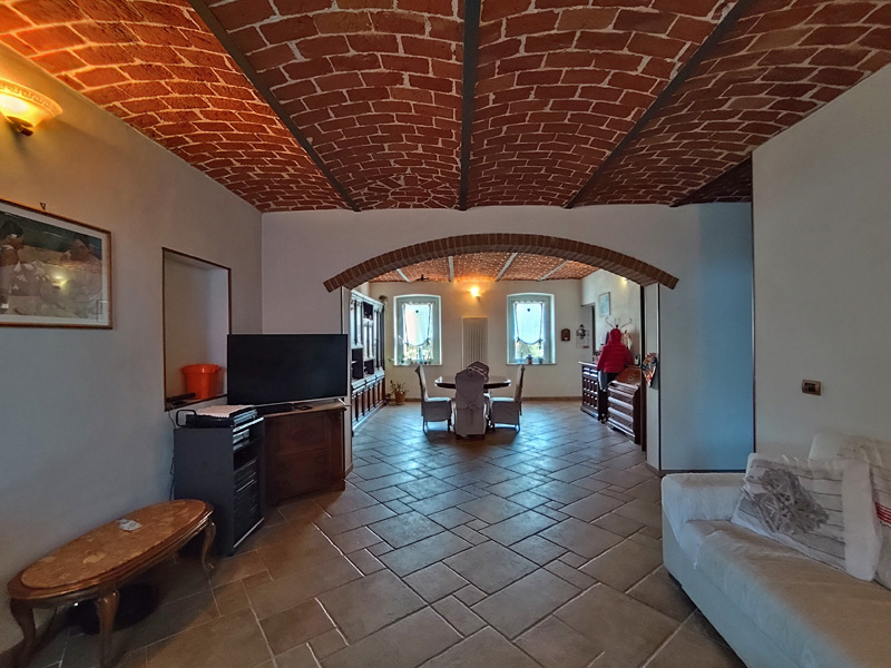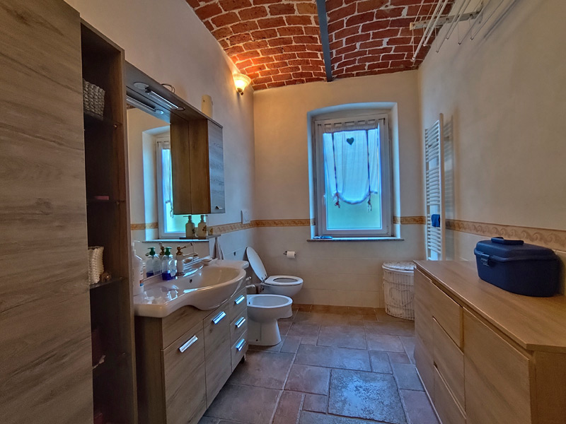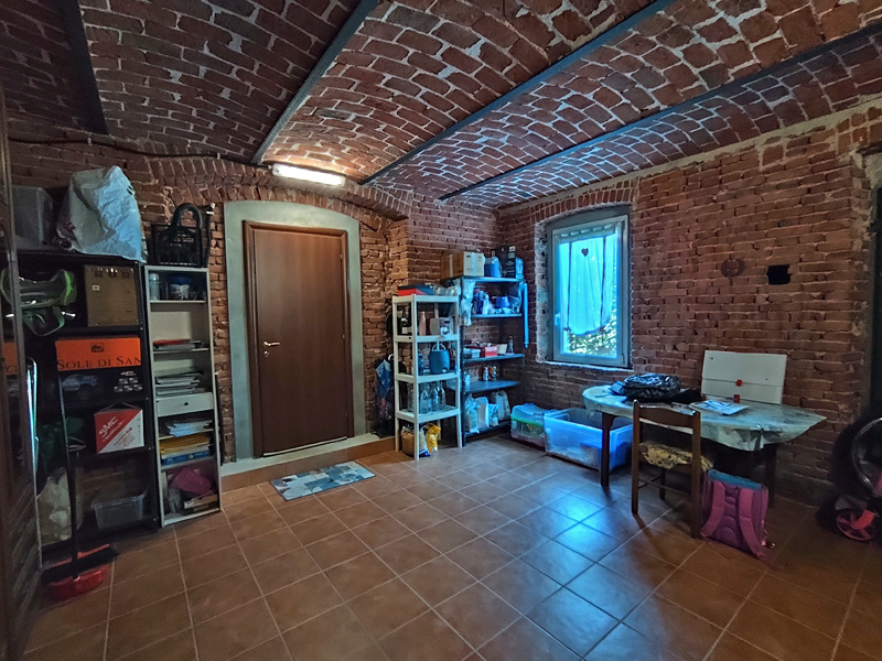 La première unité accueille avec des pièces spacieuses et soignées : au rez-de-chaussée, une grande et accueillante cuisine mène au double séjour, qui est divisé en une salle à manger et un espace salon, tandis qu'une cave pratique et sèche est directement reliée au garage, ce qui rend la maison très pratique. Les détails architecturaux, tels que les magnifiques voûtes en briques sablées, ont été restaurés pour retrouver leur beauté d'origine et contribuent à créer une atmosphère chaleureuse et accueillante. Un escalier en pierre de Luserna mène à l'étage supérieur, où les chambres commencent par une grande salle de bains avec baignoire et douche, suivie de la chambre principale et d'une deuxième chambre, toutes deux avec vue sur les environs paisibles.