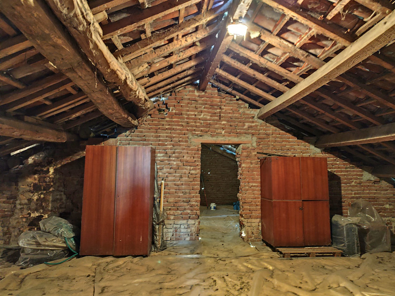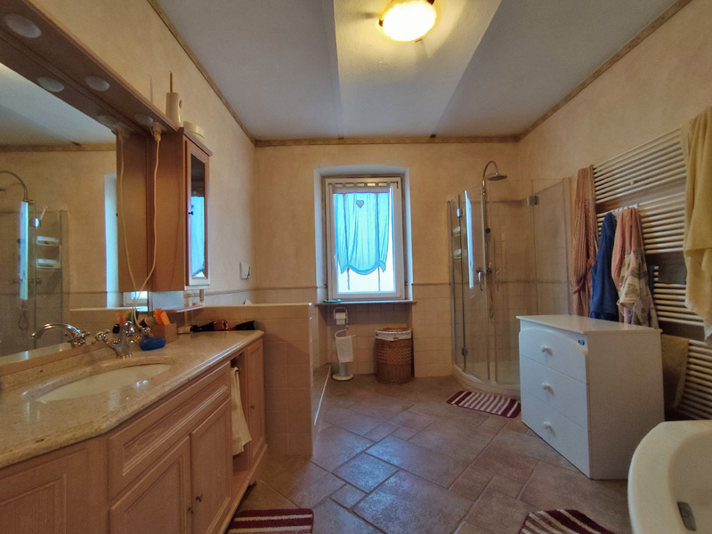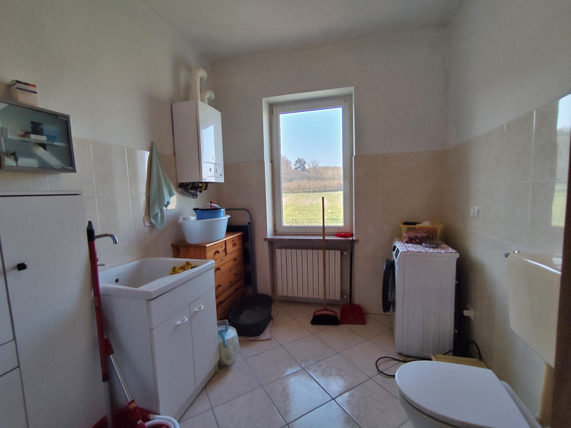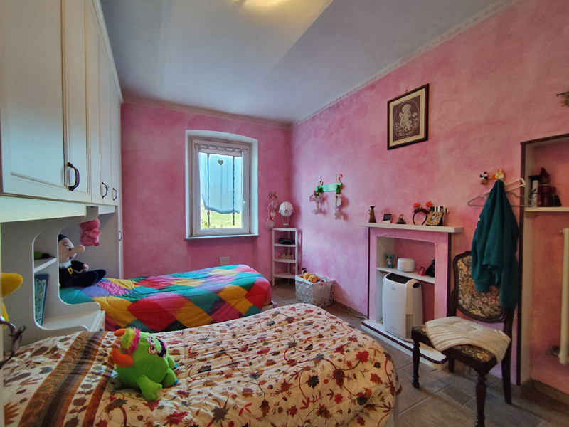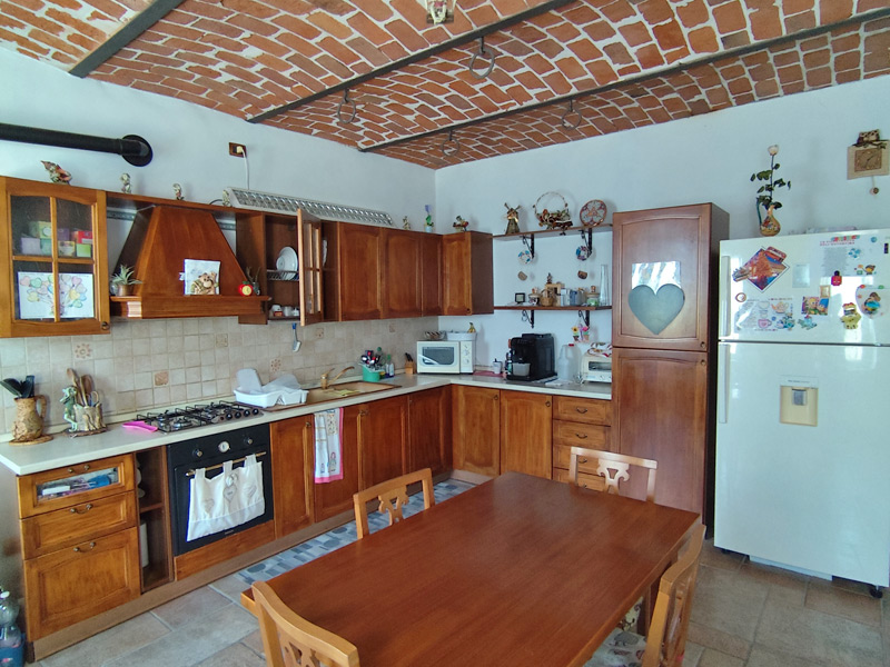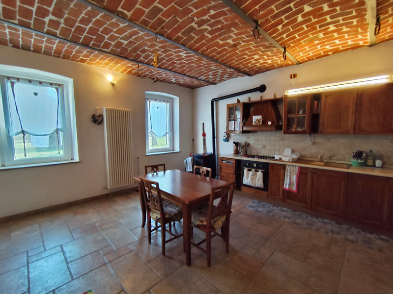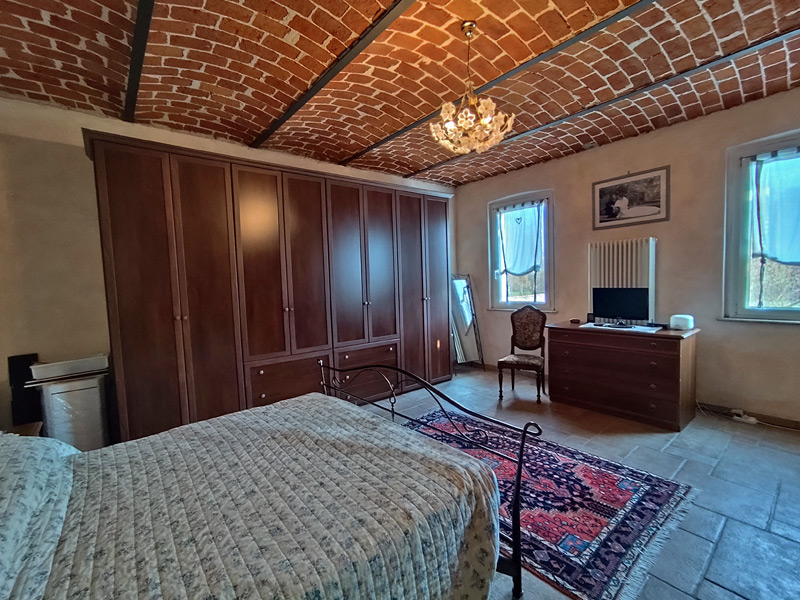 La première unité accueille avec des pièces spacieuses et soignées : au rez-de-chaussée, une grande et accueillante cuisine mène au double séjour, qui est divisé en une salle à manger et un espace salon, tandis qu'une cave pratique et sèche est directement reliée au garage, ce qui rend la maison très pratique. Les détails architecturaux, tels que les magnifiques voûtes en briques sablées, ont été restaurés pour retrouver leur beauté d'origine et contribuent à créer une atmosphère chaleureuse et accueillante. Un escalier en pierre de Luserna mène à l'étage supérieur, où les chambres commencent par une grande salle de bains avec baignoire et douche, suivie de la chambre principale et d'une deuxième chambre, toutes deux avec vue sur les environs paisibles.