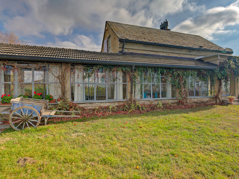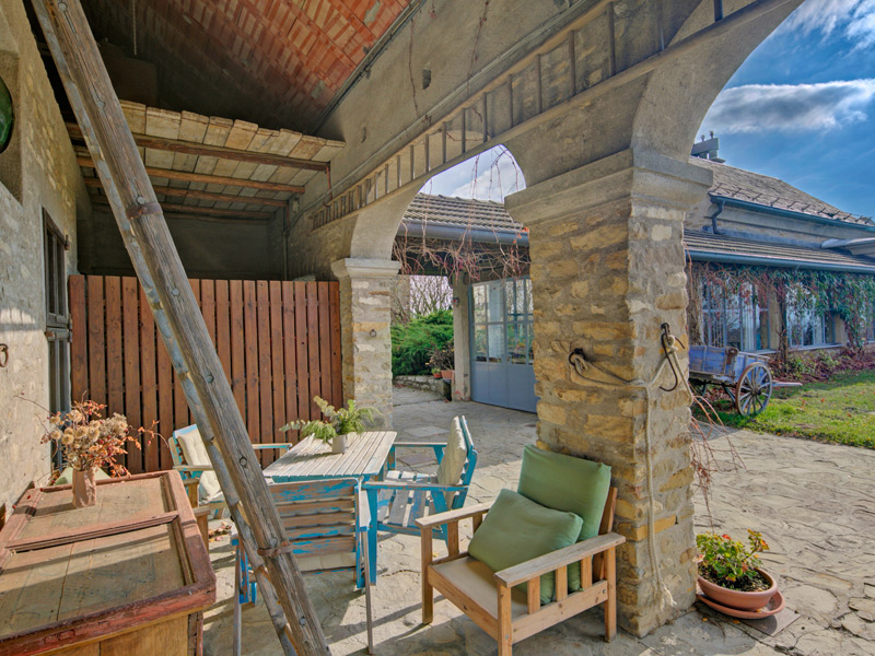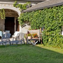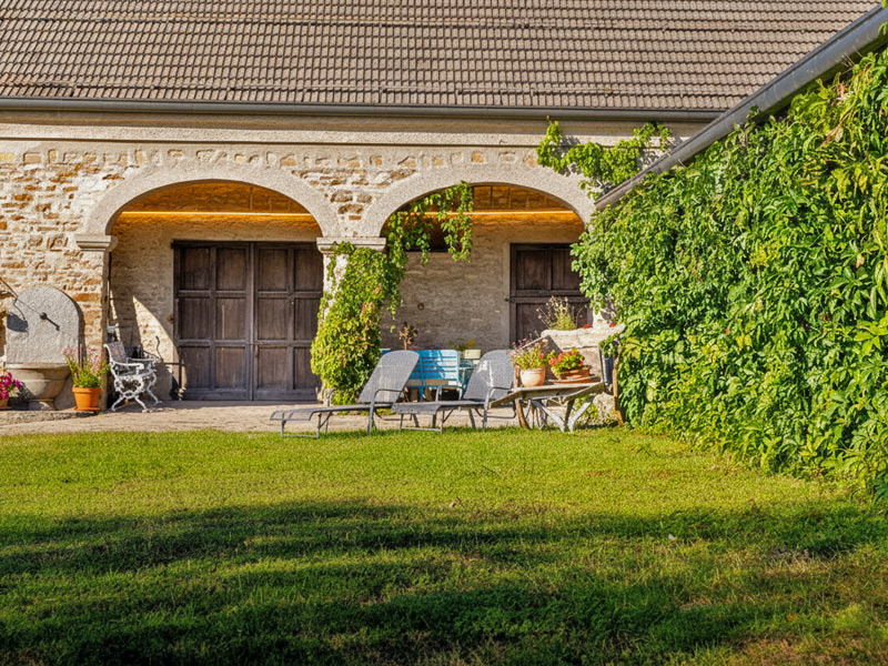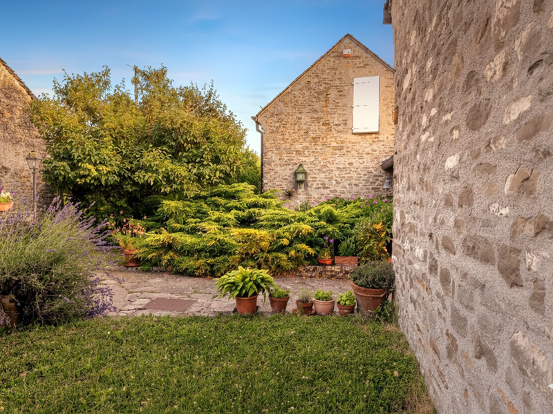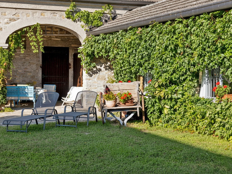 La pierre naturelle, protagoniste absolu de la façade, réchauffée par le soleil du matin et douce au coucher du soleil, raconte une histoire de solidité, d'intimité et d'authenticité. Chaque détail rappelle une maison faite pour vivre lentement et profiter du rythme simple de la terre.