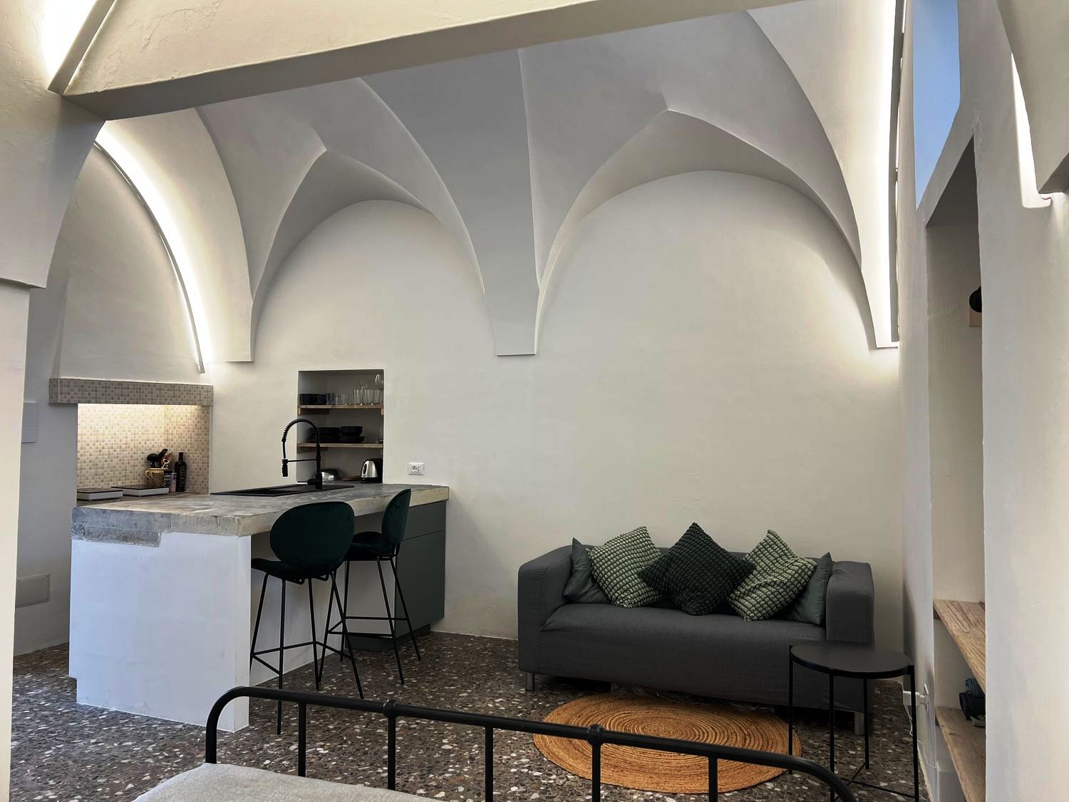 Ceglie Messapica – Ce magnifique studio en mezzanine, entièrement rénové, se situe dans une rue typique du XIXe siècle, encore pavée de pierres chianches traditionnelles, où le blanc immaculé domine.