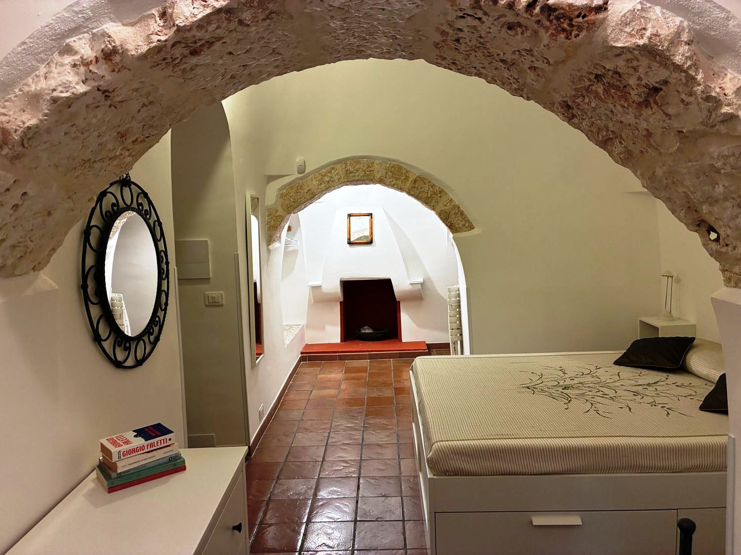 Le trullo, riche en charme et en tradition, comprend plusieurs cônes avec des alcôves caractéristiques, un espace de vie avec cheminée, une salle de bain complète et un dégagement. Il est équipé de la climatisation et d’installations récemment rénovées.