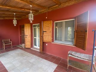 Actuellement, l'espace extérieur dispose de plusieurs terrasses, d'un barbecue et d'un four à pizza et de deux places de parking, avec de la place pour une deuxième entrée et un parking supplémentaire.