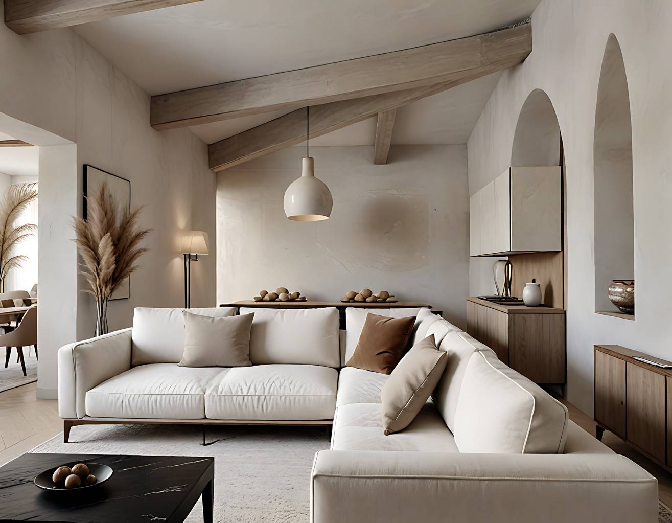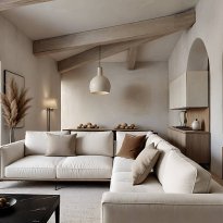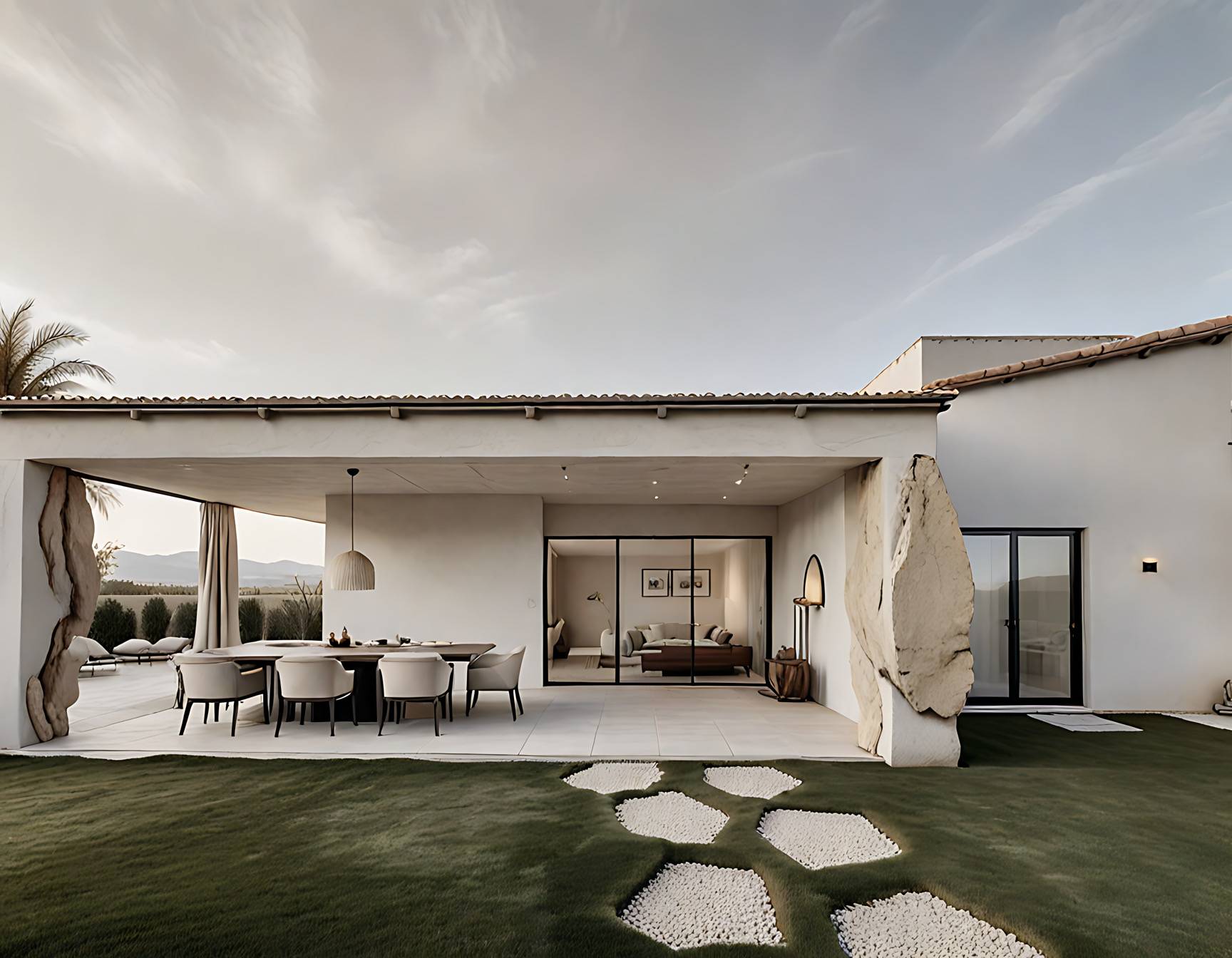 À l'intérieur aussi, la villa reflète les caractéristiques distinctives de la tradition architecturale locale, réinterprétée dans une tonalité contemporaine. Les pierres apparentes, le bois naturel et les tons chauds sont combinés pour créer des environnements accueillants, élégants et relaxants. Chaque choix stylistique est conçu pour promouvoir une expérience de vie qui n'est pas seulement belle, mais aussi profondément régénératrice.