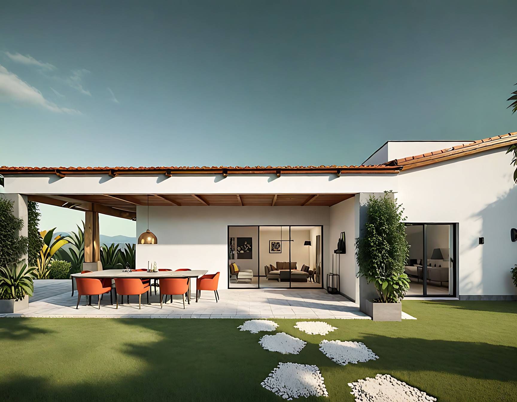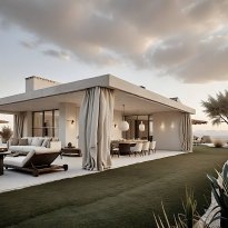 La villa s'étend sur une surface de 100 mètres carrés, conçue pour offrir des espaces fonctionnels et accueillants. Les espaces intérieurs s'ouvrent sur une salle de séjour lumineuse, où la cuisine est directement reliée à la salle de séjour : un espace ouvert parfait pour une vie domestique dynamique, mais qui peut aussi être facilement séparé pour ceux qui aiment l'intimité.