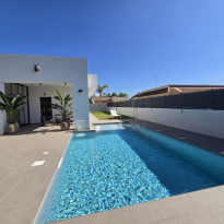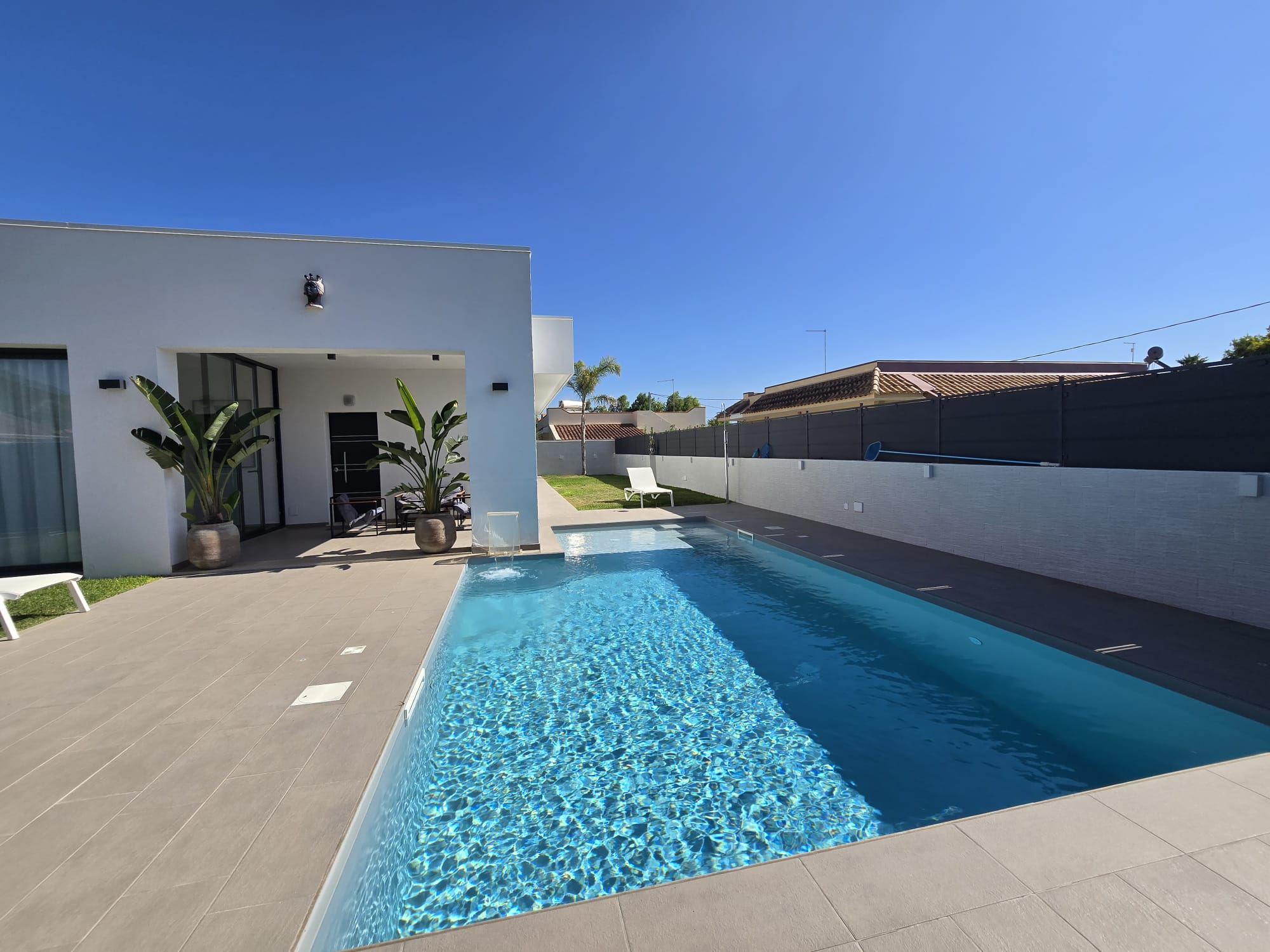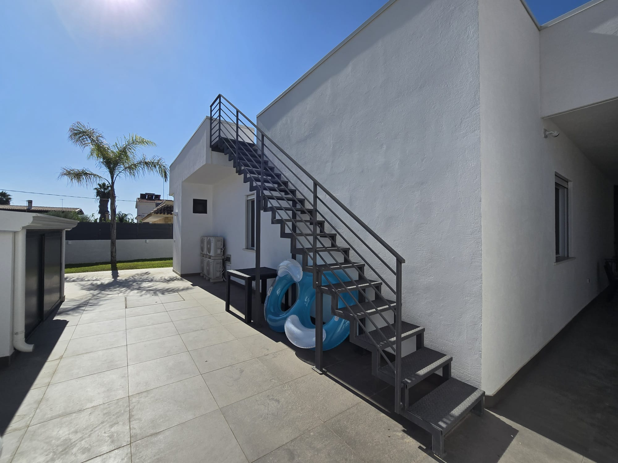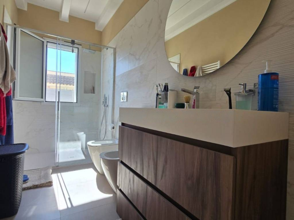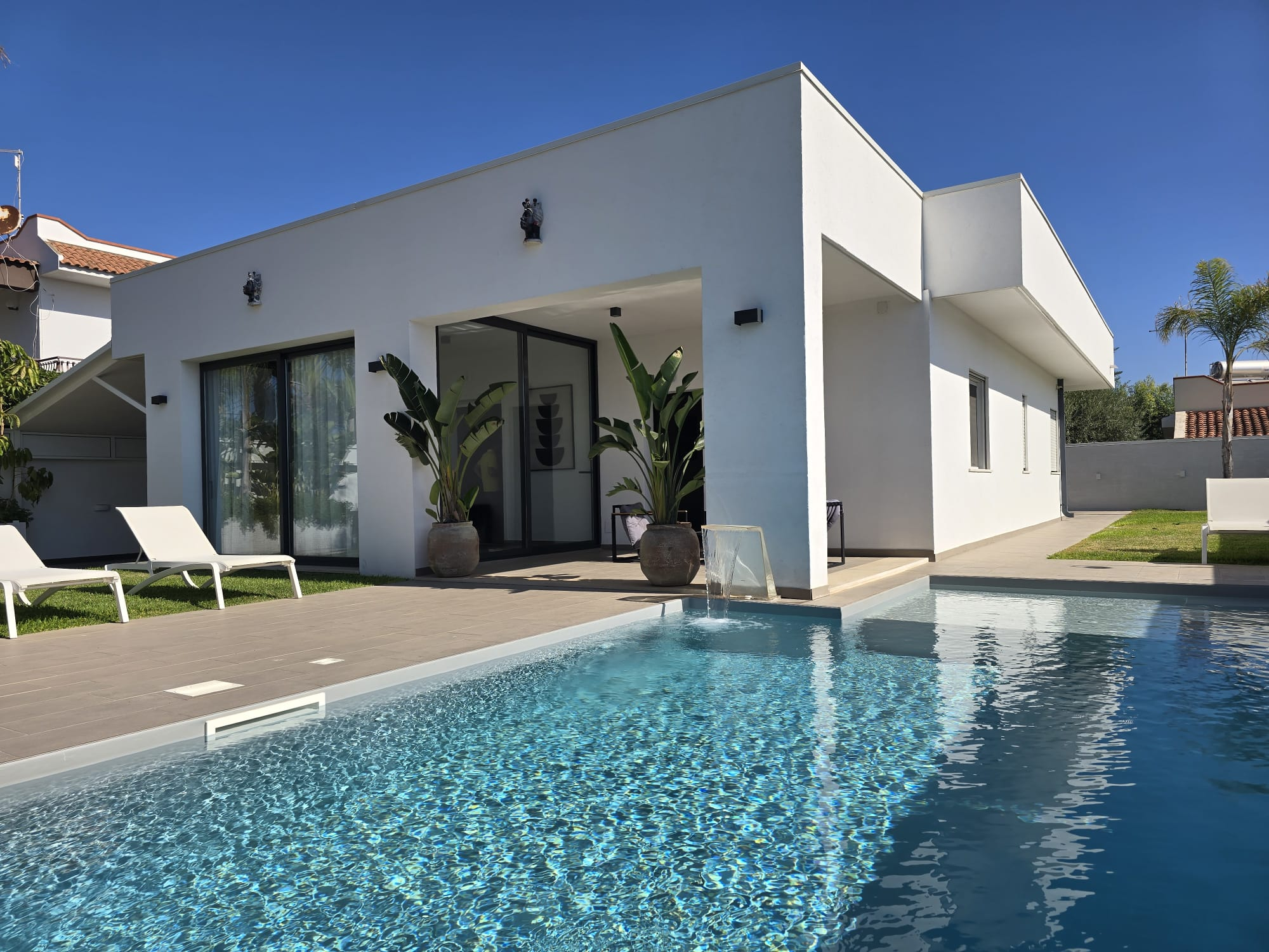 Villa exclusive à Syracuse à 500 mètres de la plage. Prête à recevoir des hôtes qui veulent profiter de la mer Ionienne à Syracuse avec style. Caractéristiques principales : Cuisine ouverte et séjour spacieux avec beaucoup de lumière, véranda en verre avec salle à manger et vue sur la piscine - Deuxième véranda ouverte avec vue directe sur la piscine. La piscine avec bain à remous est entourée d'un solarium ensoleillé. La villa dispose de 2 chambres à coucher, dont une avec dressing et salle de bains attenante. La buanderie est intégrée à la cuisine. Il y a également une annexe de 30 m² à utiliser comme maison d'amis, bureau ou salle de loisirs. Parking couvert pour 5 voitures. La terrasse panoramique de plus de 140 m² offre une vue imprenable sur la mer. La villa est équipée de meubles et d'appareils modernes et confortables. Toutes les pièces sont conçues et finies selon des normes élevées pour un maximum de confort. La maison est située dans un quartier résidentiel calme et élégant. Un investissement intéressant à la fois comme résidence principale de luxe et comme maison de vacances à louer dans l'une des stations balnéaires les plus populaires de Sicile.