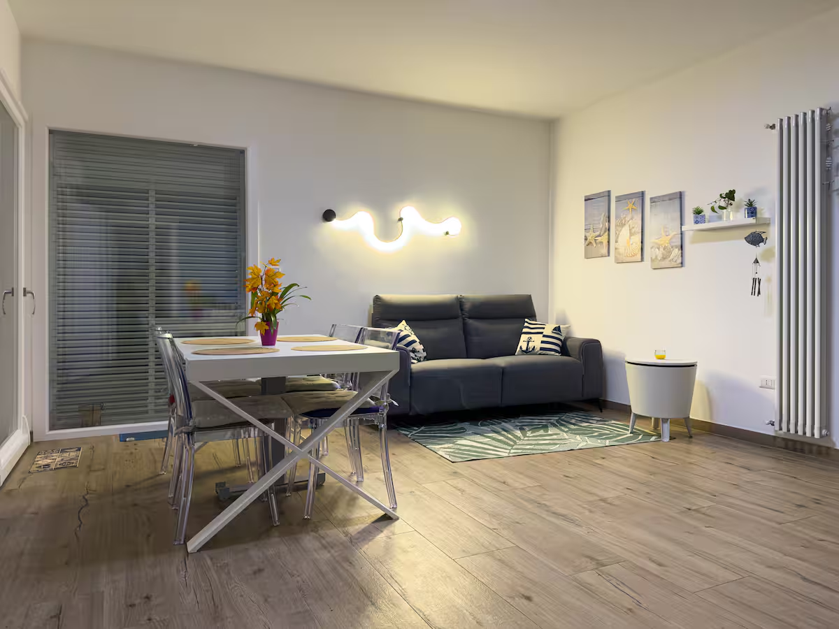 Casa Paolina is a private, energy-efficient countryside home with stunning views of the Monti Sibillini, set on 7 hectares of land bordering the Tennacola river. Built in 2005, it combines traditional brick-and-stone architecture with bright modern interiors, renewable energy systems, and strong earthquake resistance, while also offering woodland, outbuildings, and a registered ruin with reconstruction potential.