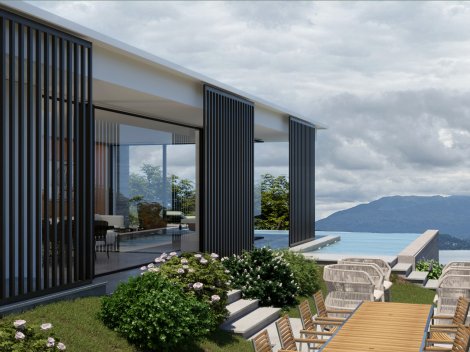 Nous proposons à la vente "La Casa della Vigna", une villa de construction récente située sur les collines de Meina, dans une position panoramique qui offre tranquillité et luminosité, avec une vue suggestive sur le Lac Majeur. La zone est idéale pour ceux qui recherchent l'intimité et le contact direct avec la nature, avec un terrain propice à la culture de la vigne et des arbres fruitiers, tout en restant à proximité des services locaux. La conception architecturale de la villa interprète un langage moderne et linéaire, caractérisé par des volumes simples et de grandes ouvertures qui permettent à la lumière naturelle d'inonder les espaces intérieurs.