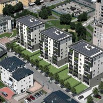 Le projet immobilier se compose de trois bâtiments de sept étages supérieurs avec des appartements de différentes tailles, tous avec d'excellentes vues et une exposition sud.