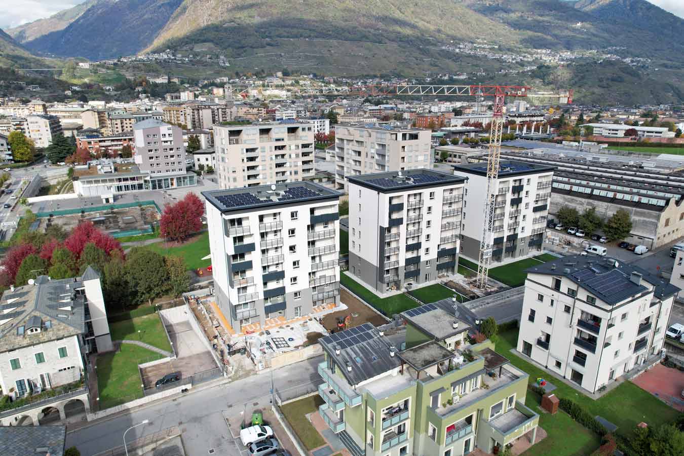 La Residenza 'Meriggio' est un complexe résidentiel en cours de construction à quelques minutes du centre de l'agréable ville provinciale de Sondrio, dans la magnifique vallée de la Valtellina, et à une courte distance de stations de ski réputées telles que Valmalenco, Bormio et Livigno.